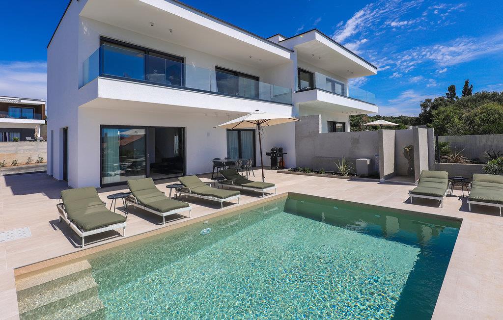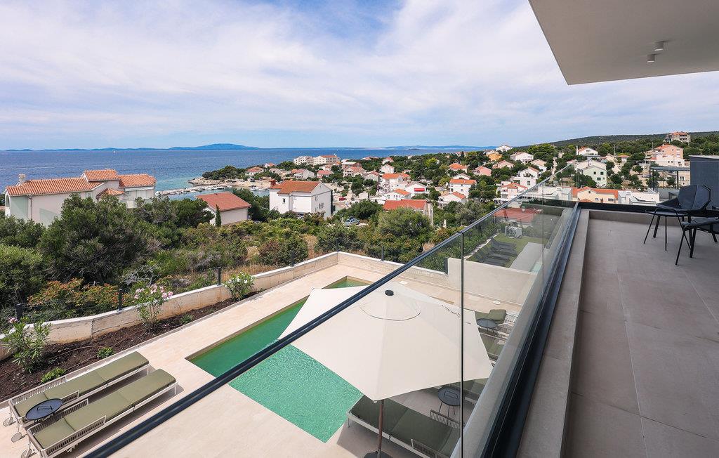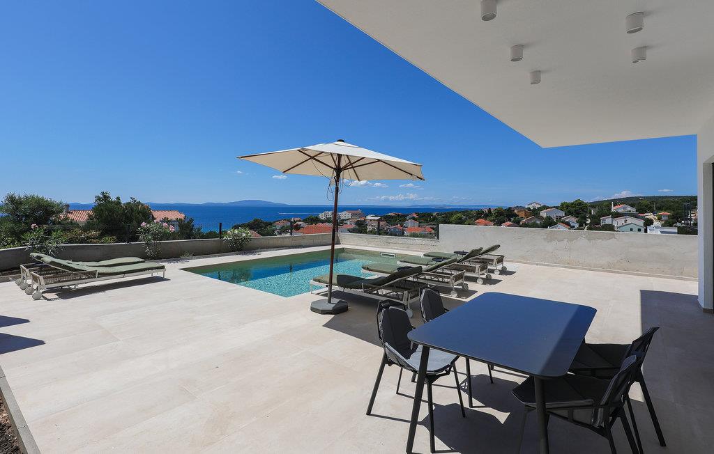 Genießen Sie eine fantastische Aussicht auf das Meer in diesem attraktiven Ferienhaus mit Pool.