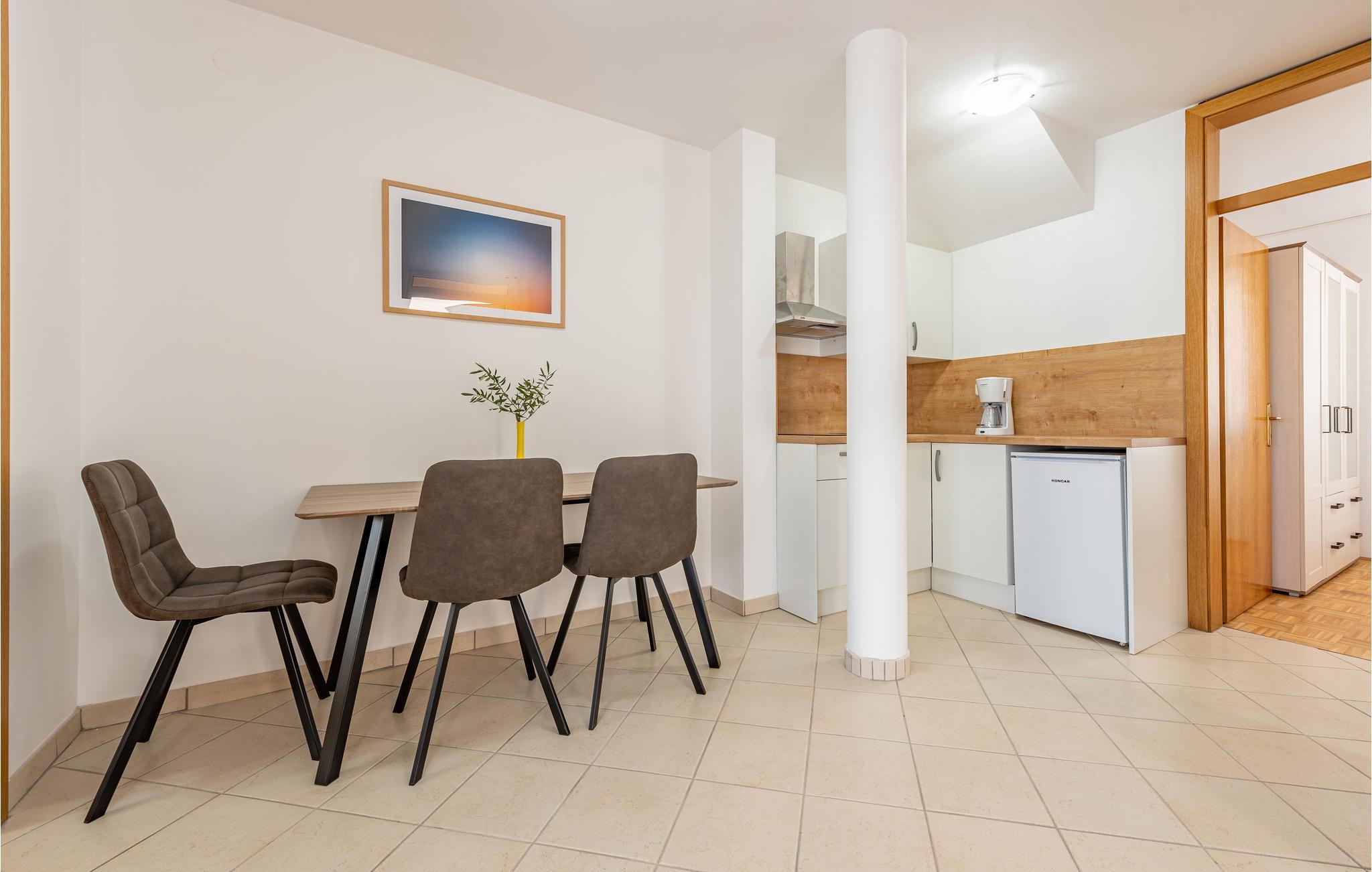 In einem modernen Apartmenthaus heißt Sie diese schöne Ferienwohnung willkommen. Die Wohnung mit stilvollem Minimalismus bietet Ihnen das optimale Heim, um sich nach Ihren Ausflügen auf der Insel Pag zu entspannen und die Abende auf Ihrem überdachten Balkon zu verbringen und die Sonnenuntergänge über dem Meer zu verfolgen. Hier finden Sie alles vor, was Sie zum Wohlfühlen brauchen und können sich mit den anderen Gästen des Hauses einen gemeinsamen, geschlossener Raum zum geselligen Beisammensein und Grillen nutzen.