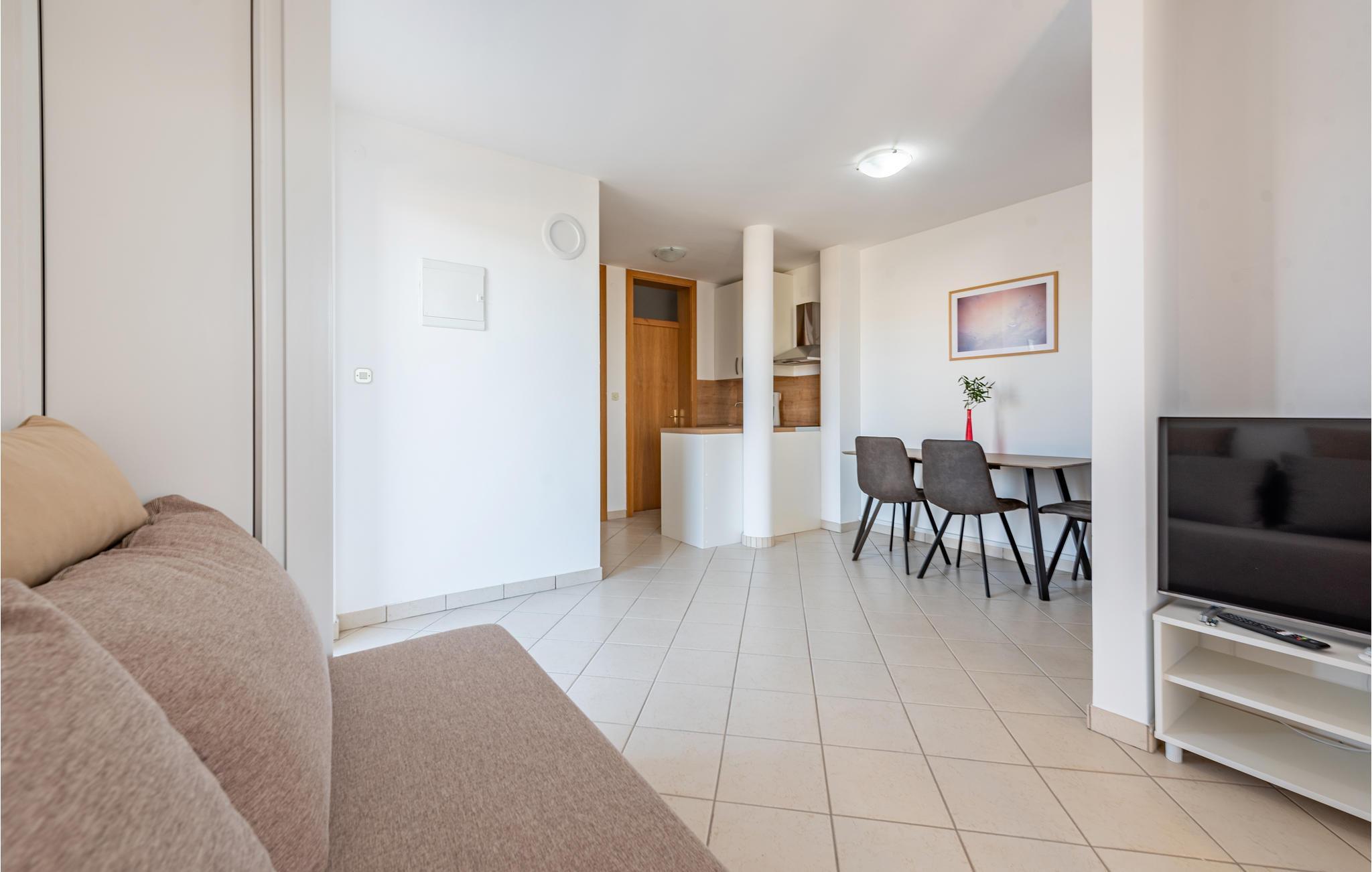 In einem modernen Apartmenthaus heißt Sie diese schöne Ferienwohnung willkommen. Die Wohnung mit stilvollem Minimalismus bietet Ihnen das optimale Heim, um sich nach Ihren Ausflügen auf der Insel Pag zu entspannen und die Abende auf Ihrem überdachten Balkon zu verbringen und die Sonnenuntergänge über dem Meer zu verfolgen. Hier finden Sie alles vor, was Sie zum Wohlfühlen brauchen und können sich mit den anderen Gästen des Hauses einen gemeinsamen, geschlossener Raum zum geselligen Beisammensein und Grillen nutzen.