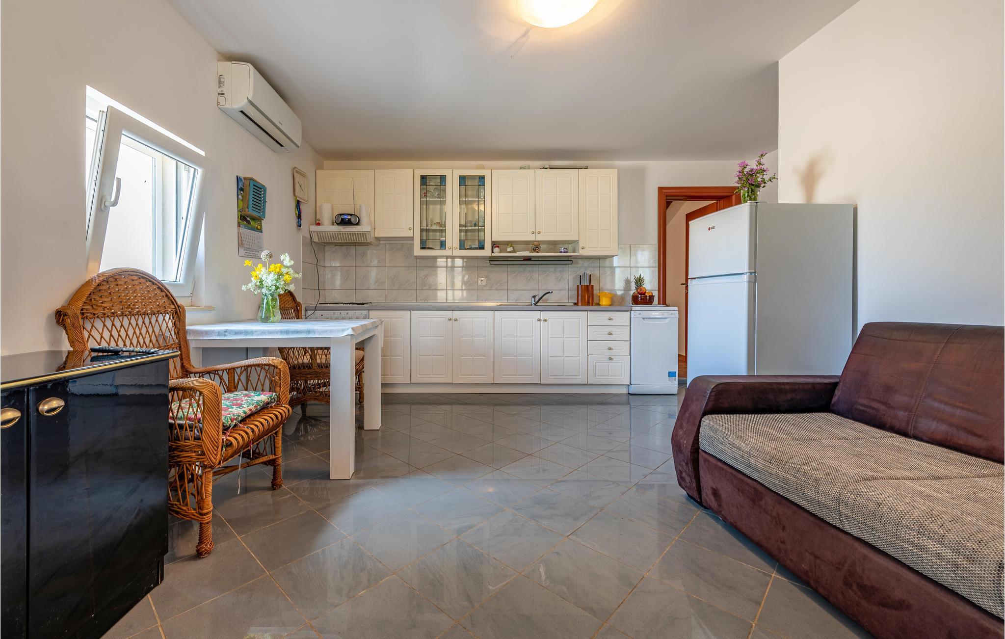 Freuen Sie sich auf der Insel Pag auf dieses gut ausgestattete und freundliche Ferienhaus. Hier können Sie sich mit Ihrer Familie wie zuhause fühlen und die Schlafzimmer mit privatem Badezimmer genießen. Erholen Sie sich von Ihrem hektischen Alltag und trinken Ihren Morgenkaffee auf Ihrer überdachten Terrasse und planen Ihre Aktivitäten und Ausflüge. An den Abenden können Sie am Gemeinschaftsgrill leckere Mahlzeiten zubereiten und mit den Gästen des Apartmenthauses, das sich ebenfalls auf dem Grundstück befindet ins Gespräch kommen.