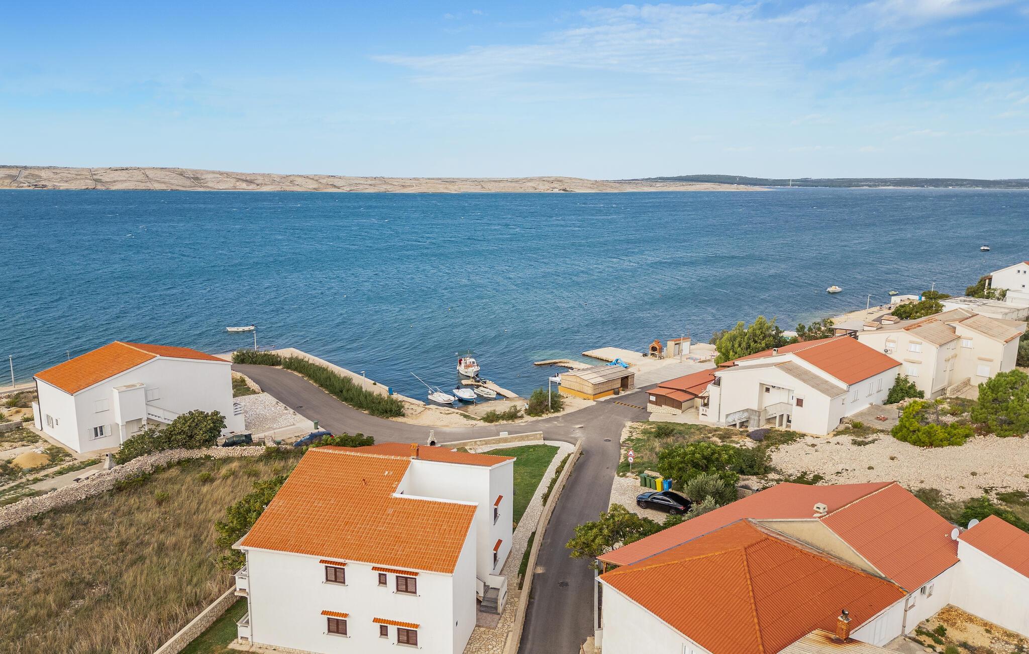 Auf einem großen Grundstück, in zweiter Wasserreihe, heißt Sie diese hübsche Ferienwohnung auf der Insel Pag willkommen.