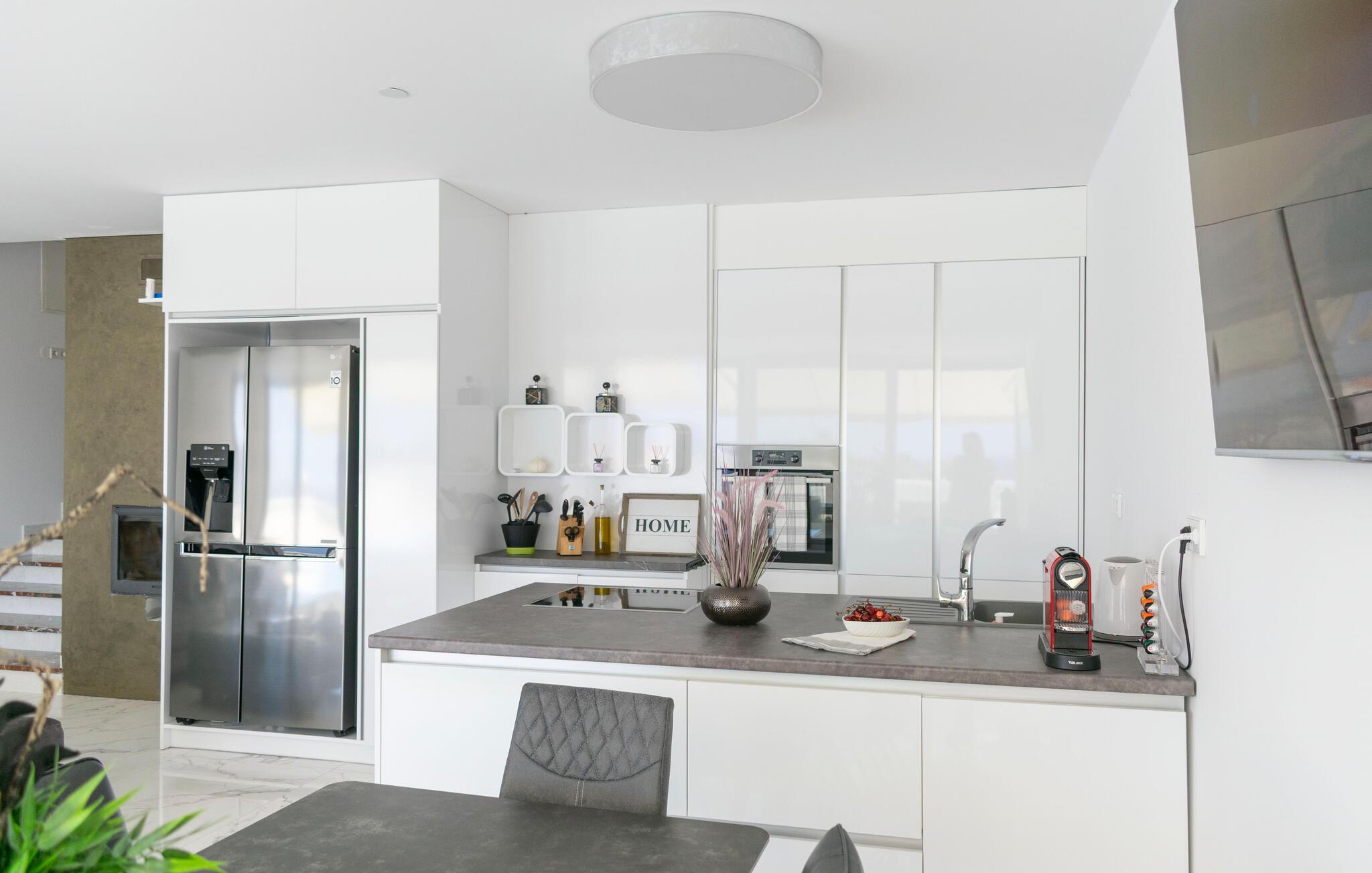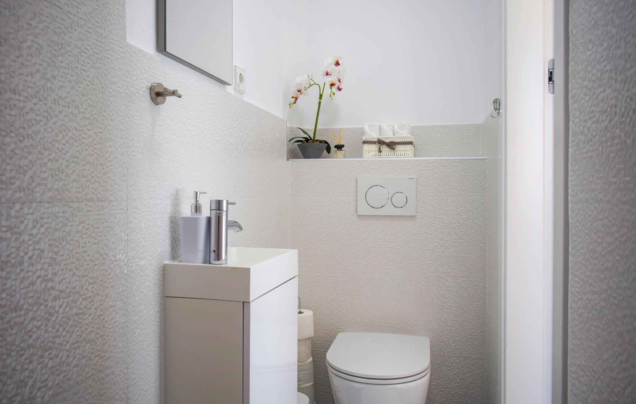 In herrlicher Lage nahe dem Meer erwartet Sie das komfortable Haus, das seine Gäste mit moderner Einrichtung und einer unvergesslichen Aussicht bezaubert. Machen Sie es sich nach aktiven Tagen im Wohnbereich gemütlich, entspannen Sie gemeinsam und schmieden Sie Pläne für kommende Unternehmungen, während Sie gemeinsam essen und den Blick über das Wasser schweifen lassen.