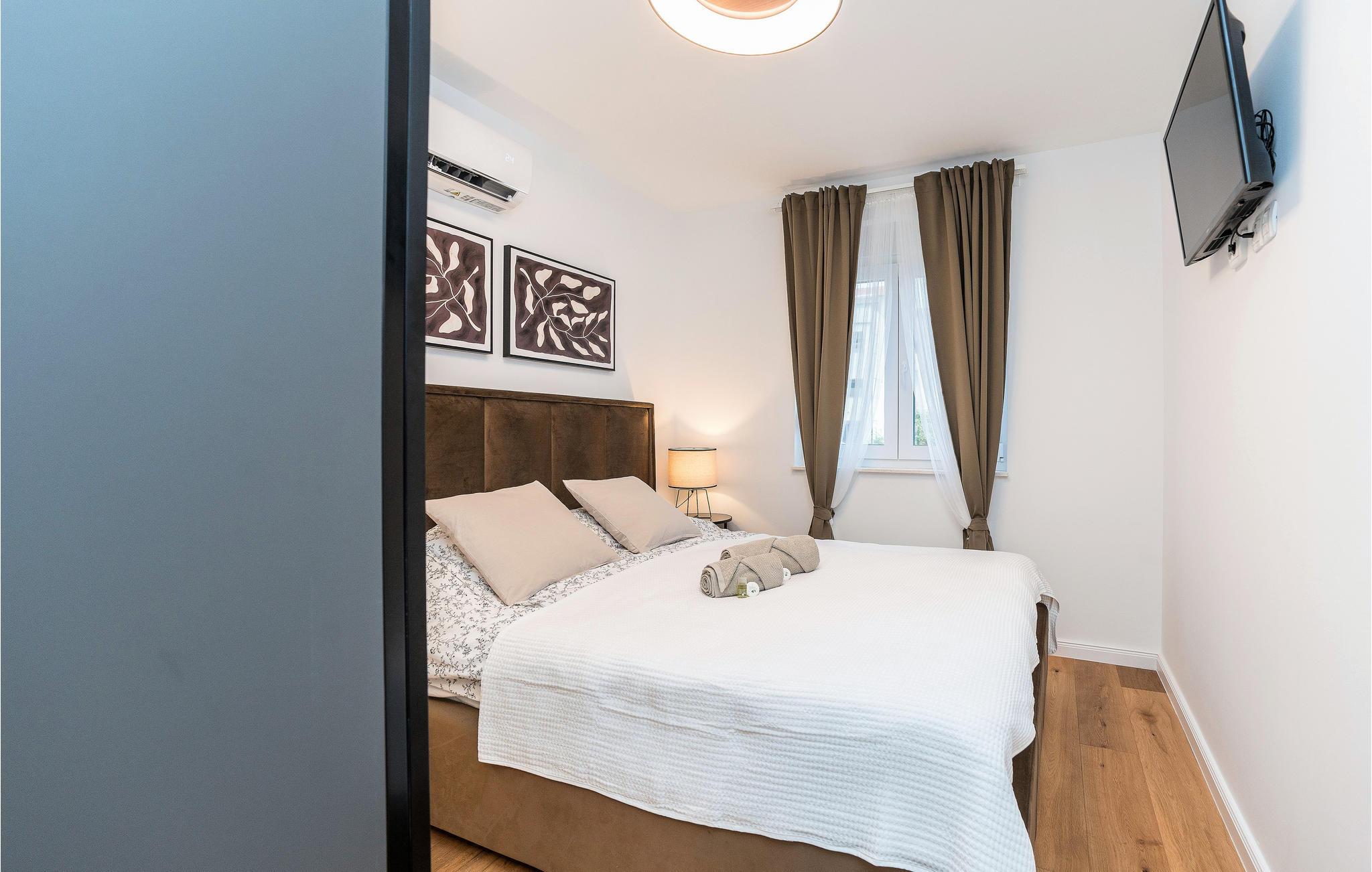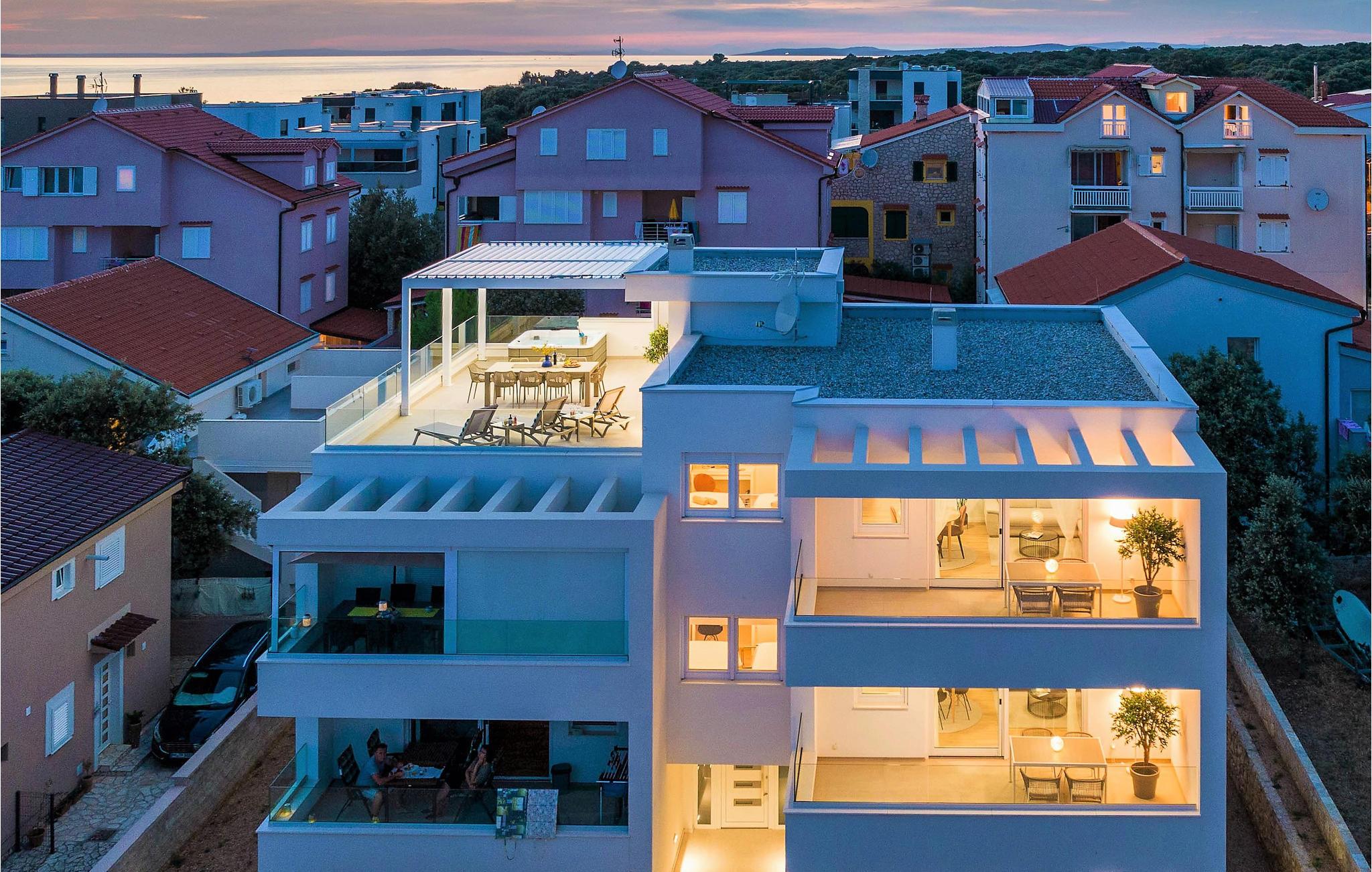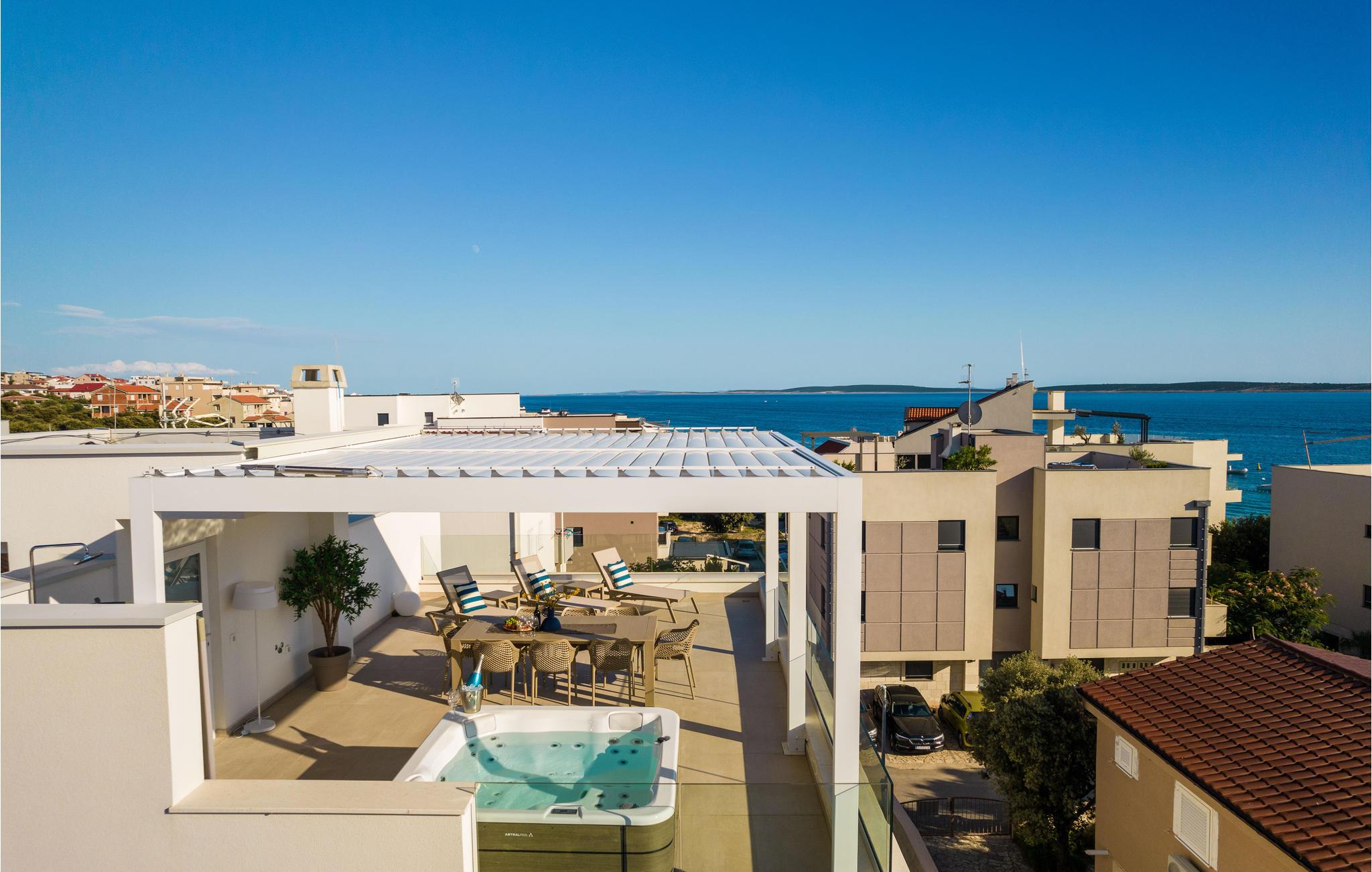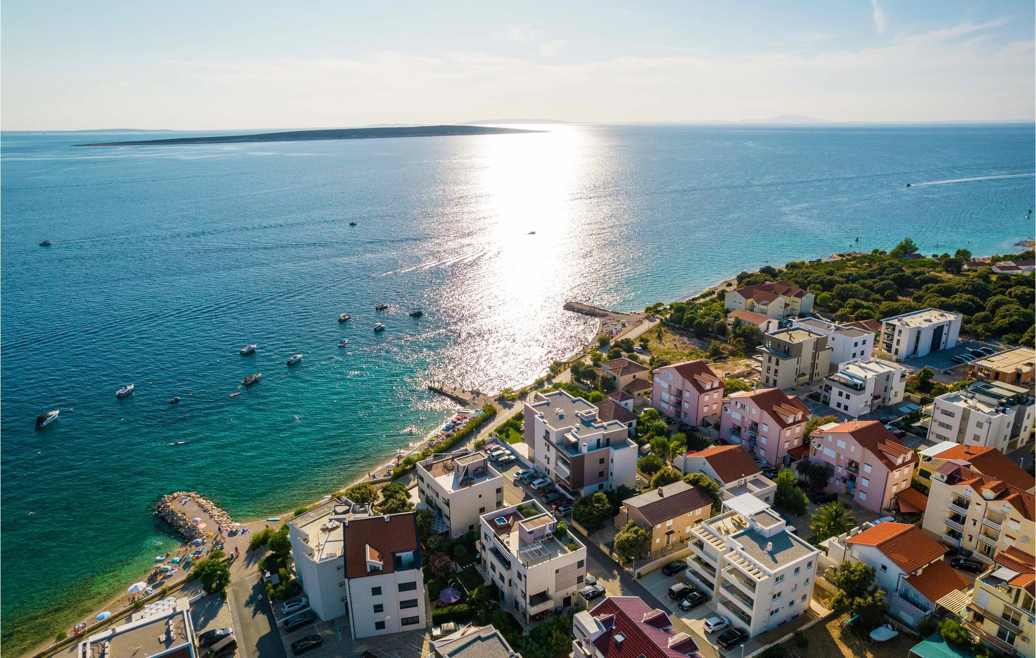 Spazieren Sie zum Meer und genießen Sie das klare Wasser am Kiesstrand. Die Insel Pag wird Sie mit ihren lauschigen Buchten und schönen Sandstränden mit Kinder- und Unterhaltungsangeboten, dem reichhaltigen gastronomischen Angebot und guten Verbindungen zum Festland begeistern. Besuchen Sie den Olivenpark Lunian, wo Sie tausend Jahre alte Olivenbäume betrachten können, für Tagesausflüge bieten sich die benachbarten Inseln Rab, Cres oder Lošinj an.