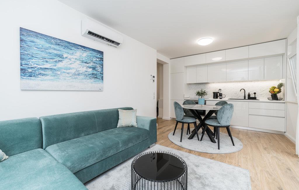 Mit ihren hellen Räumen und der modernen, komfortablen Einrichtung ist die Wohnung der ideale Ort für eine angenehme Auszeit nur einen Steinwurf vom Strand entfernt. Stärken Sie sich am Esstisch mit einem guten Frühstück für einen erlebnisreichen Tag, das Sofa im Wohnzimmer lädt zu gemütlichen Abenden mit Spielen, Gesprächen oder einem Film ein.