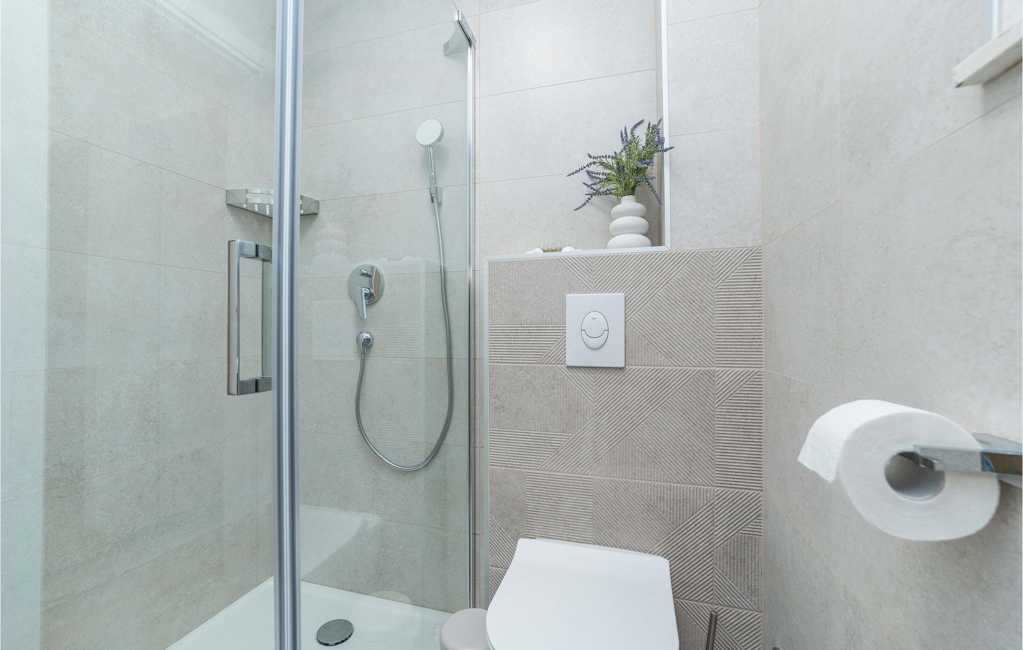 - WC mit warmem und kaltem Wasser, Dusche