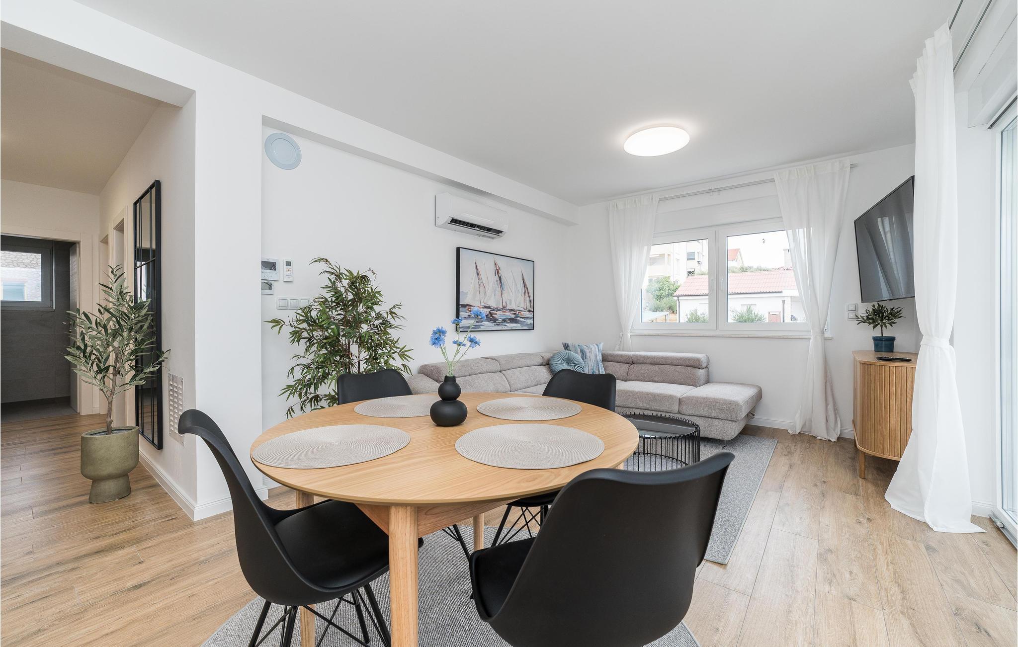 Mit ihren hellen Räumen und der modernen, komfortablen Einrichtung ist die Wohnung der ideale Ort für eine angenehme Auszeit nur einen Steinwurf vom Strand entfernt. Stärken Sie sich am Esstisch mit einem guten Frühstück für einen erlebnisreichen Tag, das Sofa im Wohnzimmer lädt zu gemütlichen Abenden mit Spielen, Gesprächen oder einem Film ein.