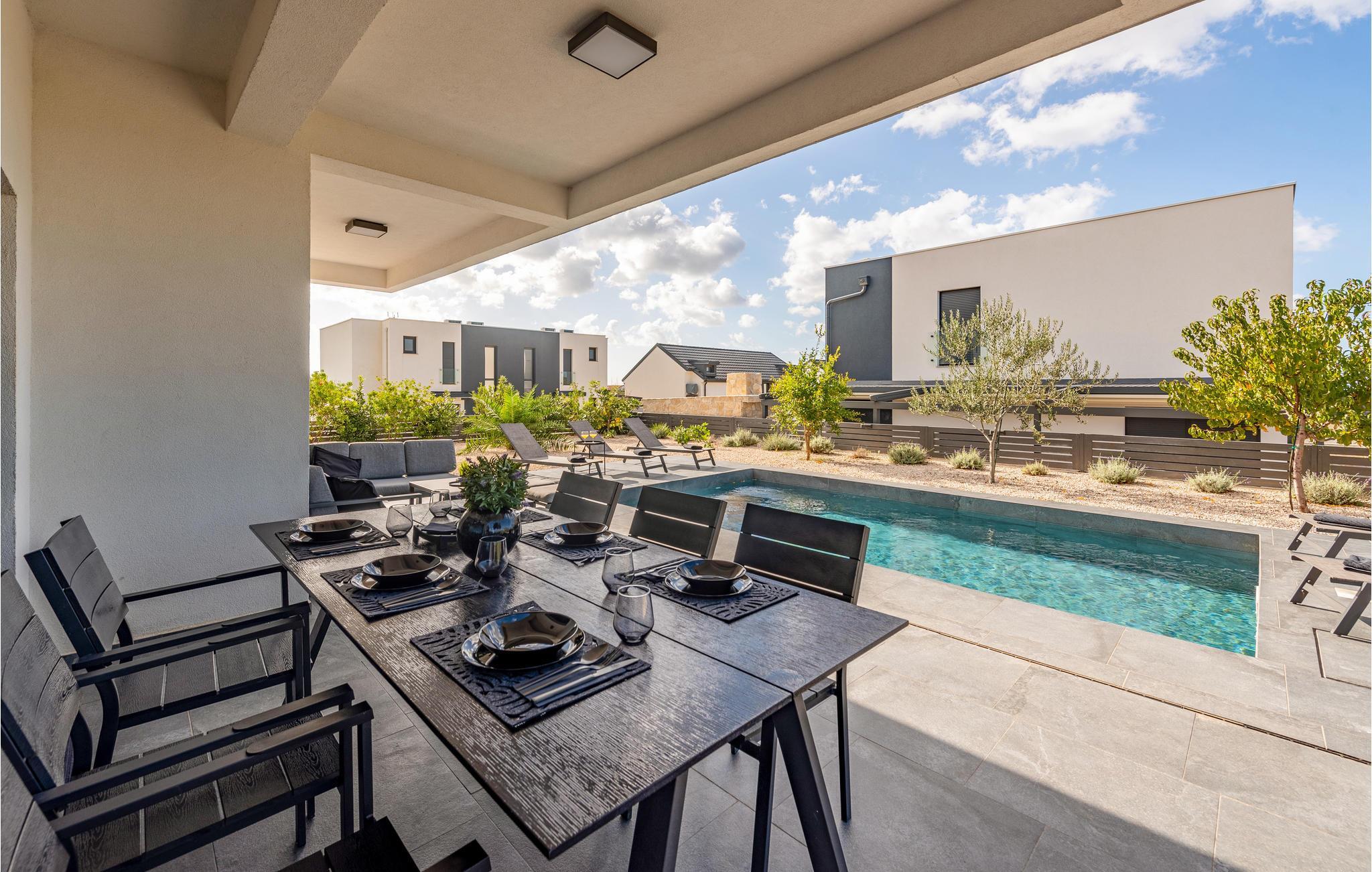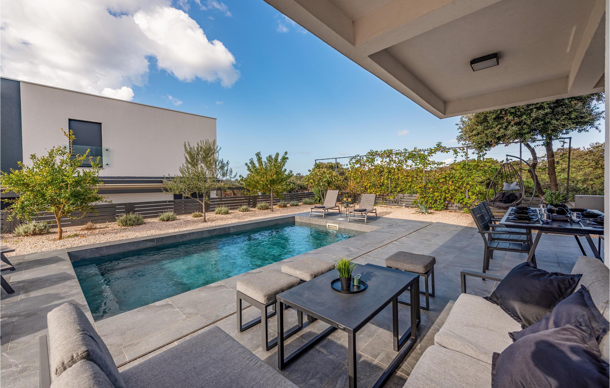 Genießen Sie eine herrliche Aussicht in diesem attraktiven Ferienhaus mit Pool.