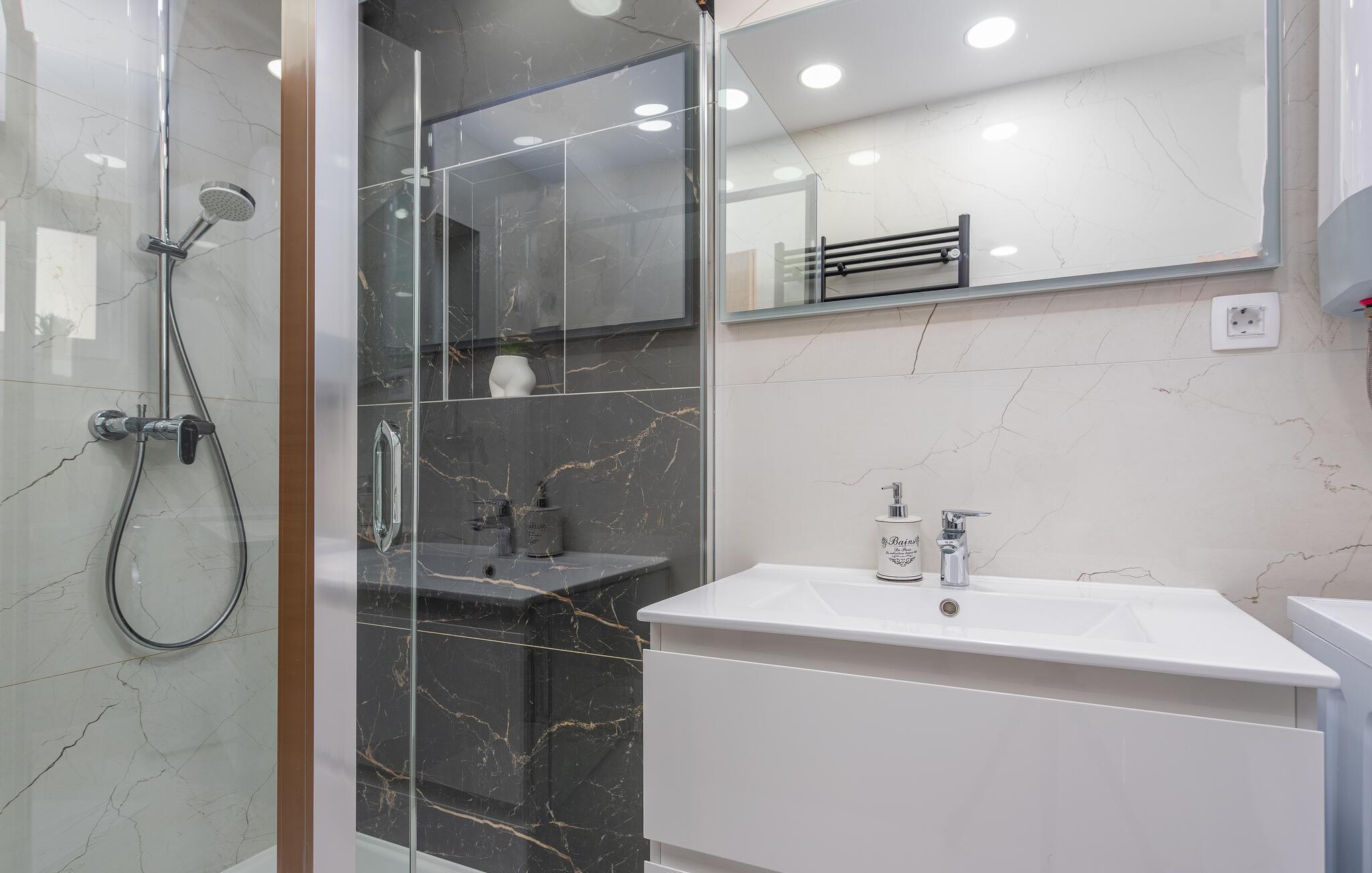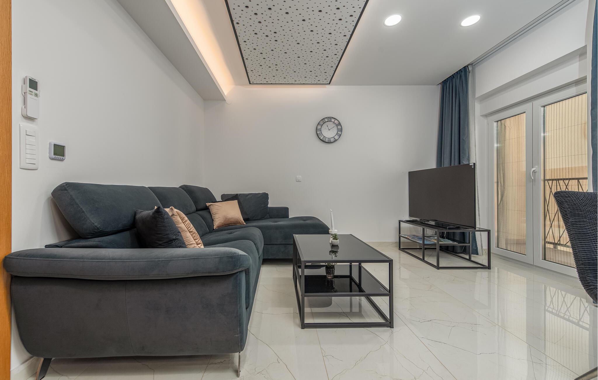 Nur wenige Schritte vom schönen Badestrand entfernt begrüßt Sie diese komfortable Ferienwohnung, in der eine elegante Einrichtung und eine behagliche Beleuchtung für eine einladende Wohlfühlatmosphäre sorgen. Nutzen Sie die offene Küche, um gemeinsam kroatische Gerichte zuzubereiten, genießen Sie Ihre Mahlzeiten am stilvollen Esstisch und machen Sie es sich nach einem langen Tag auf dem großzügigen Sofat gemütlich, wo Sie einen Film streamen oder mit Ihren Liebsten einen Spieleabend veranstalten können.