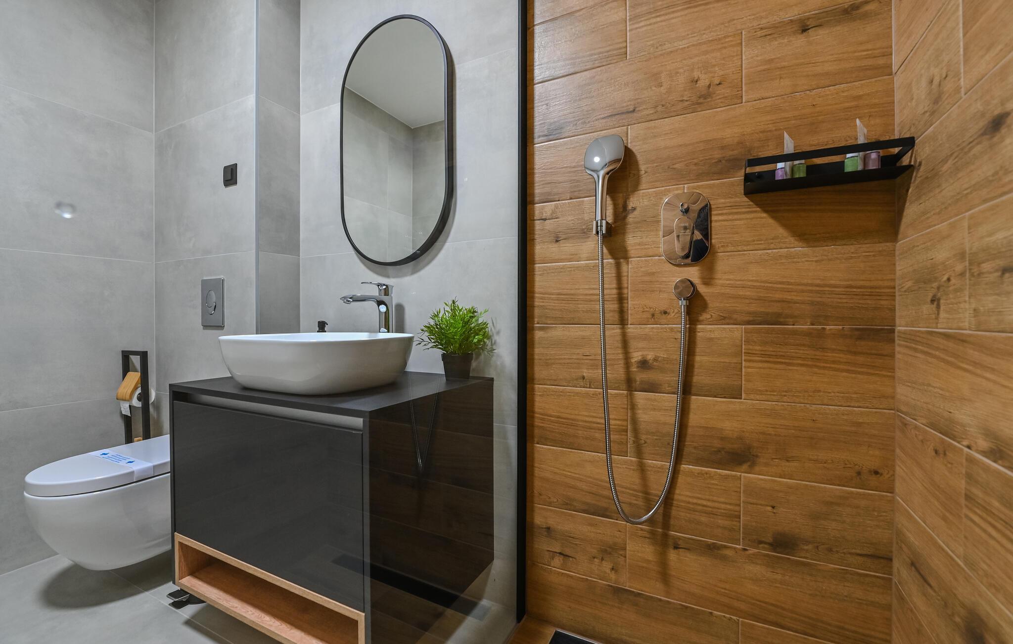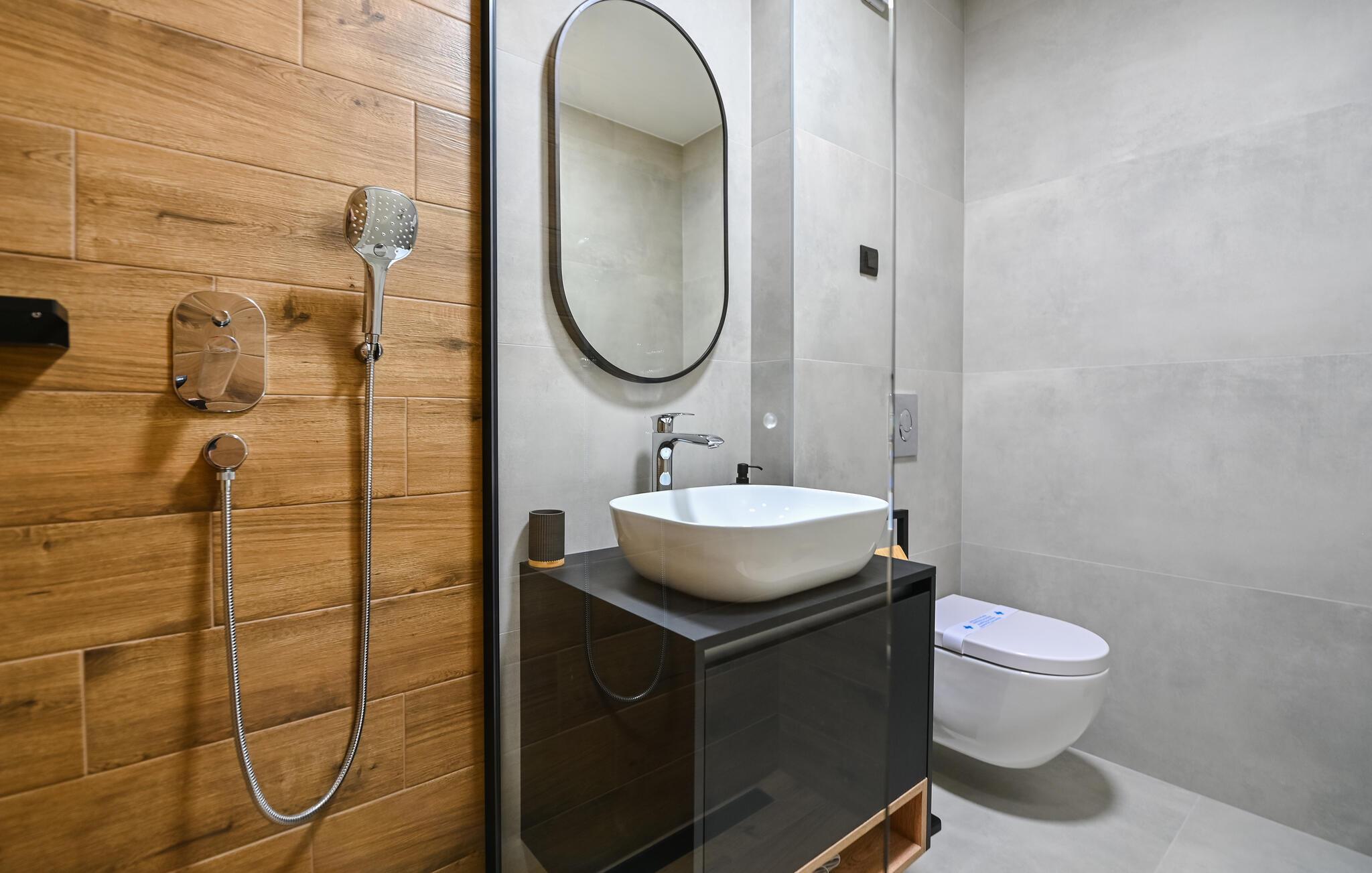 Badezimmer 5m2 (nr. 2) - WC. Warmes und kaltes Wasser. Dusche