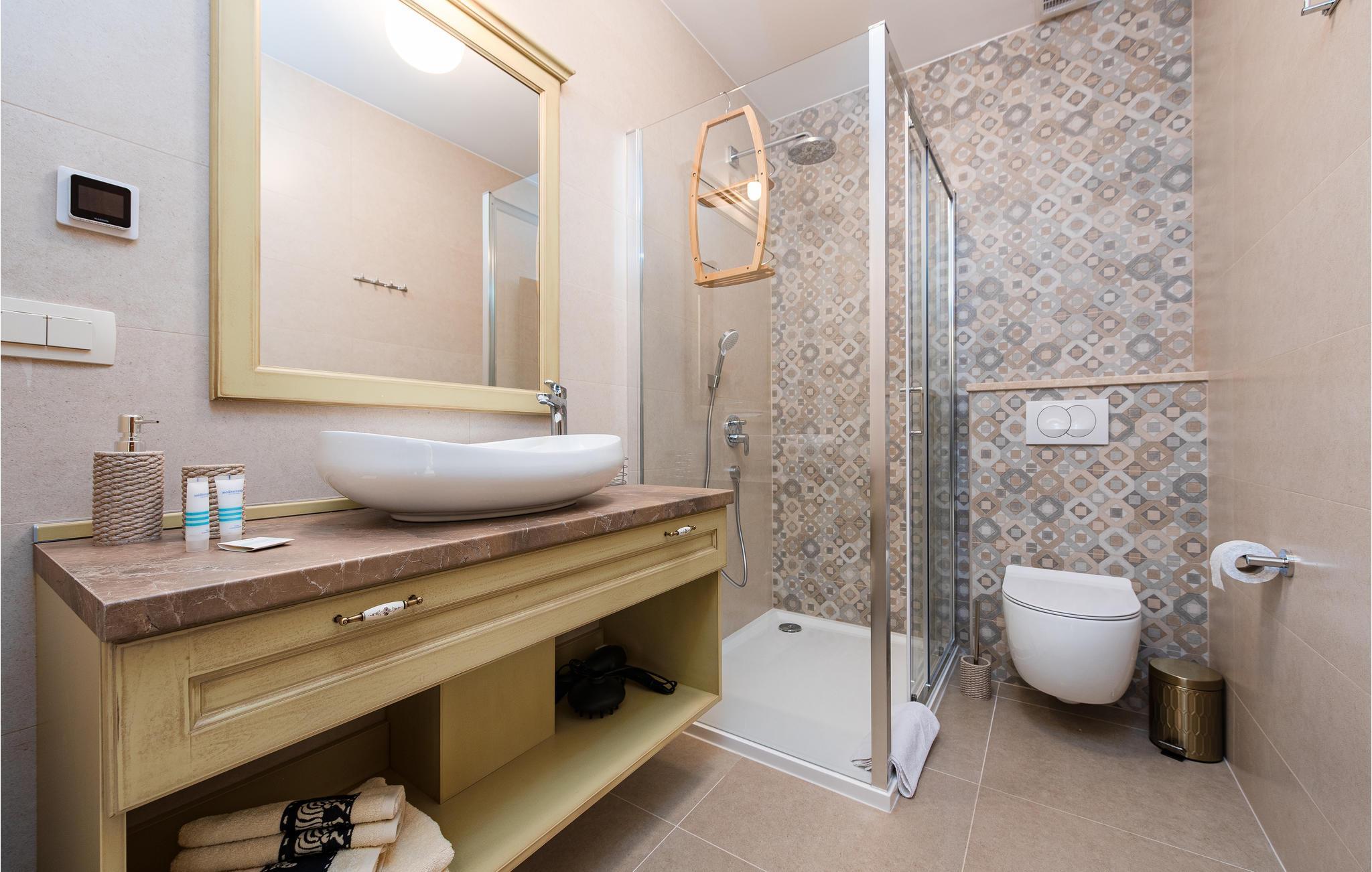 Badezimmer 4m2 (nr. 1) - WC. Warmes und kaltes Wasser. Dusche