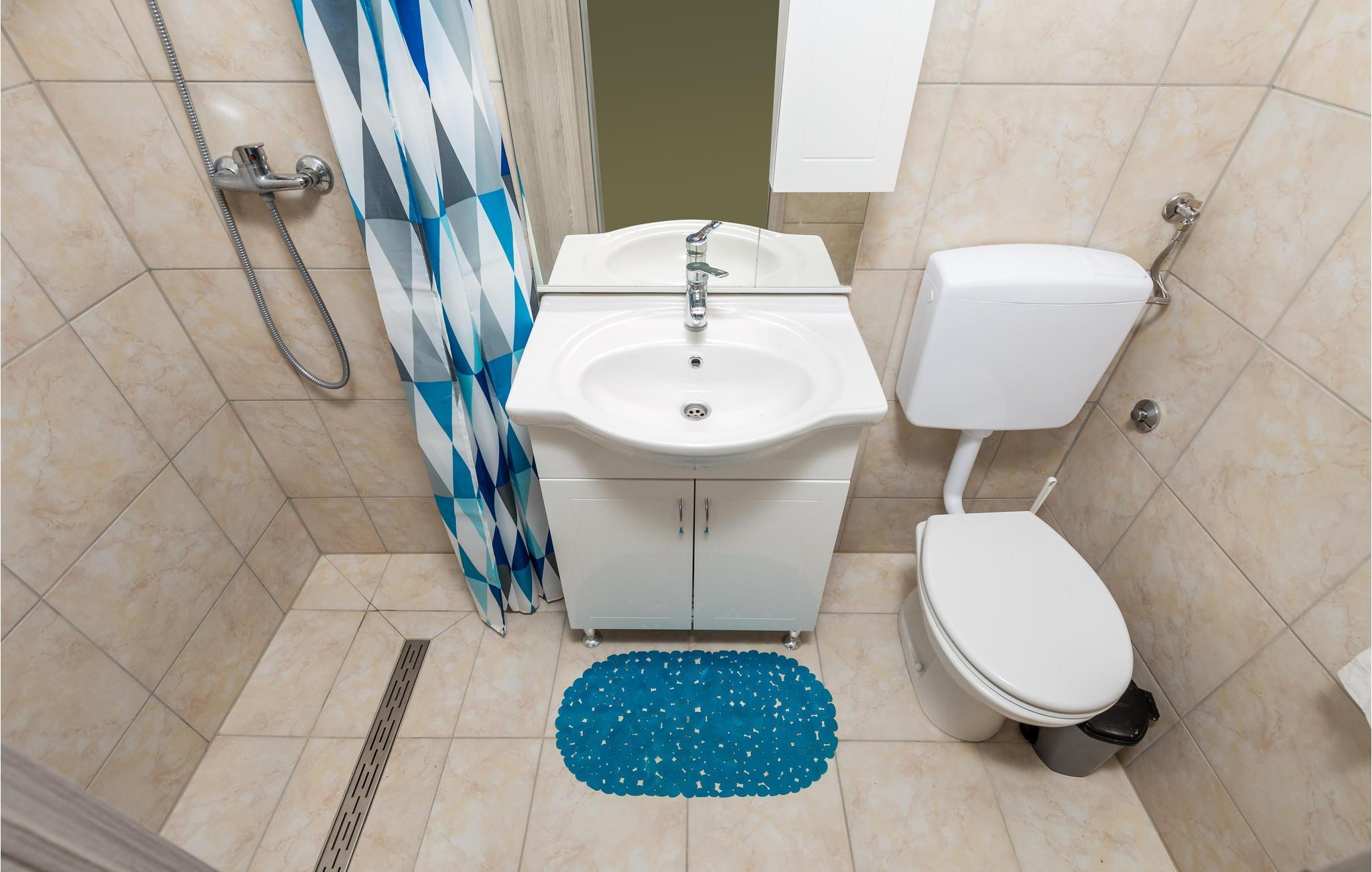 Badezimmer 4m2 (nr. 1) - WC. Warmes und kaltes Wasser. Handdusche