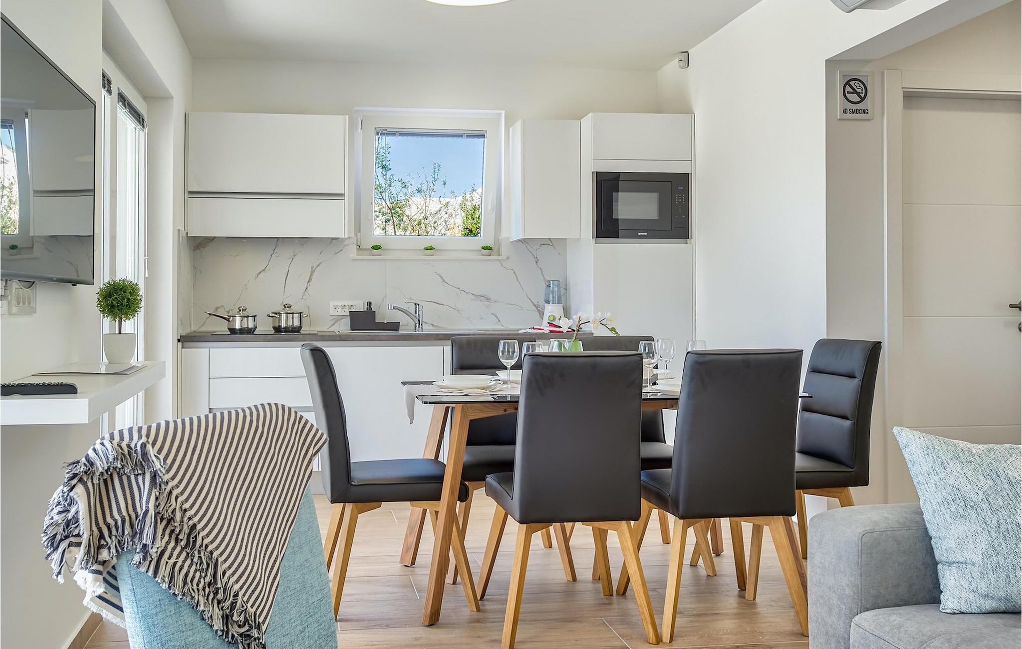 Falls der traumhafte Meerblick an der Spitze Ihrer Wunschliste steht, wird die charmante Villa Romka ganz sicherlich auf Ihr Siegertreppchen schaffen. Mit Blick auf die atemberaubende Insel Pag und das türkis-blaue Meer, sowie unmittelbarer Nähe von herrlichen Stränden und allen notwendigen Annehmlichkeiten bietet dieses Ferienhaus die besten Zutaten für einen wahrhaftig erholsamen Urlaub.