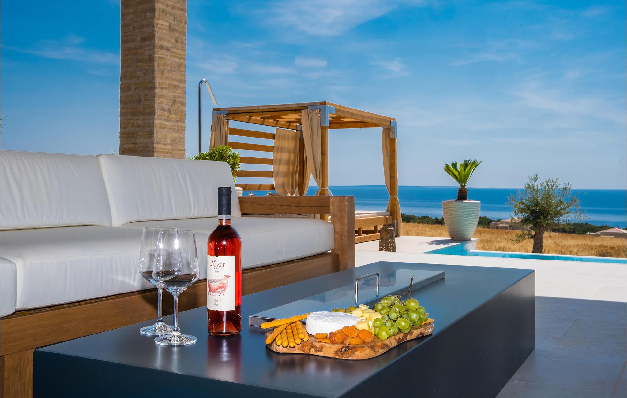 Nicht dur der Innenraum, sondern auch der Außenbereich macht einen überzeugenden Eindruck. Schwimmen Sie morgens eine Runde im Pool und verbringen Sie tagsüber entspannte Stunden in den Loungemöbeln oder auf den Sonnenliegen unter dem Parasol. Profiteren Sie von der hübschen Außenküche und verbringen Sie viele, gesellige Stunden im Essbereich mit dem Meer als Kulisse. Zu einem stimmungsvollen Ausklang des Tages bietet der Außenwhirlpool den perfekten Ort.