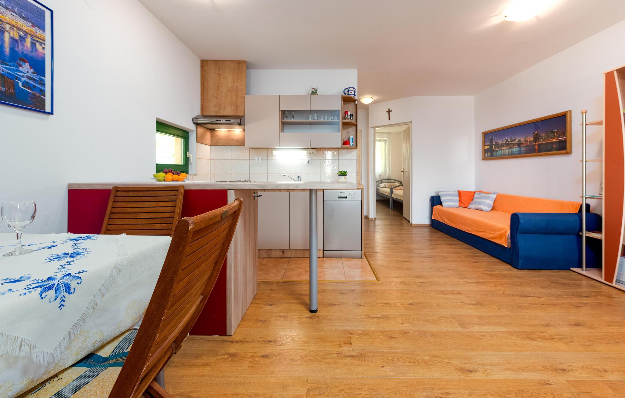 Im kleinen Ort Potocnica, auf der Insel Pag, liegt dieses Haus mit drei Ferienwohnungen. Im ersten Stock ist die geräumige Unterkunft CKP391 mit schöner überdachter Terrasse und im zweiten Stock sind CKP392 und CKP393 untergebracht. Spazieren Sie zu der kleinen Bucht mit verstecktem Strand. Die Vielseitigkeit der Insel Pag zeigt sich nicht nur an dem reichen gastronomischen Angebot, sondern auch an interessanter Kultur und Tradition. So ist die Pager Spitze, die auch Weißgold genannt wird, auf der Liste der UNESCO für immaterielles Kulturerbe. Am Strand Zrce können Sie Sie Festivals mit DJs der elektronischen Musik erleben.