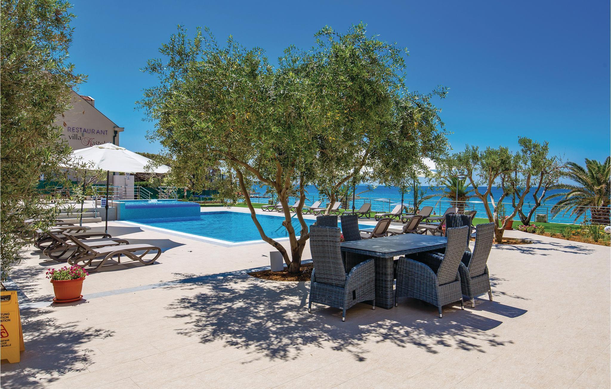 Direkt am herrlichen Kiesstrand liegen diese Ferienwohnungen mit grandioser Aussicht von den Balkonen aus. Die Wohnungen verfügen gemeinsam über Außenpool und Whirlpool. Die Dachschräge reicht in CKP672 auf 140 cm und in CKP673 auf 120 cm. Neben der Unterkunft befinden sich ein Restaurant und ein Café mit Billard und Tischfußball. Die Insel Pag ist voll von schönen Stränden und versteckten Buchten und bekannt für ihr reiches gastronomisches Angebot. Der weltprämierte Pager Käse Gligora, sowie das Pager Lammfleisch sind einige Gastronomieprodukte, die Pag auszeichnen. Besuchen Sie auch die Stadt Zadar, mit vielen Sehenswürdigkeiten und dem schönsten Sonnenuntergang der Welt, wie seinerzeit Alfred Hitchcock meinte.