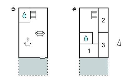 Badezimmer 4m2 (nr. 1) - WC. Warmes und kaltes Wasser. Dusche