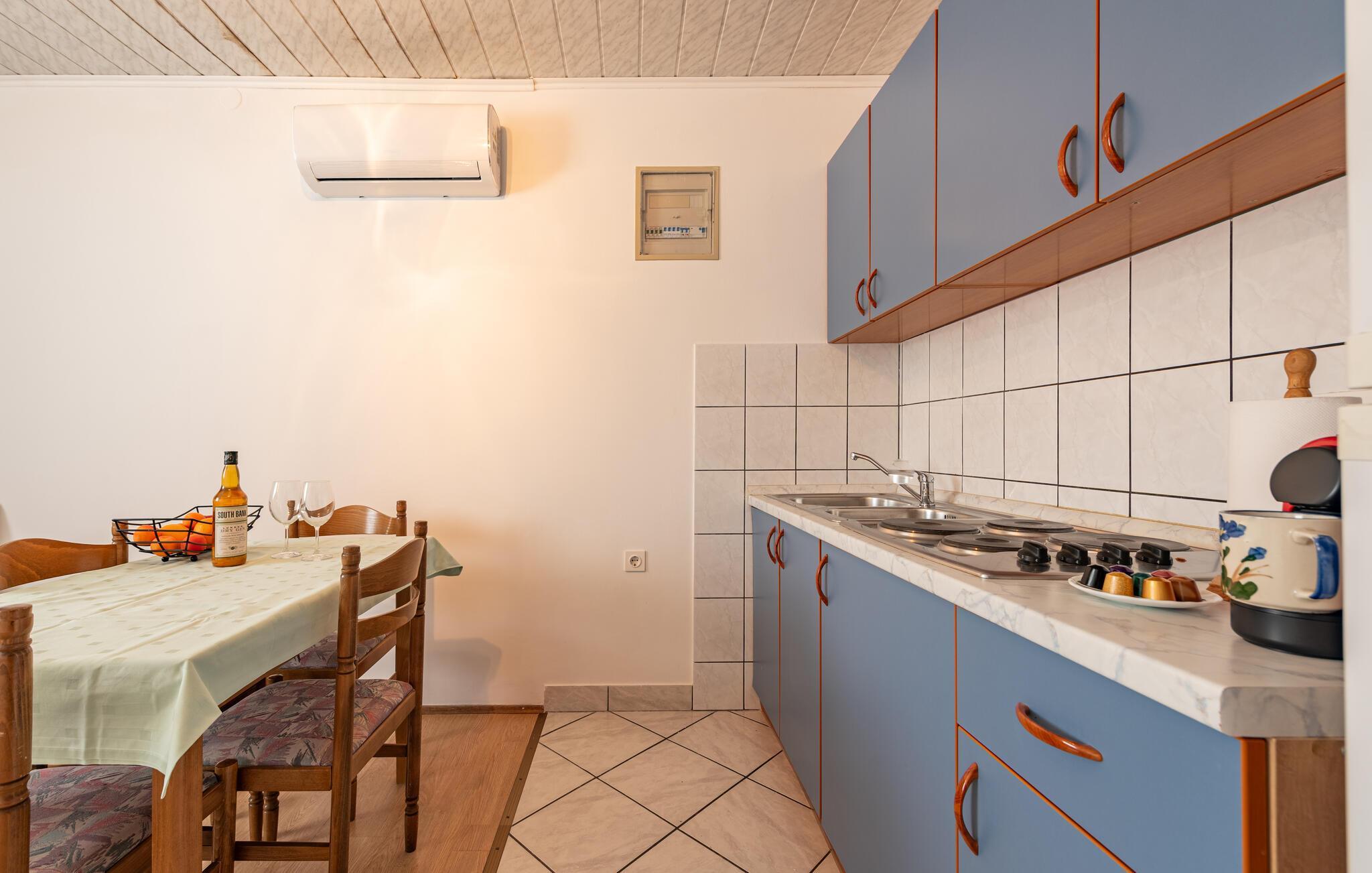 Diese gepflegte Ferienwohnung liegt nur wenige Schritte von einem der vielen wunderschönen Strände der Insel Pag entfernt. Machen Sie es sich hier mit Freunden oder der Familie bequem und freuen Sie sich auf harmonische Mahlzeiten am einladenden Esstisch sowie auf gemütliche Filmabende auf der großzügigen Sofalandschaft.