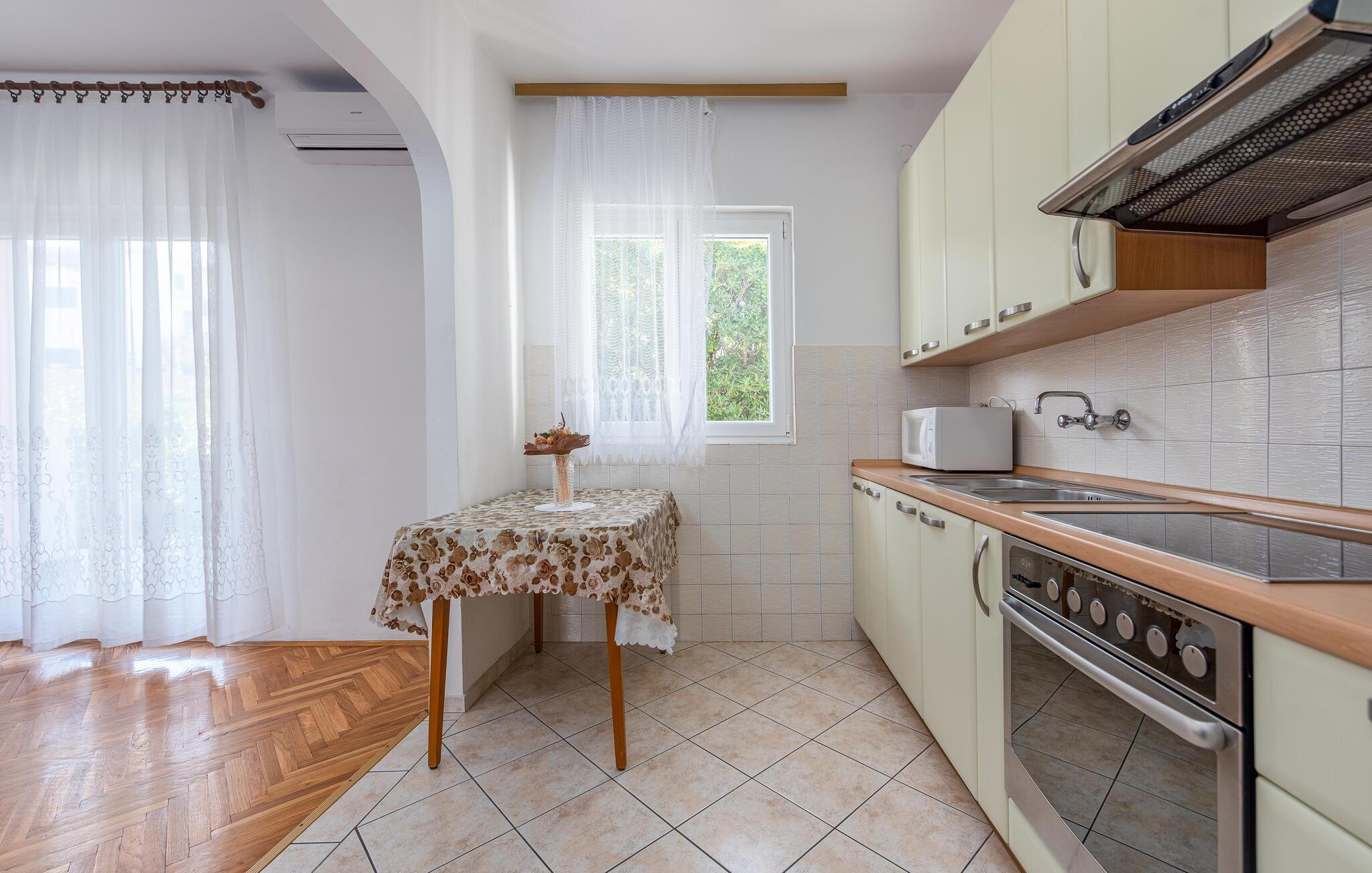 Diese praktische Ferienwohnung ist die ideale Ferienwohnung für Ihren Badeurlaub auf der Insel Pag. Hier finden Sie alles vor, was Sie und Ihre Familie zum Wohlfühlen brauchen. Entspannen Sie auf Ihrem Balkon oder verbringen Sie Zeit auf der großen Terrasse mit Meerblick, die Ihnen zur gemeinschaftlichen Nutzung zur Verfügung steht. Grillen Sie am Abend mit Blick auf das Meer und kommen Sie mit den anderen Gästen des Hauses ins Gespräch. Sollten Sie eine größere Familie oder befreundete Familien sein, können Sie mehrere Ferienwohnungen im Haus buchen.