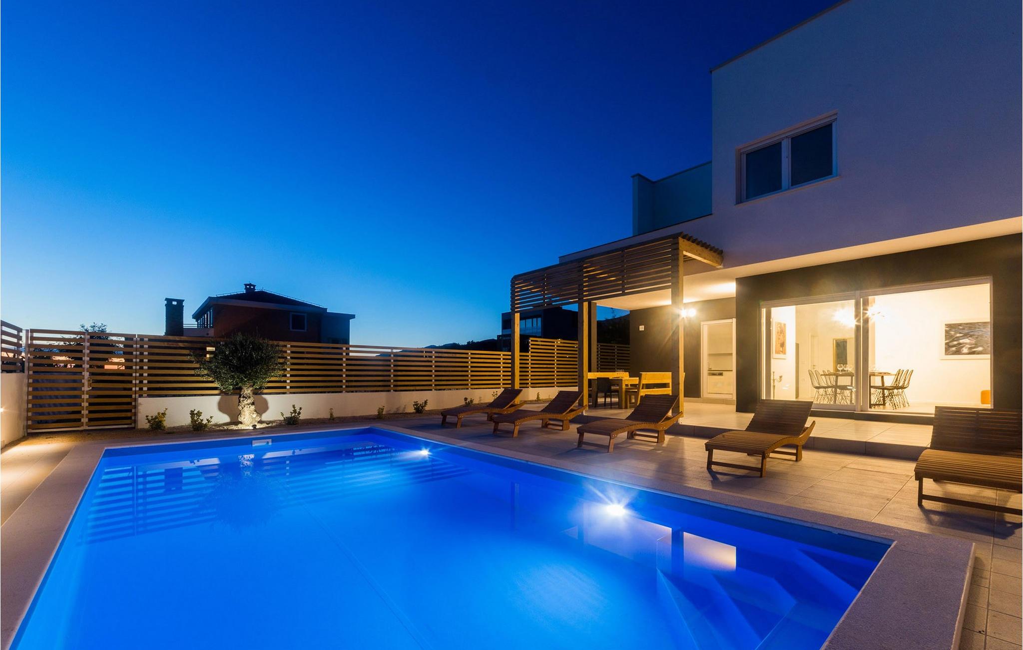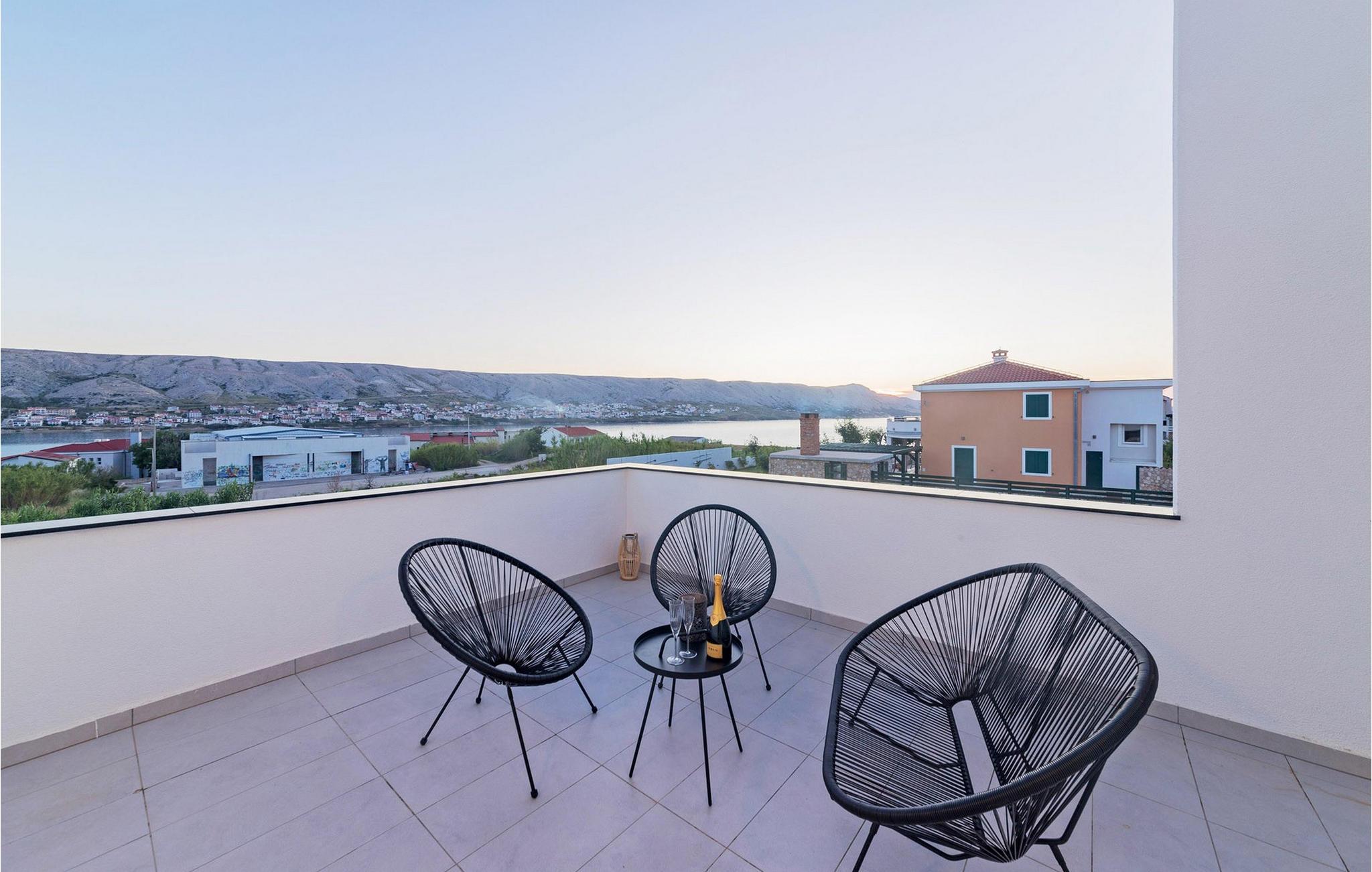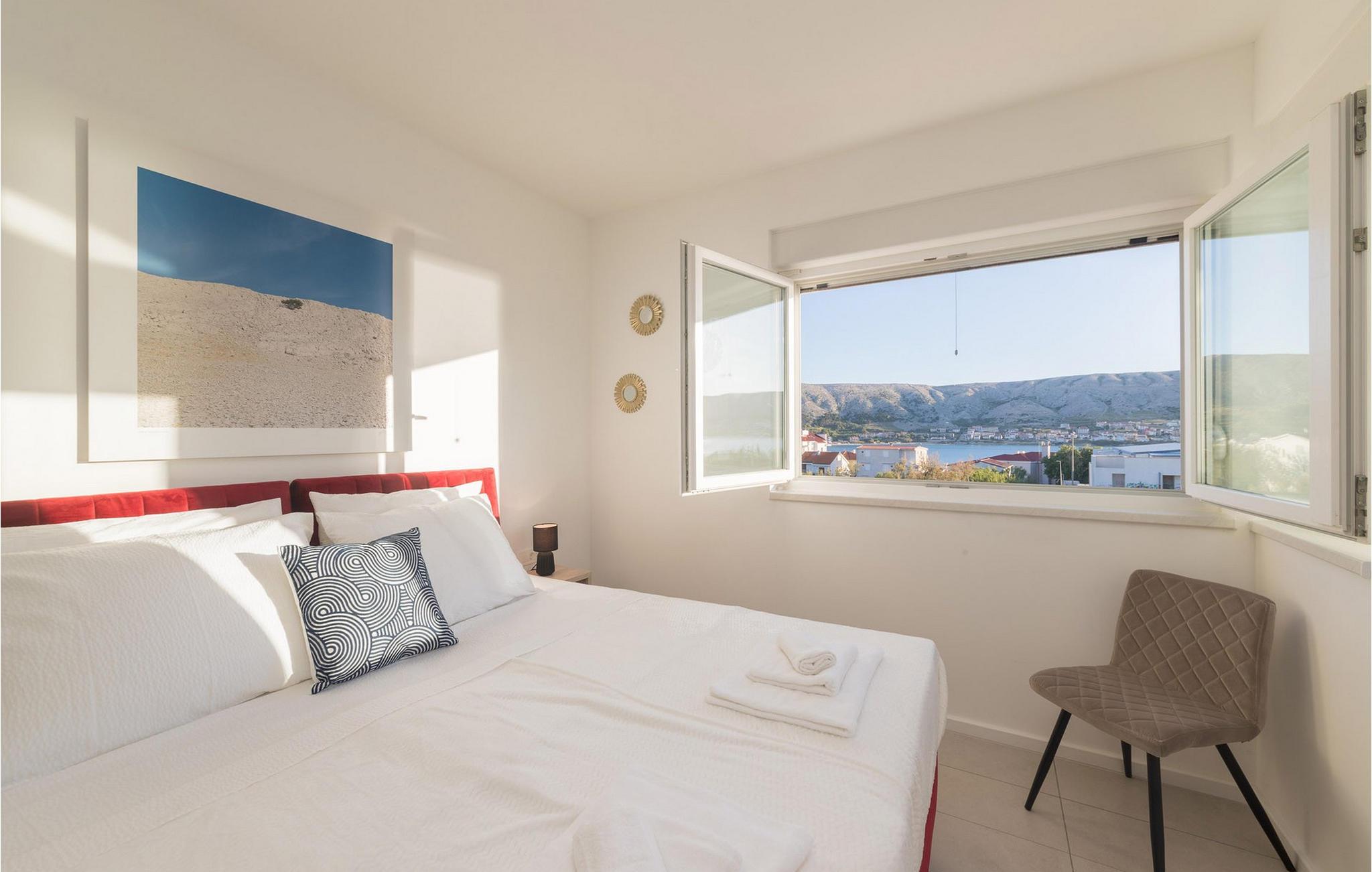 In der Stadt Pag auf der gleichnamigen Insel befindet sich die luxuriöse moderne Villa Venus mit wunderschönem Meerblick. Diese wunderschöne, neu erbaute Villa mit 200 m2 luxuriös eingerichteter Wohnfläche bietet Platz für acht und maximal zehn Personen und verfügt über vier komfortable Schlafzimmer mit angeschlossenen Badezimmern, eine separate Toilette und einen Raum im Erdgeschoss, der eine voll ausgestattete Küche, ein gemütliches Esszimmer und ein gemütliches Esszimmer beherbergt Wohnzimmer. Das Esszimmer und das Wohnzimmer sind durch eine große Glaswand vom Außenbereich getrennt. Der gesamte Bereich ist komfortabel klimatisiert und es stehen private Parkplätze zur Verfügung. Im wunderschön angelegten Außenbereich stehen Ihnen ein Außengrill und ein von Liegestühlen umgebener Swimmingpool zur Verfügung, der während Ihres Urlaubs in dieser wunderschönen Villa eine echte Entspannungsoase sein wird. Der Strand ist nur 200 Meter von Ihrer Unterkunft entfernt und Sie können zu Fuß Restaurants, Cafés, Supermärkte und viele andere Einrichtungen erreichen, die Ihren Urlaub unvergesslich machen. Die Nähe zum Zrce-Strand, einem weltberühmten Partyziel, macht diese Unterkunft ideal für junge Leute auf der Suche nach Spaß und insbesondere für größere Gästegruppen, da die Schwestervilla Valentina auf dem angrenzenden Grundstück in der Nähe liegt. Diese Villa bietet auch Unterkunft für bis zu zehn Gäste. Lassen Sie Ihren Sommerurlaub zu einer unvergesslichen Zeit auf einer wunderschönen Insel mit einer reichen Geschichte, gastronomischer Kultur und einer unglaublich interessanten Natur werden. Haustiere sind in dieser Unterkunft nach Ermessen des Eigentümers oder gegen eine Gebühr gestattet.