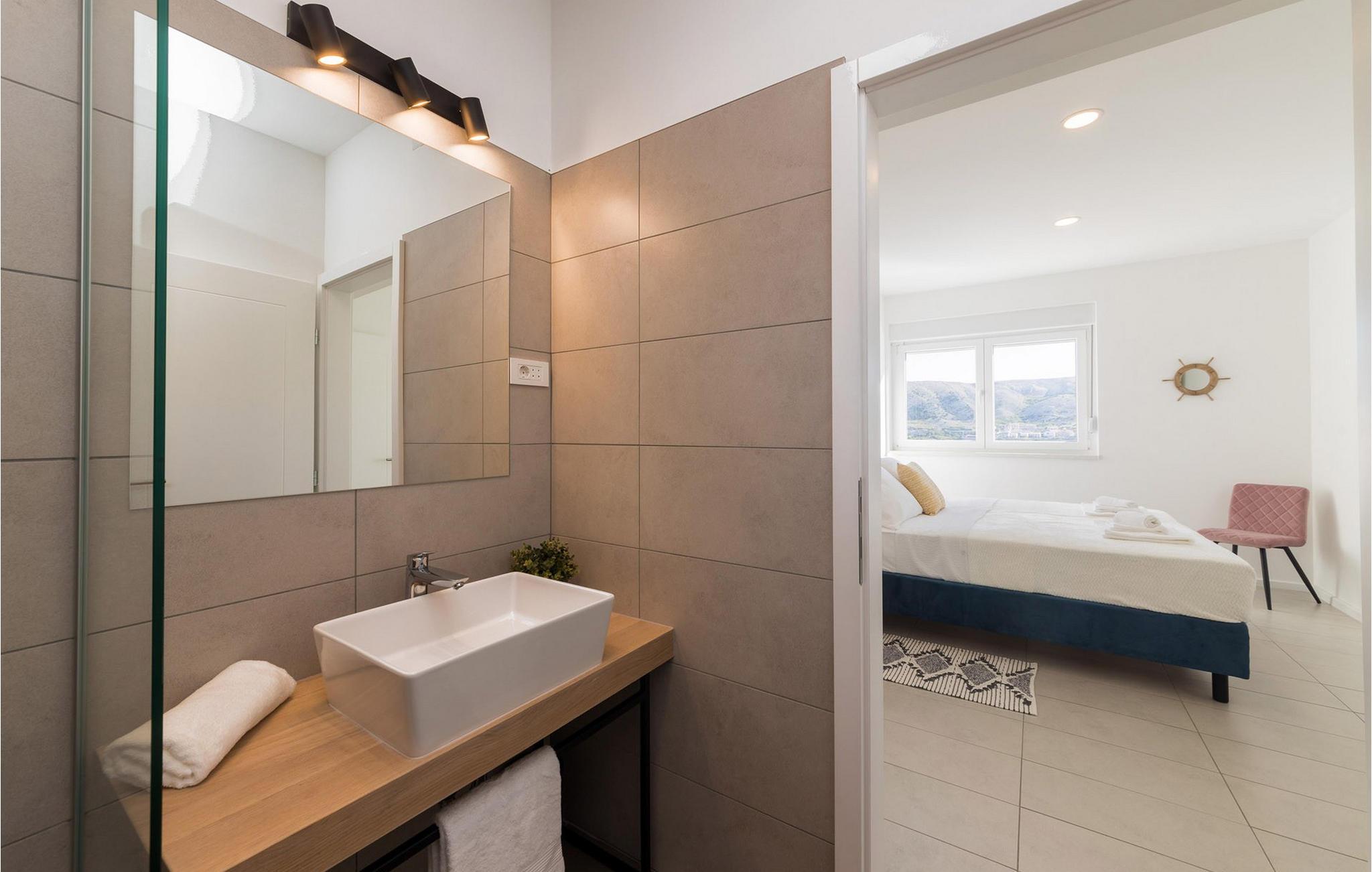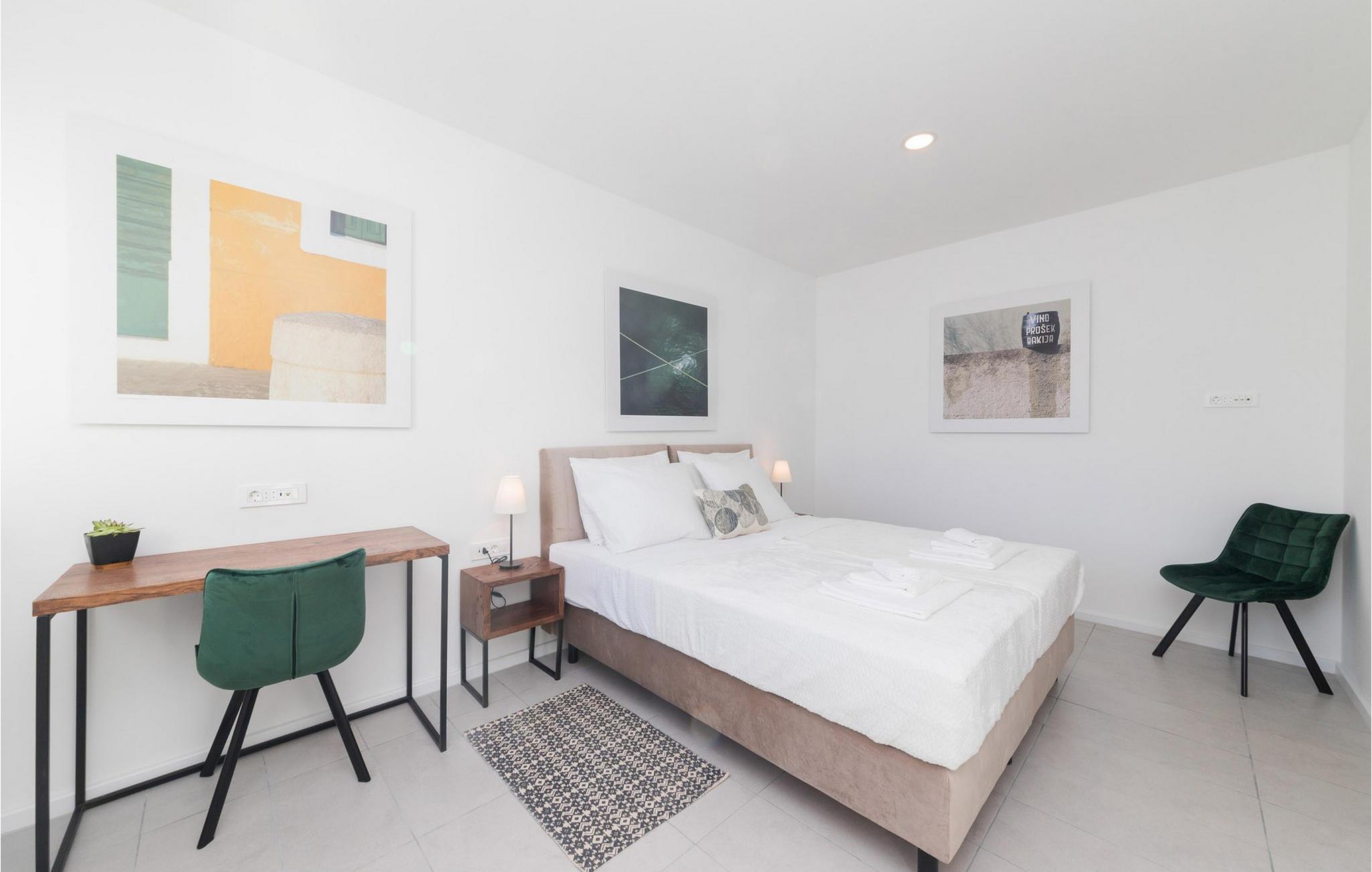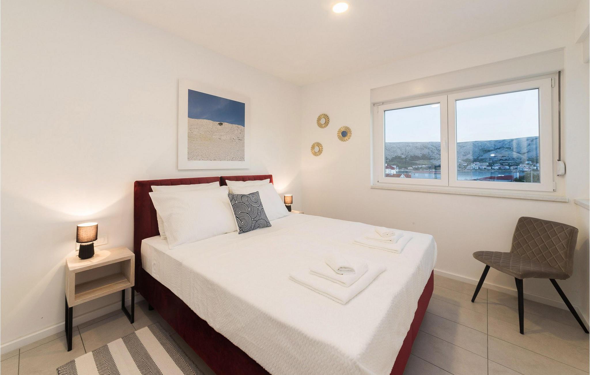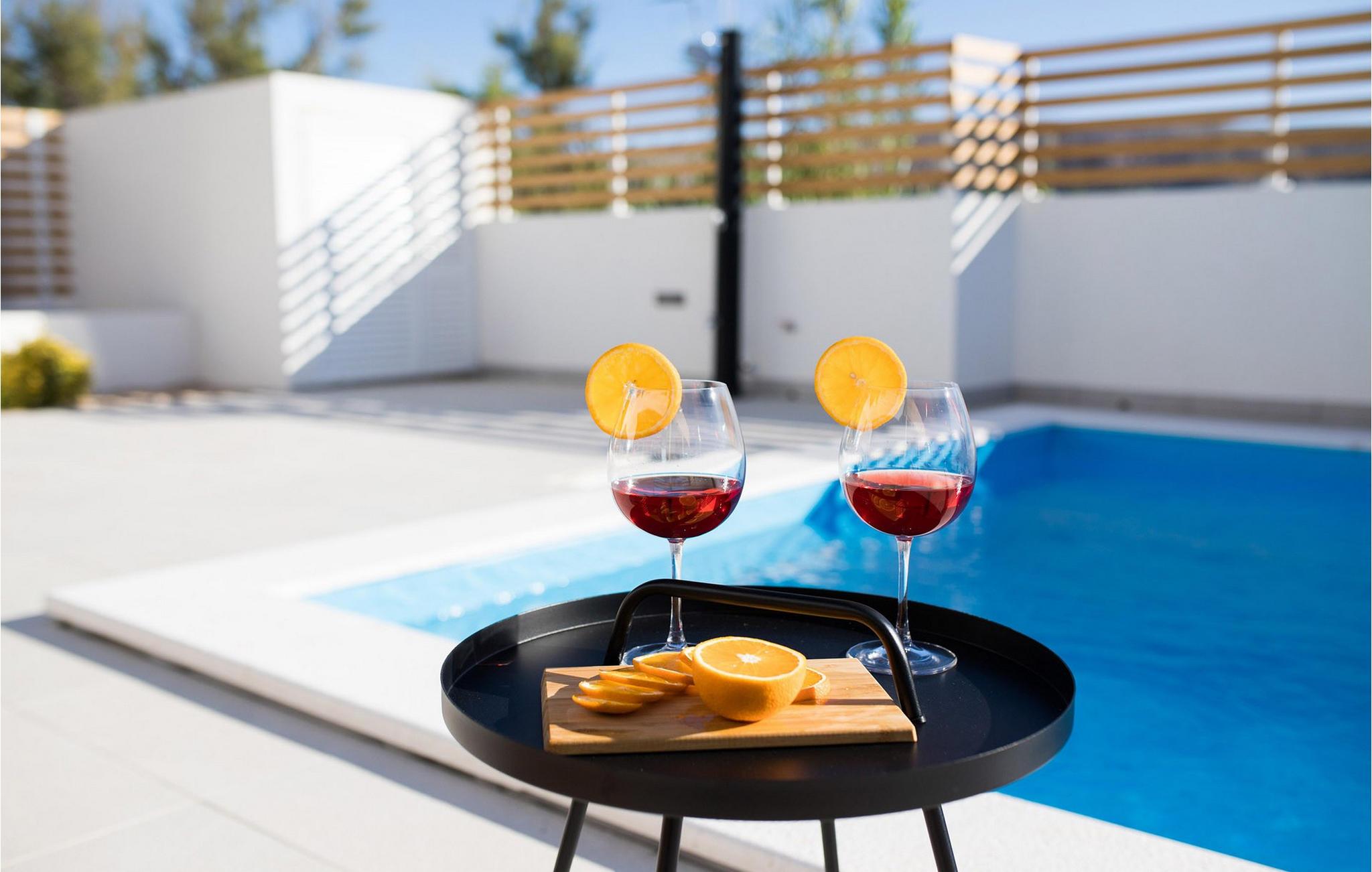 In der Stadt Pag auf der gleichnamigen Insel befindet sich die luxuriöse moderne Villa Venus mit wunderschönem Meerblick. Diese wunderschöne, neu erbaute Villa mit 200 m2 luxuriös eingerichteter Wohnfläche bietet Platz für acht und maximal zehn Personen und verfügt über vier komfortable Schlafzimmer mit angeschlossenen Badezimmern, eine separate Toilette und einen Raum im Erdgeschoss, der eine voll ausgestattete Küche, ein gemütliches Esszimmer und ein gemütliches Esszimmer beherbergt Wohnzimmer. Das Esszimmer und das Wohnzimmer sind durch eine große Glaswand vom Außenbereich getrennt. Der gesamte Bereich ist komfortabel klimatisiert und es stehen private Parkplätze zur Verfügung. Im wunderschön angelegten Außenbereich stehen Ihnen ein Außengrill und ein von Liegestühlen umgebener Swimmingpool zur Verfügung, der während Ihres Urlaubs in dieser wunderschönen Villa eine echte Entspannungsoase sein wird. Der Strand ist nur 200 Meter von Ihrer Unterkunft entfernt und Sie können zu Fuß Restaurants, Cafés, Supermärkte und viele andere Einrichtungen erreichen, die Ihren Urlaub unvergesslich machen. Die Nähe zum Zrce-Strand, einem weltberühmten Partyziel, macht diese Unterkunft ideal für junge Leute auf der Suche nach Spaß und insbesondere für größere Gästegruppen, da die Schwestervilla Valentina auf dem angrenzenden Grundstück in der Nähe liegt. Diese Villa bietet auch Unterkunft für bis zu zehn Gäste. Lassen Sie Ihren Sommerurlaub zu einer unvergesslichen Zeit auf einer wunderschönen Insel mit einer reichen Geschichte, gastronomischer Kultur und einer unglaublich interessanten Natur werden. Haustiere sind in dieser Unterkunft nach Ermessen des Eigentümers oder gegen eine Gebühr gestattet.