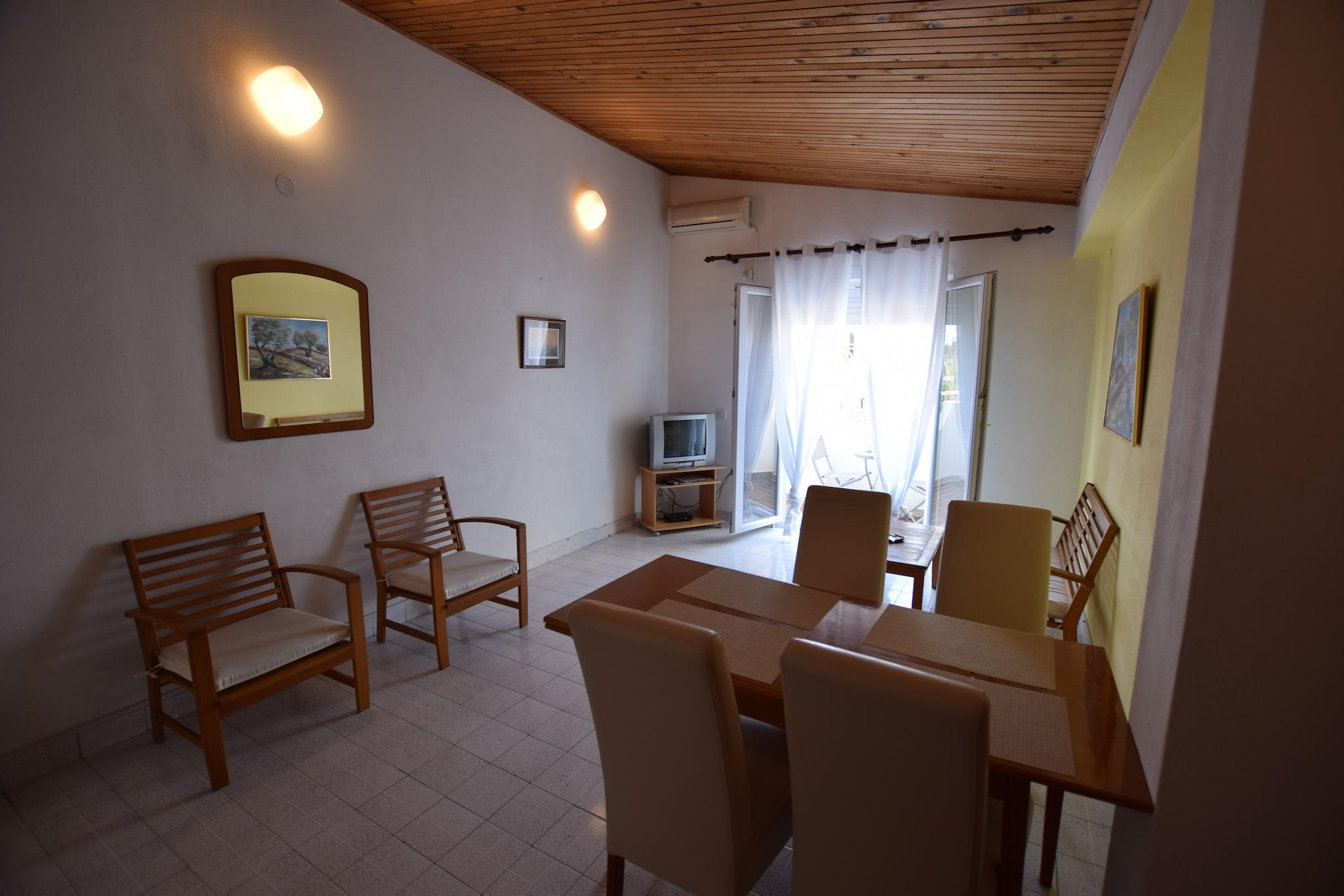 In der 1. Etage: (Wohnzimmer(Schlafcouch 1 Pers., TV), Küche(Esstisch, Wasserkocher, Kochherd(4 Kochplatten, Gas), Kühl-/Gefrierkombination), Schlafzimmer(Doppelbett), Schlafzimmer(Einzelbett, Doppelbett), Badezimmer(Dusche, Waschbecken, Toilette), Balkon) Außenküche(Gemeinschaftliche Nutzung mit dem Eigentümer und anderen Gästen ), Klimaanlage, Grill(Gemeinschaftliche Nutzung mit anderen Gästen), Parkplatz