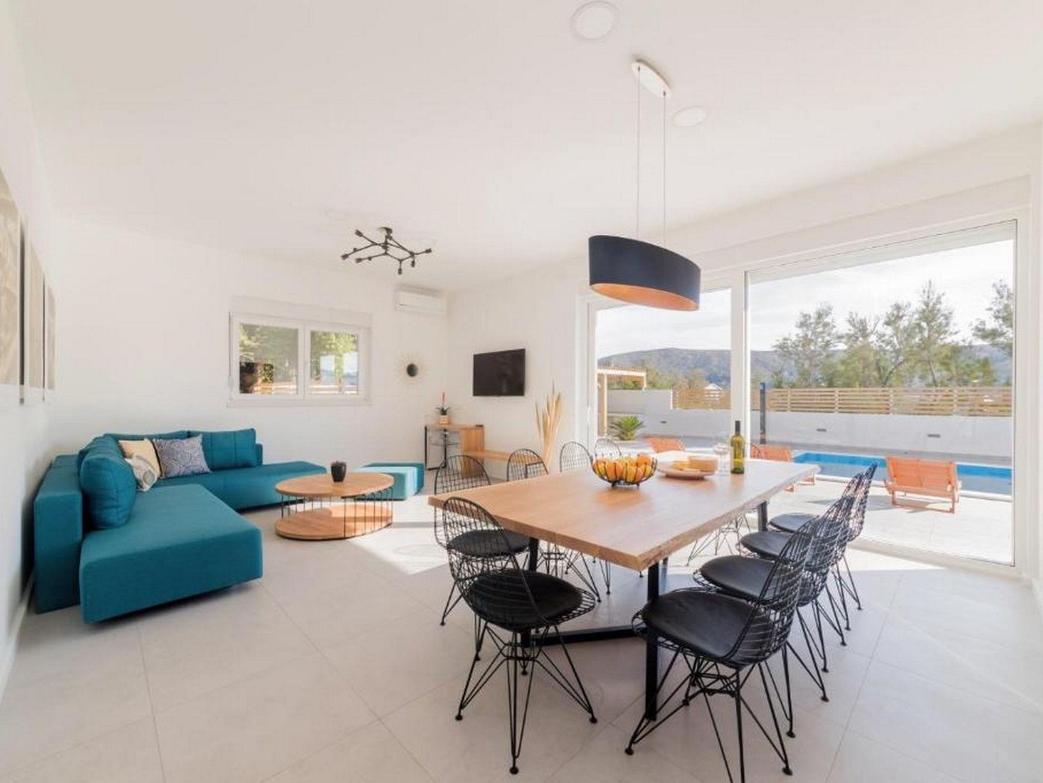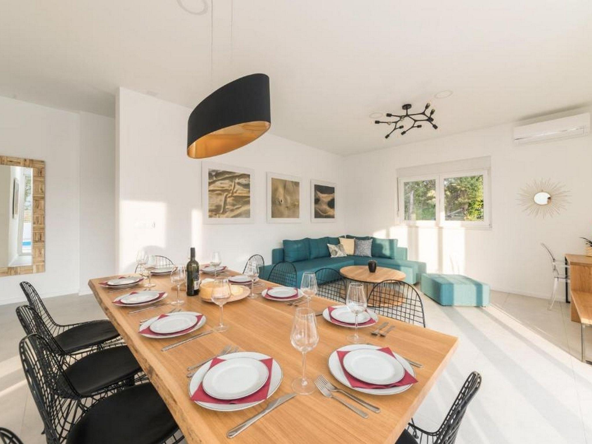 Haus bietet Platz für 10 Gäste. Die Betten sind in Schlafzimmern, die es 4 gibt, und in Wohnzimmer, innerhalb einer Gesamtfläche von 143m2, angeordnet. Die Gäste haben eine eigene Terrasse zur Verfügung, auf der sie in warmen Sommernächten genießen können. Das Haus bietet Meerblick. Es ist erlaubt, Speisen auf dem Gemeinschafts-Grill vorzubereiten. Während ihres Aufenthalts können Gäste das gemeinsam zur Nutzung stehende Schwimmbad benutzen. IM PREIS INBEGRIFFEN: Kurtaxe, Endreinigung, Klimatisierung, Pool, Parkplatz, Internet, Kinderbett, Bügeleisen, Bügelbrett, Föhn. Die Verfügbarkeit zusätzlicher Dienstleistungen in Ihrem reservierten Termin und die Preise derselben (falls nicht aufgeführt) müssen im Voraus überprüft werden. Zusätzliche Dienstleistungen die in der Zahlungsaufforderung nicht aufgeführt sind werden direkt beim Vermieter bezahlt, angenommen der Gast nutzt auch diese. Ermäßigung auf den Grundpreis: Gratistag 14=13 (bei einem Aufenthalt von 14 Tagen oder mehr erhalten Sie einen Gratistag für den Aufenthalt bis 31.12.26).