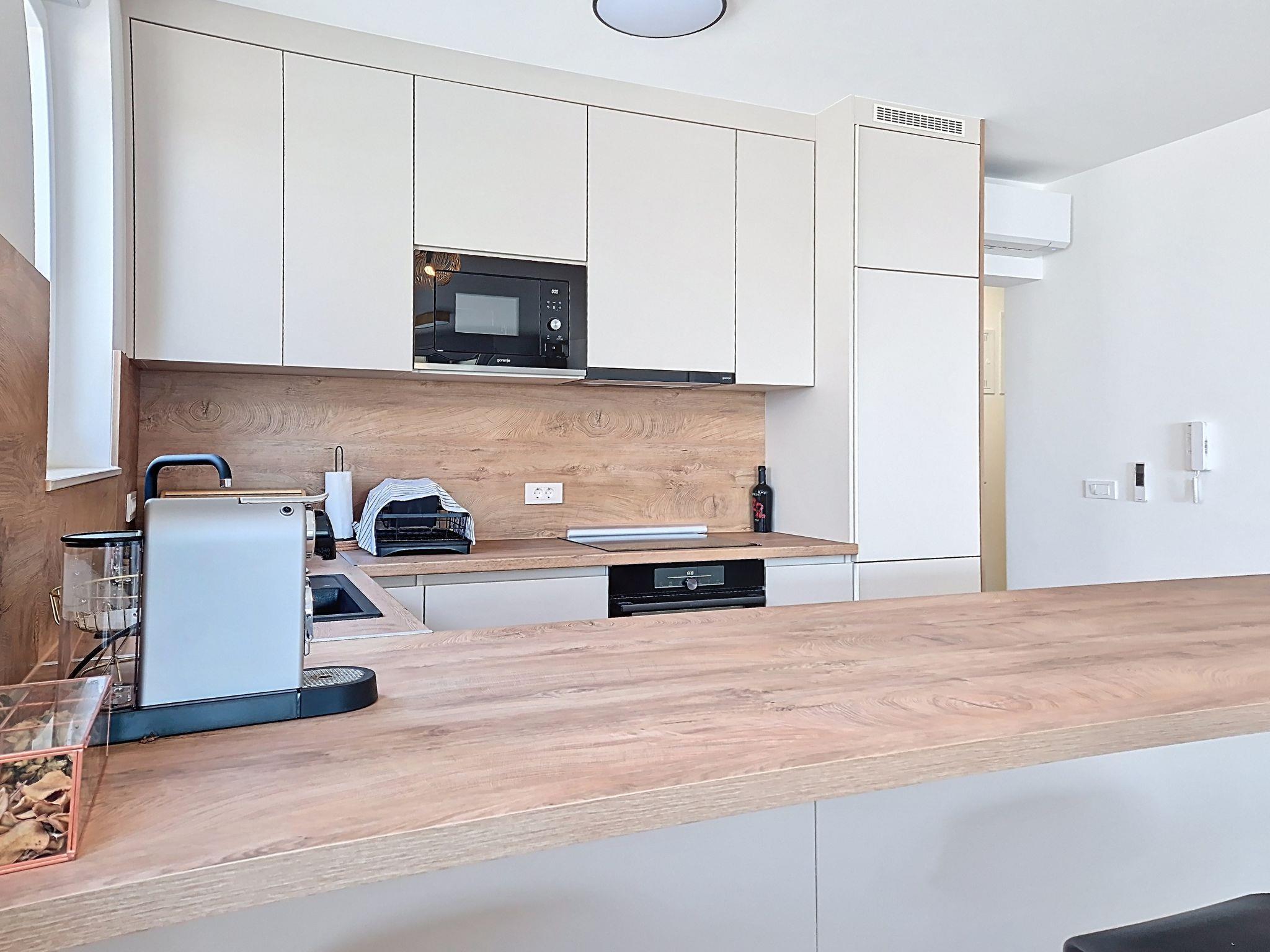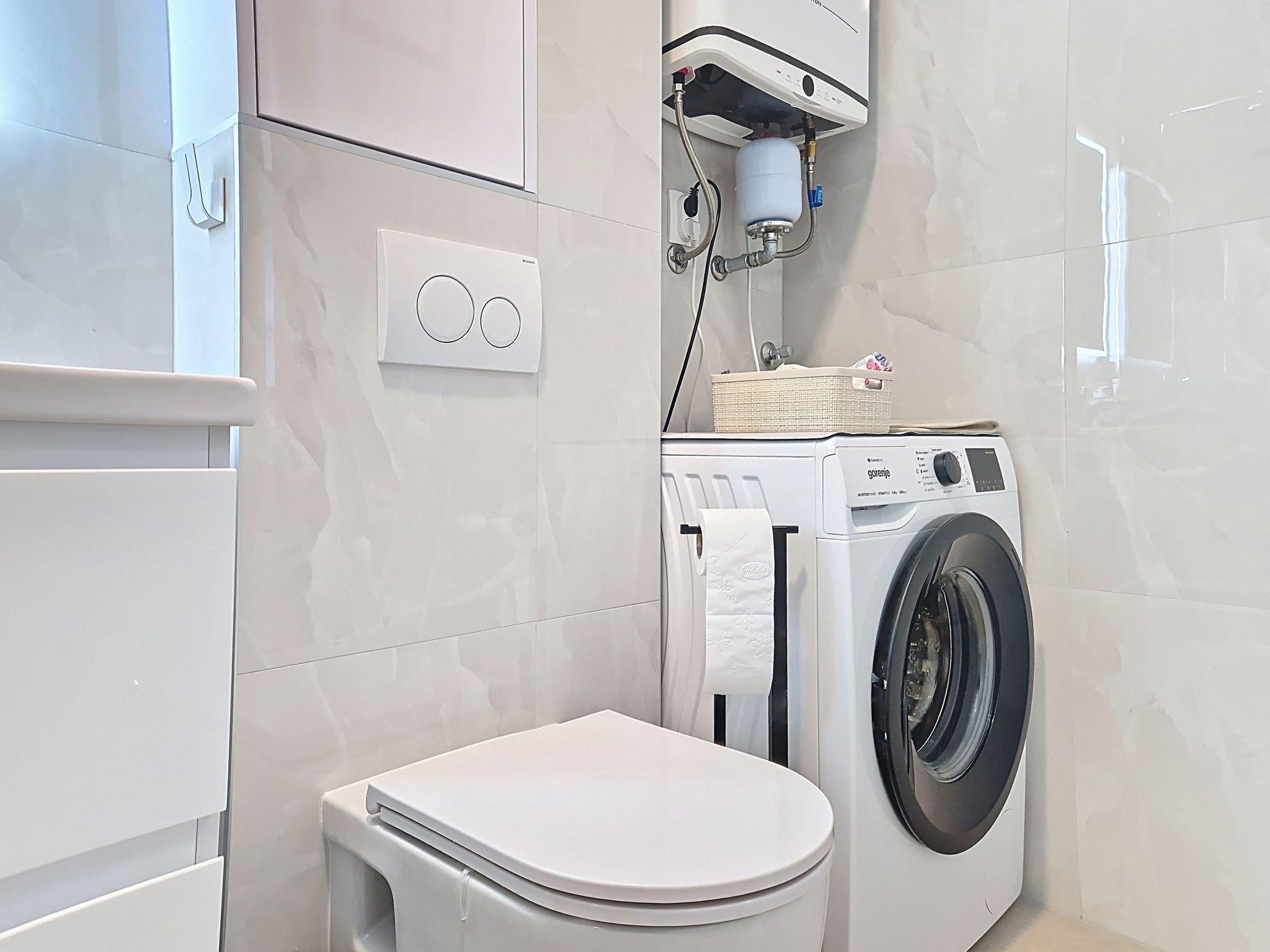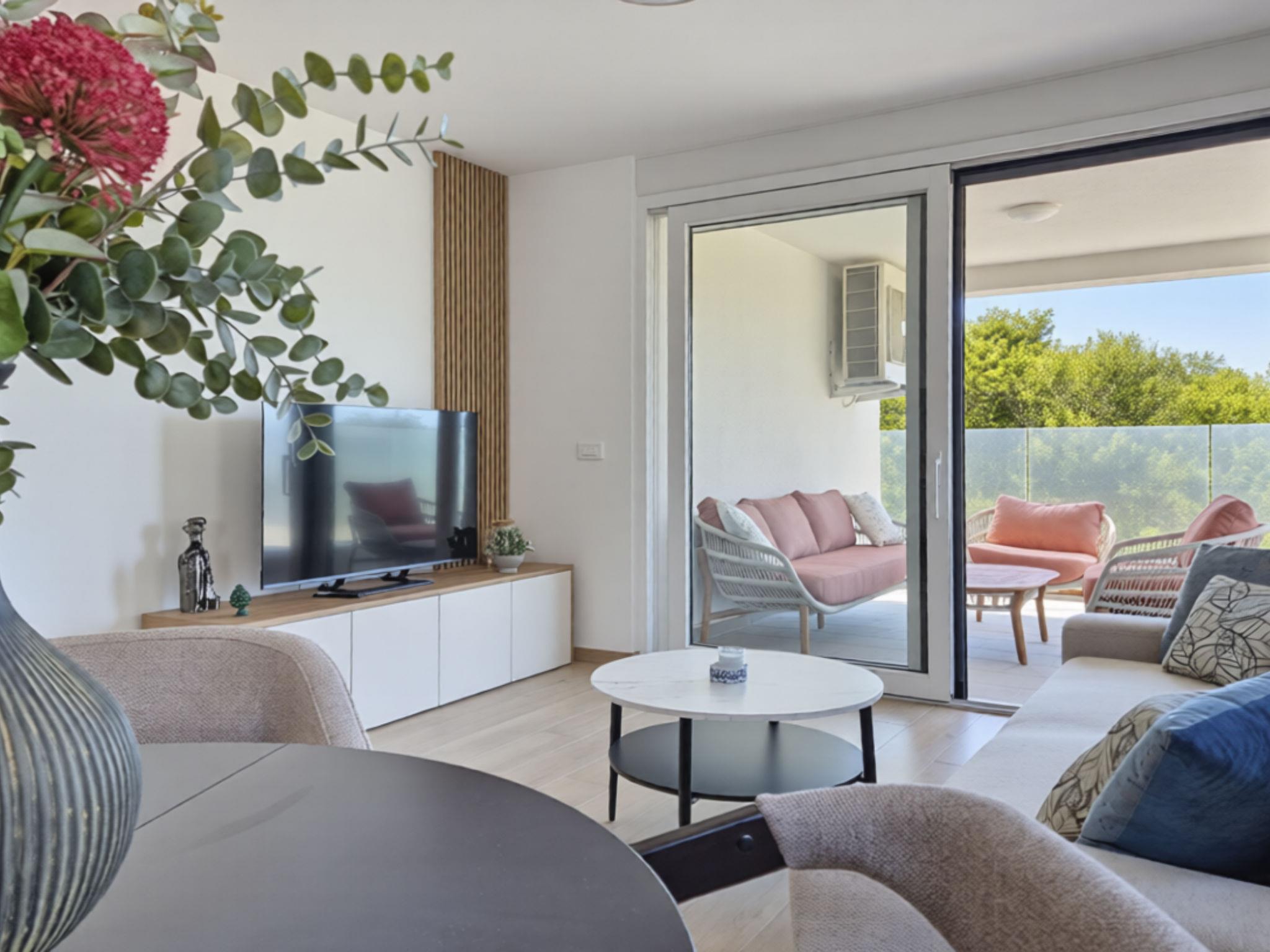 3-Zimmer-Wohnung 65 m2 im 1. Stock, Nordostlage. Wohn-/Esszimmer 35 m2 mit Kabel-TV und Internationale TV-Sender (Flachbildschirm), Klimaanlage. Ausgang zum Balkon. 2 Zimmer, jedes Zimmer mit 1 franz. Bett (160 cm, Länge 200 cm), Klimaanlage. Ausgang zum Balkon. Offene Küche (Backofen, Geschirrspüler, 4 Induktionskochplatten, Toaster, Wasserkocher, Tiefkühler, elektrische Kaffeemaschine). Dusche/WC. Keine Heizmöglichkeit. Balkon 12 m2, Balkon 4 m2. Balkonmöbel. Fernsicht auf das Meer. Zur Verfügung: Waschmaschine, Safe, Haartrockner. Internet (WLAN, gratis).