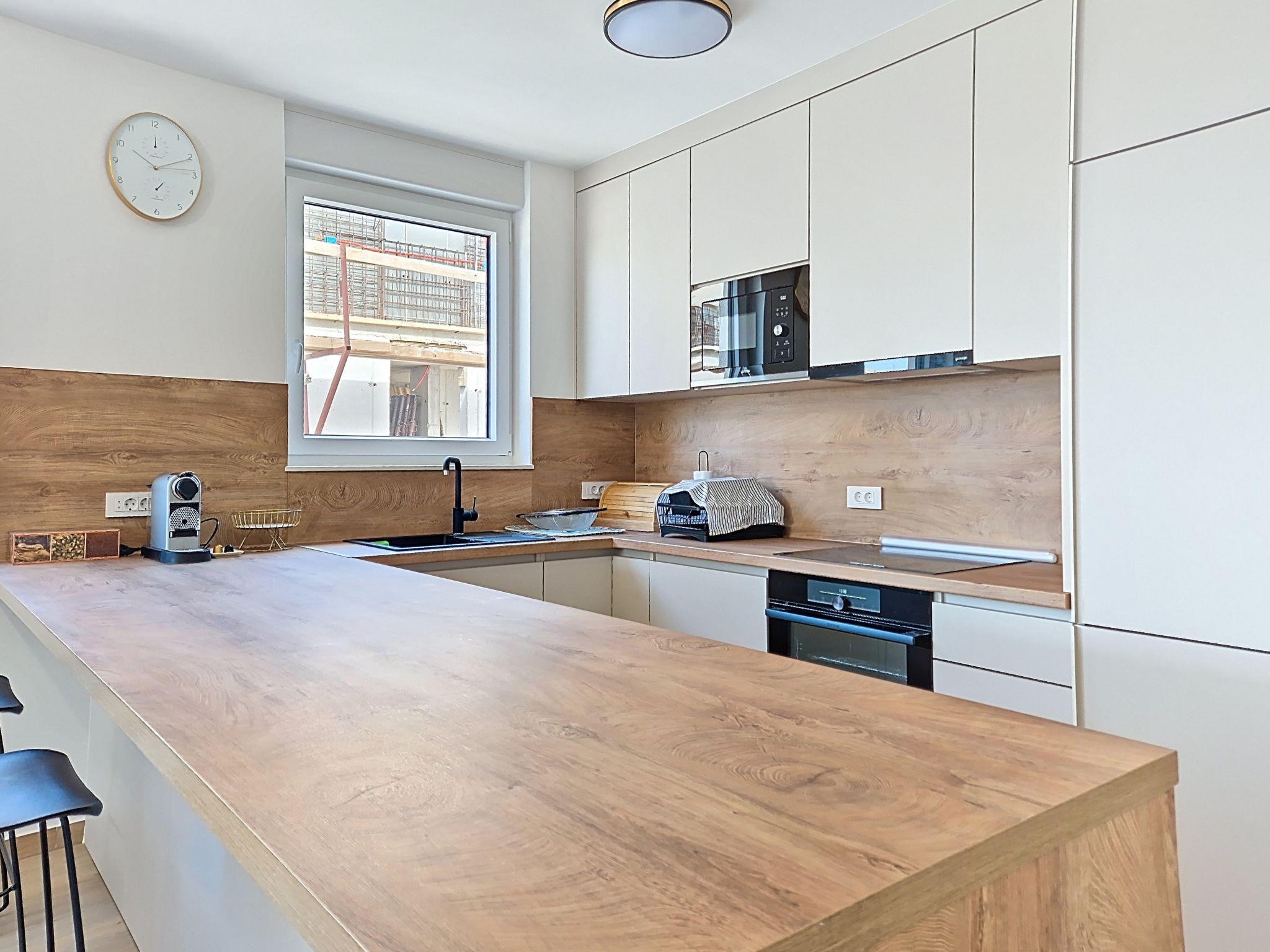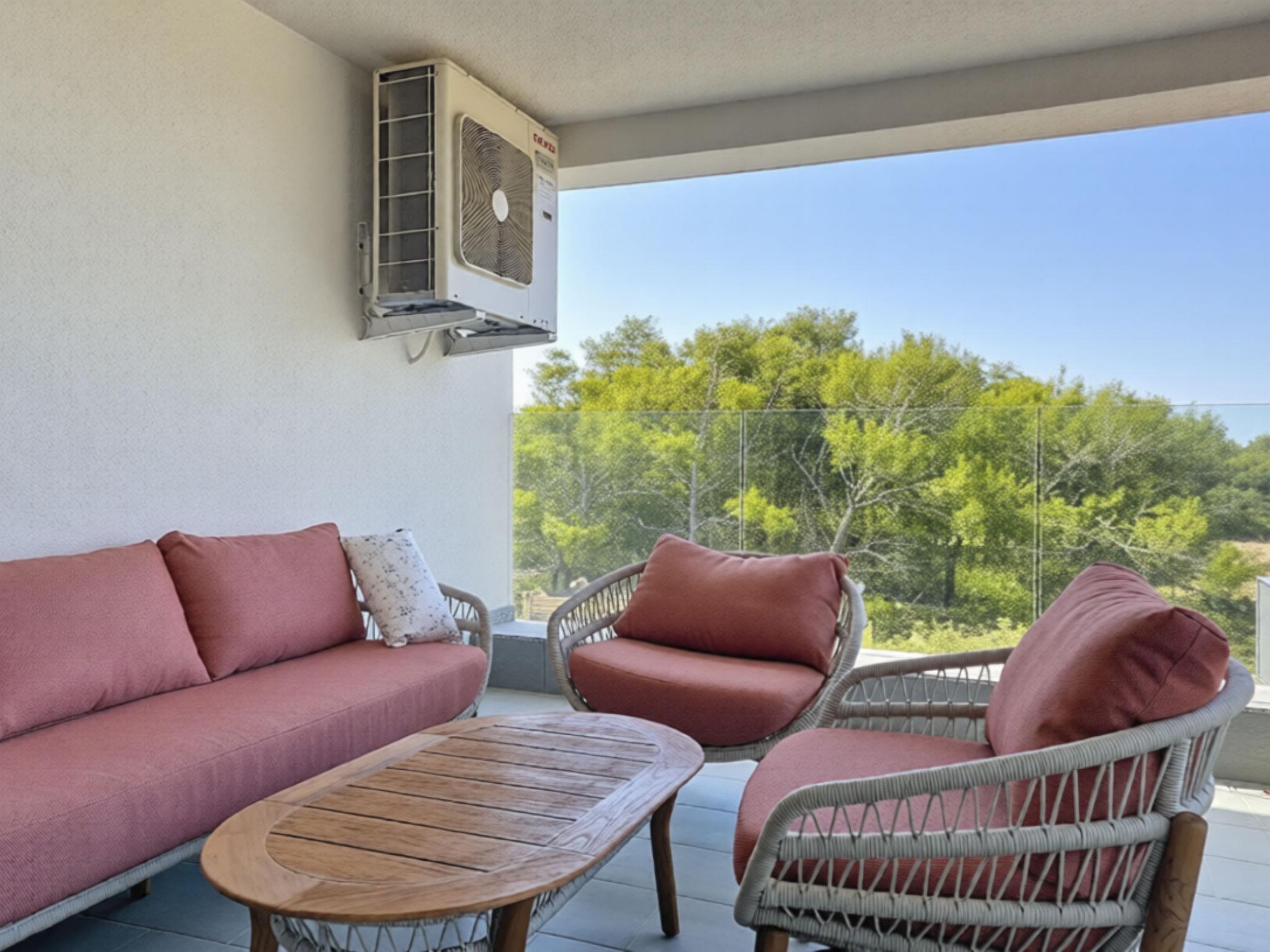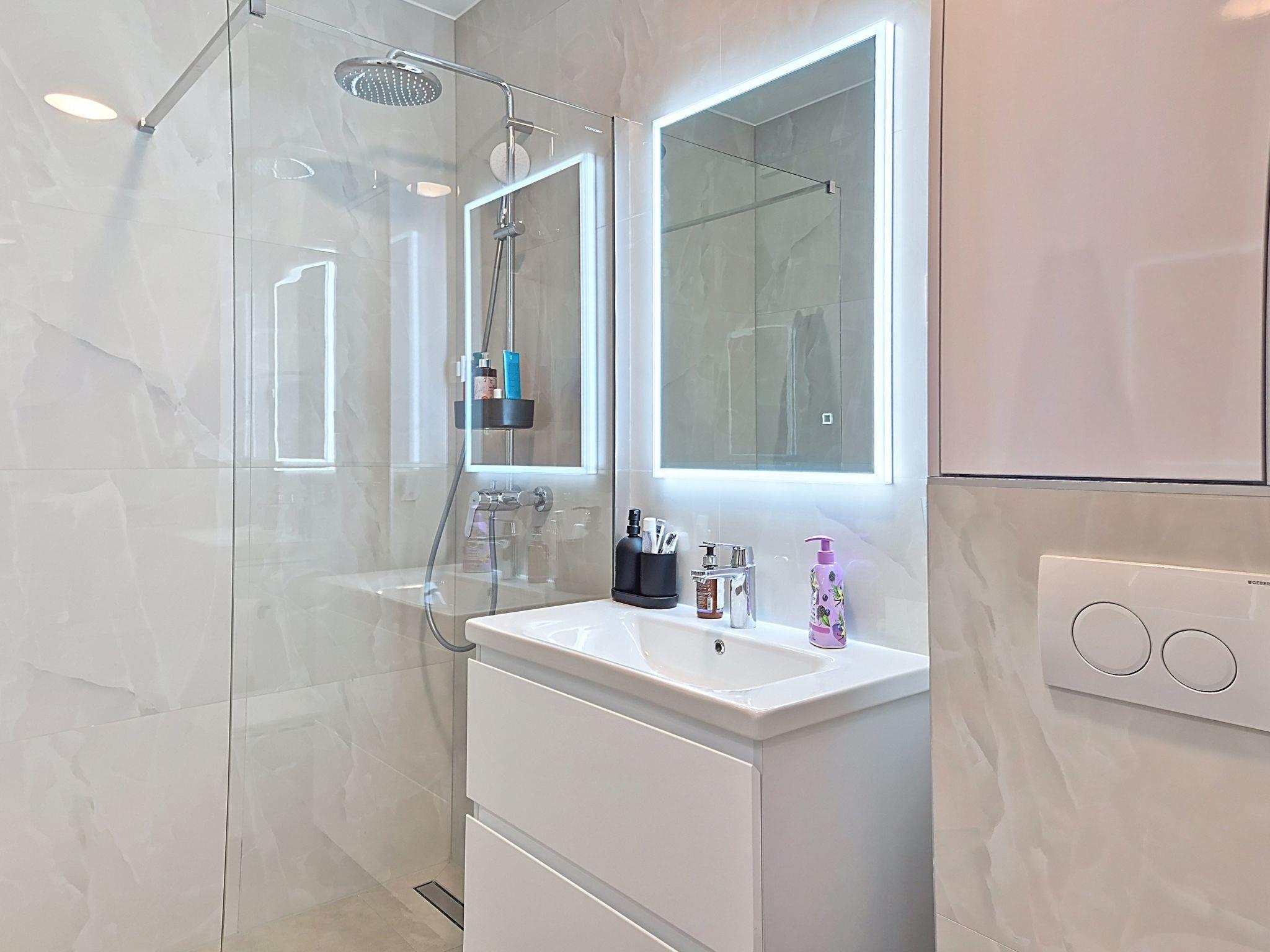 3-Zimmer-Wohnung 65 m2 im 1. Stock, Nordostlage. Wohn-/Esszimmer 35 m2 mit Kabel-TV und Internationale TV-Sender (Flachbildschirm), Klimaanlage. Ausgang zum Balkon. 2 Zimmer, jedes Zimmer mit 1 franz. Bett (160 cm, Länge 200 cm), Klimaanlage. Ausgang zum Balkon. Offene Küche (Backofen, Geschirrspüler, 4 Induktionskochplatten, Toaster, Wasserkocher, Tiefkühler, elektrische Kaffeemaschine). Dusche/WC. Keine Heizmöglichkeit. Balkon 12 m2, Balkon 4 m2. Balkonmöbel. Fernsicht auf das Meer. Zur Verfügung: Waschmaschine, Safe, Haartrockner. Internet (WLAN, gratis).