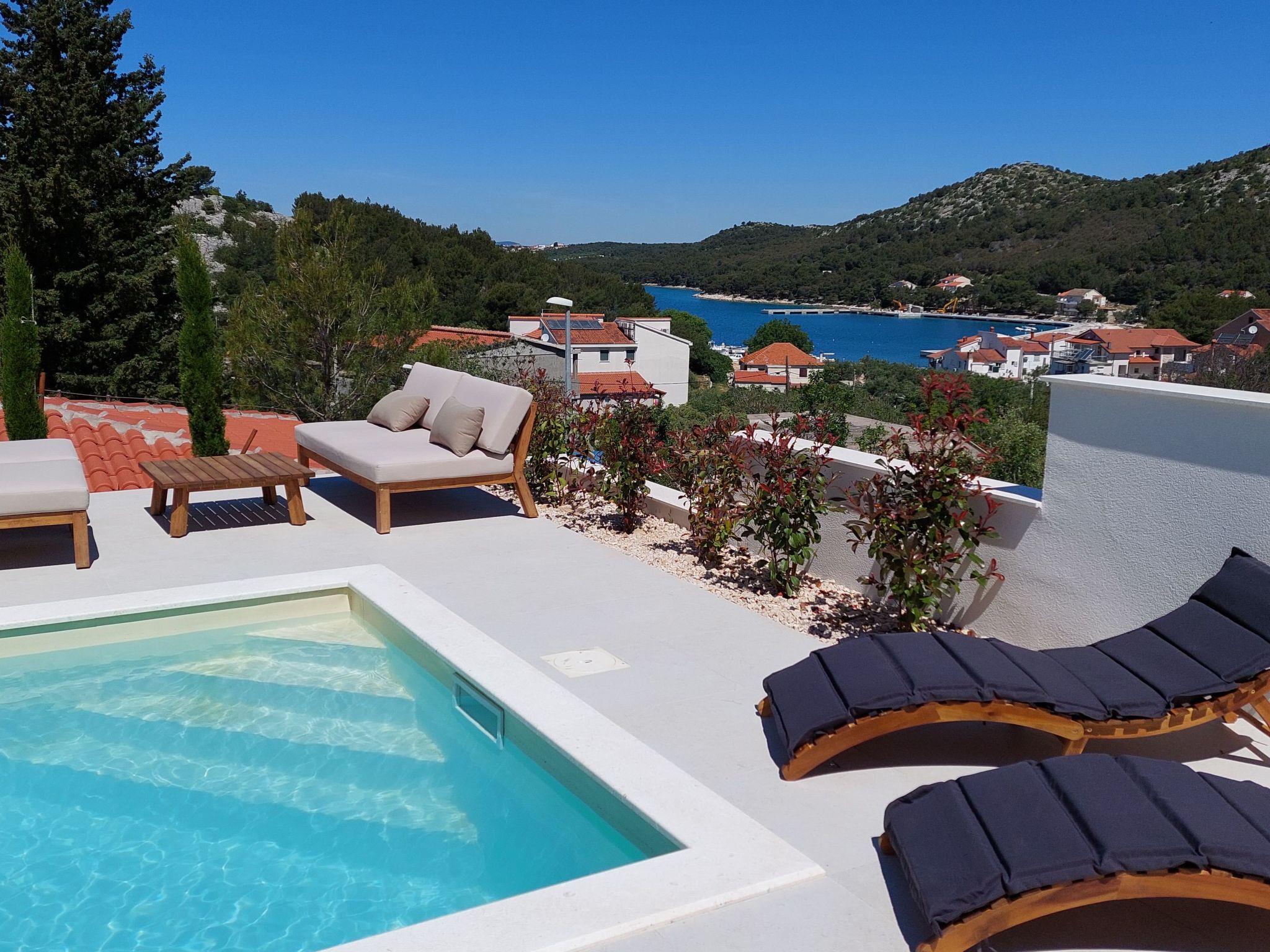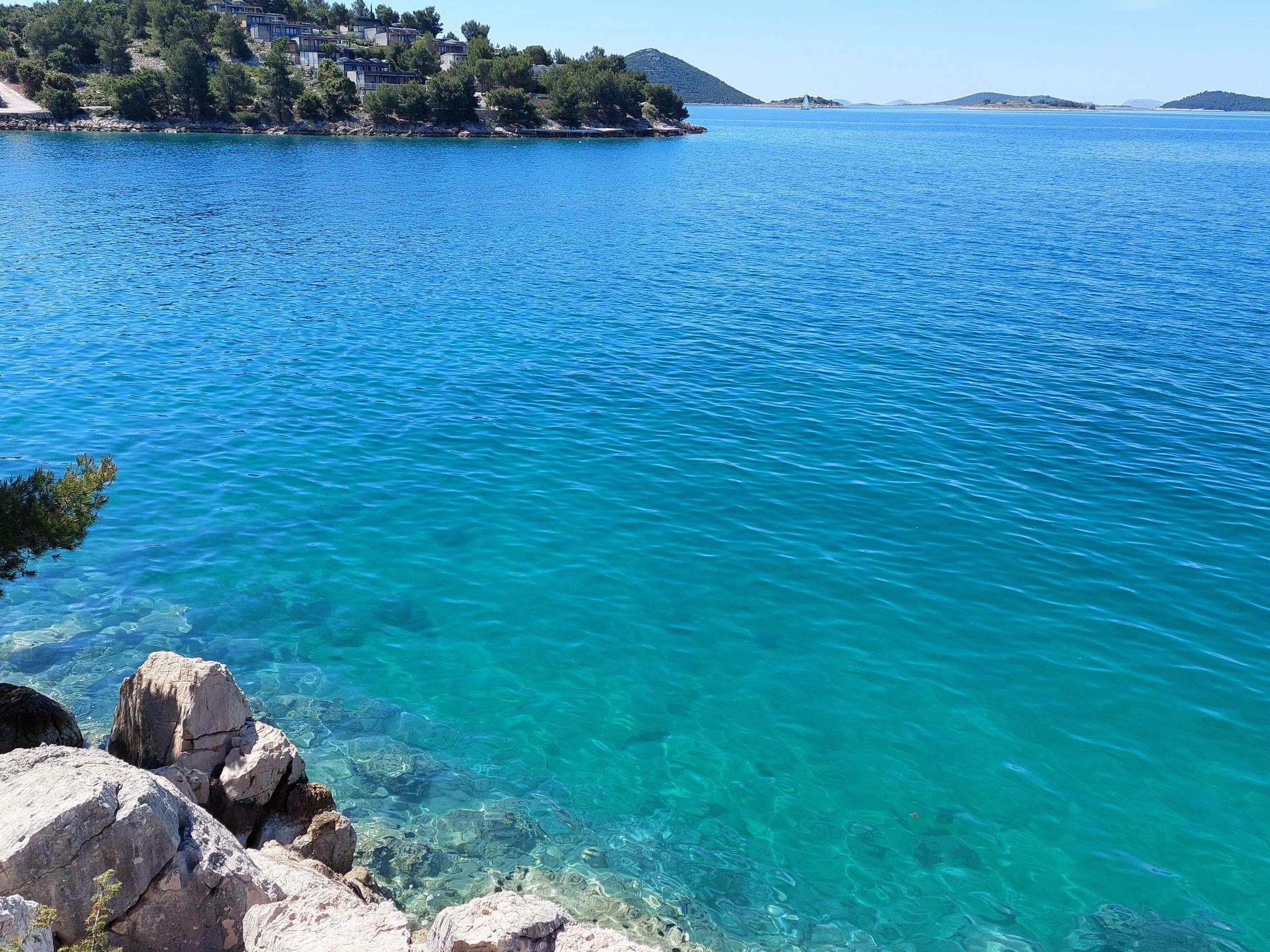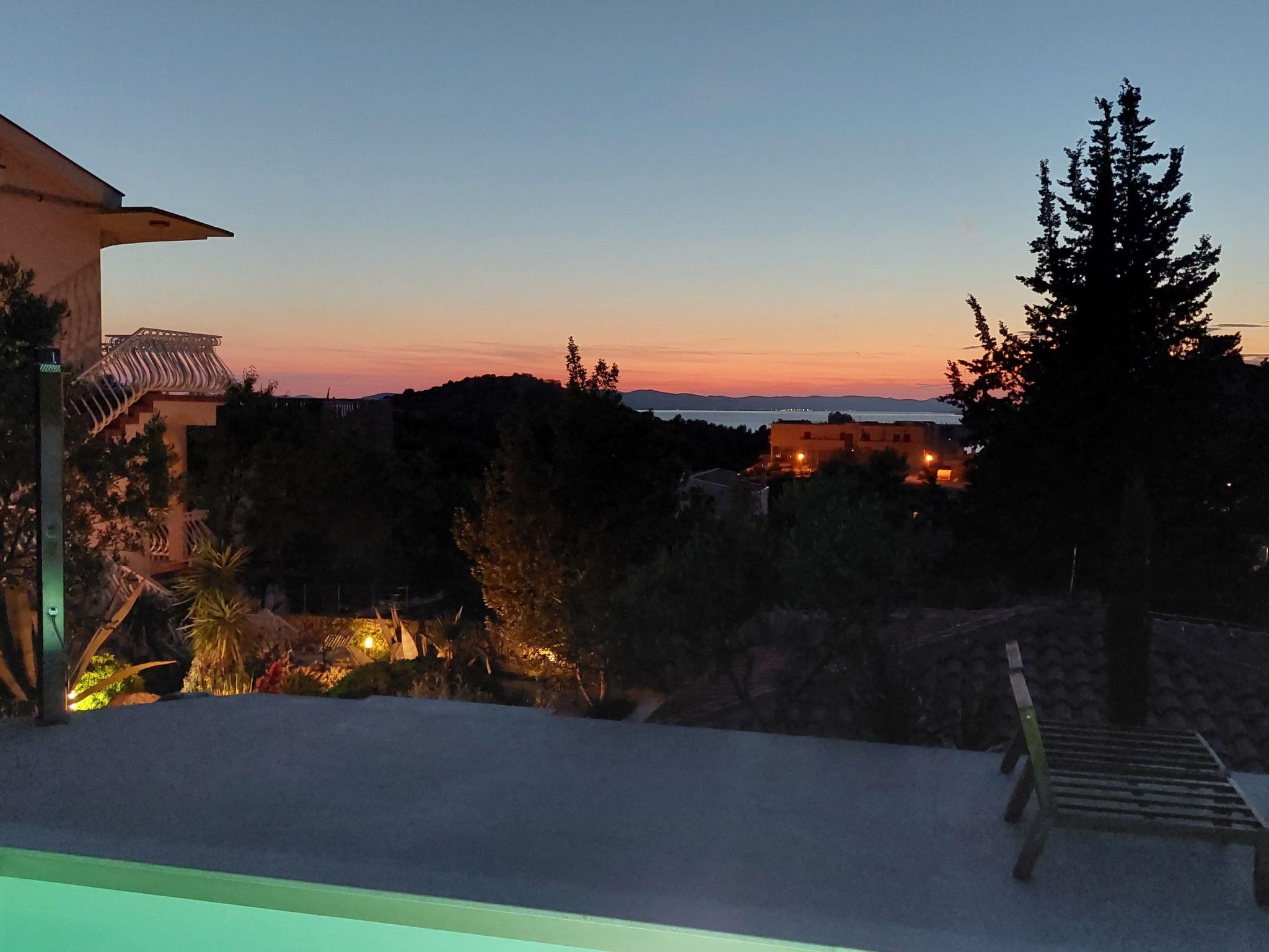Abgerundet wird das Angebot durch eine schöne, 35 m² große, überdachte Terrasse mit Esstisch, Stühlen und Liegestühlen. Die Unterkunft bietet dreiseitigen Meerblick: Kornati, die Insel Pašman und die Stadt Drage mit ihrem Hafen.