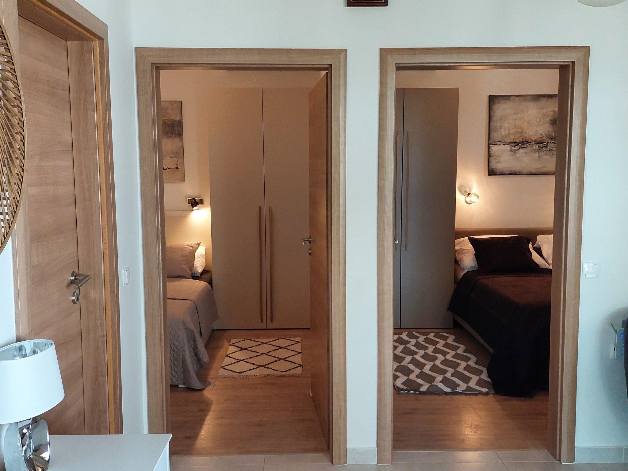 Dieses Apartment ist für 1 bis 4 Personen geeignet und hat eine Wohnfläche von 45 m². Es befindet sich im Untergeschoss eines Mehrfamilienhauses mit insgesamt 2 Apartments und verfügt über zwei Schlafzimmer mit jeweils ca. 12 m² und Standard-Doppelbetten. Das Wohnzimmer ist mit einem Sofa und einem Tisch mit Sesseln ausgestattet. Das Badezimmer ist mit Dusche und WC ausgestattet. Die ca. 8 m² große Küche ist gut ausgestattet und verfügt über einen Geschirrspüler.