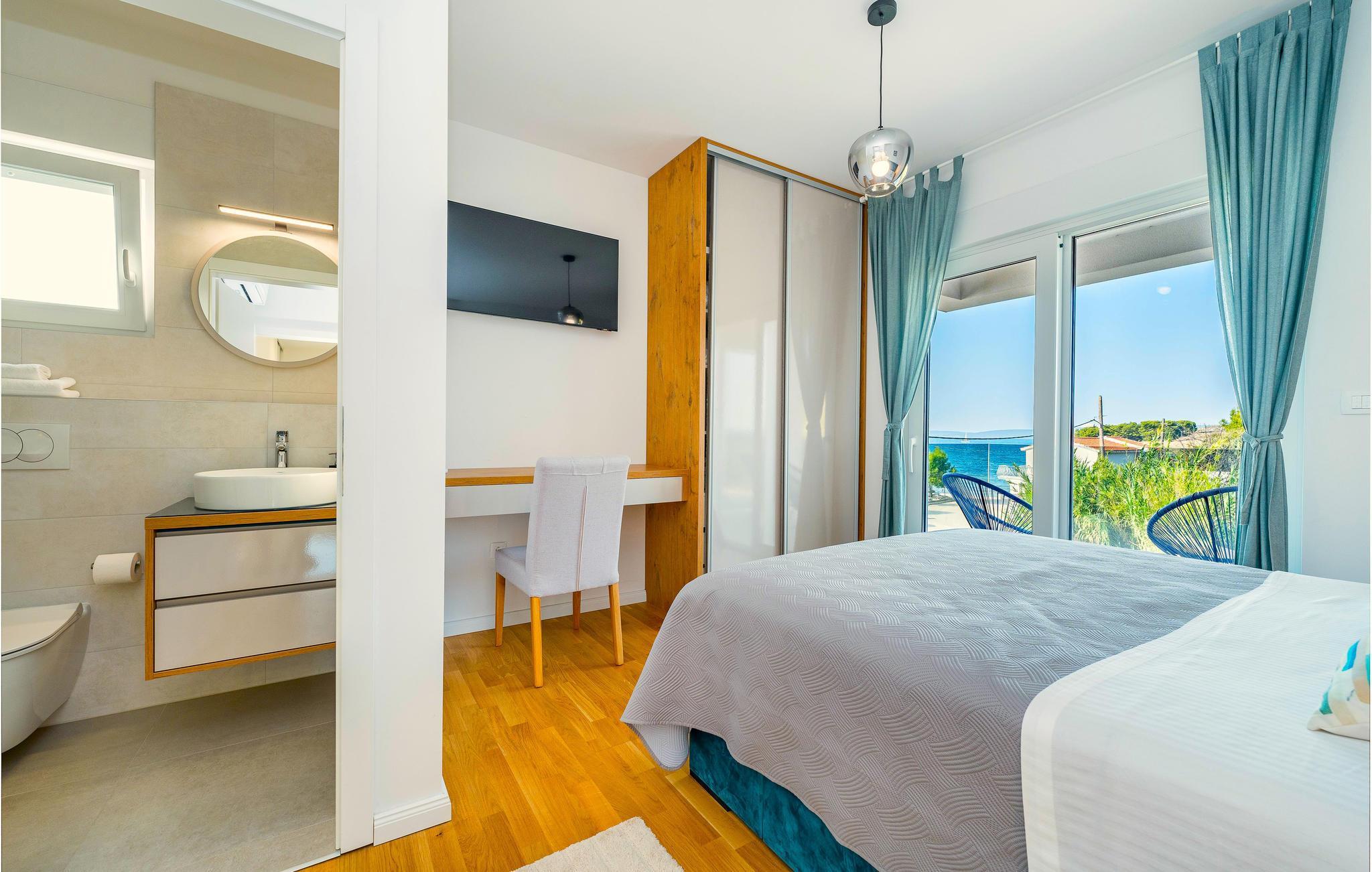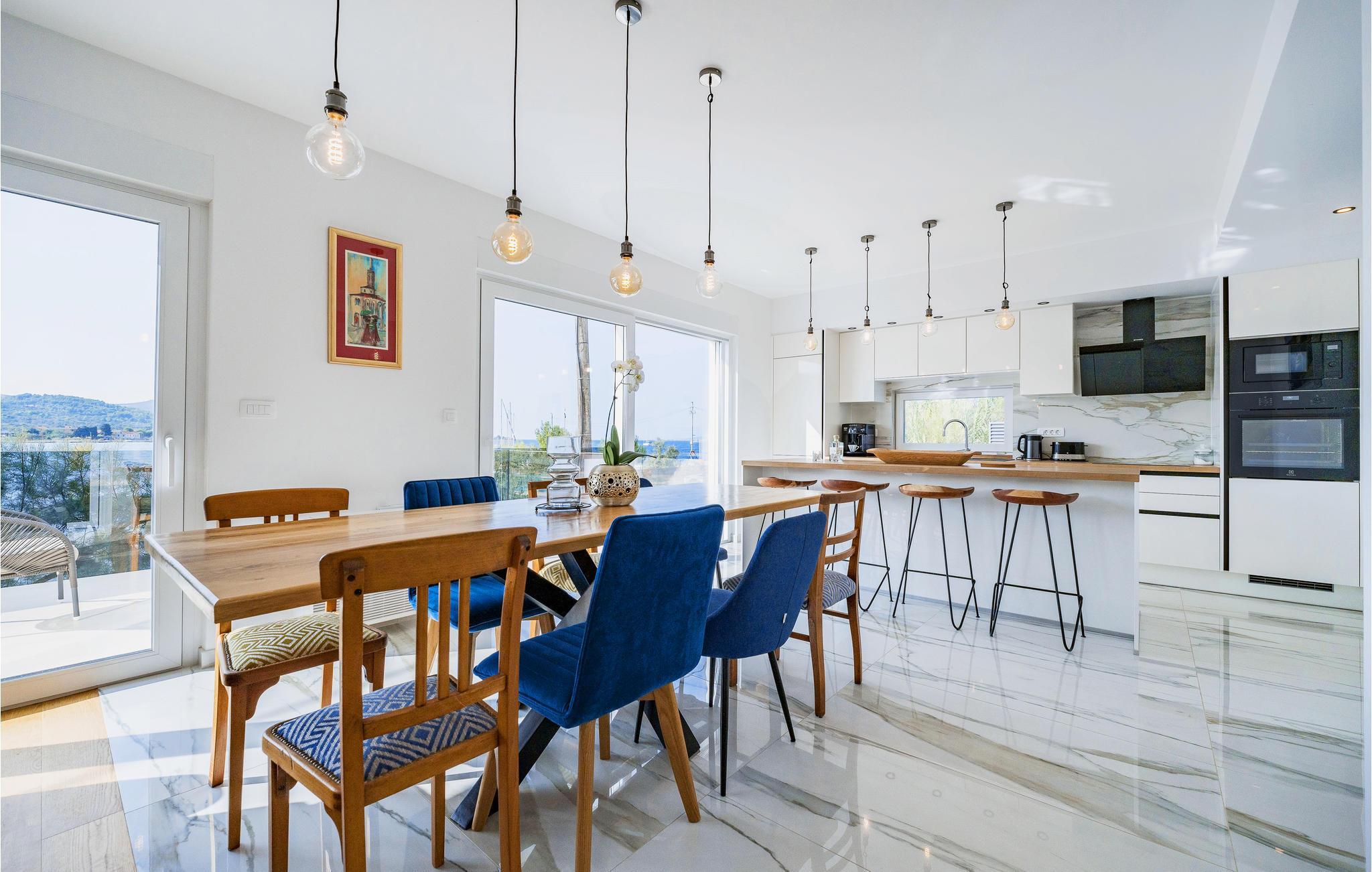 Genießen Sie erfrischende Stunden im Pool und lassen Sie dabei den Blick über das glitzernde Meer und die umliegenden Hügel schweifen. Machen Sie es sich auf den Sonnenliegen bequem und entspannen Sie im warmen Abendlicht, das die Terrasse in eine besonders stimmungsvolle Atmosphäre taucht. Verbringen Sie gemütliche Momente im Freien, sei es bei einem Drink, beim Plaudern oder beim Schmökern in Ihrer Urlaubslektüre.