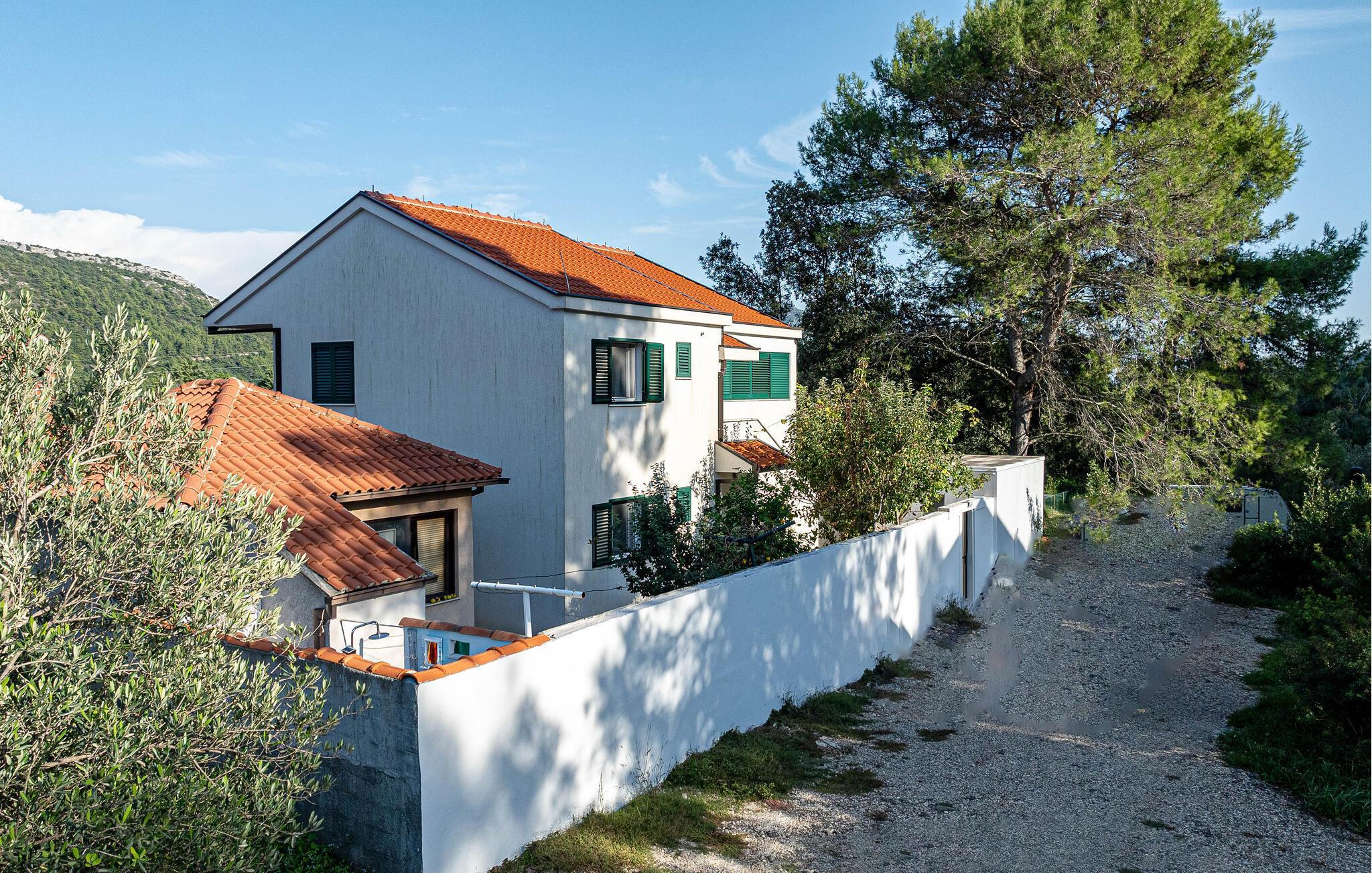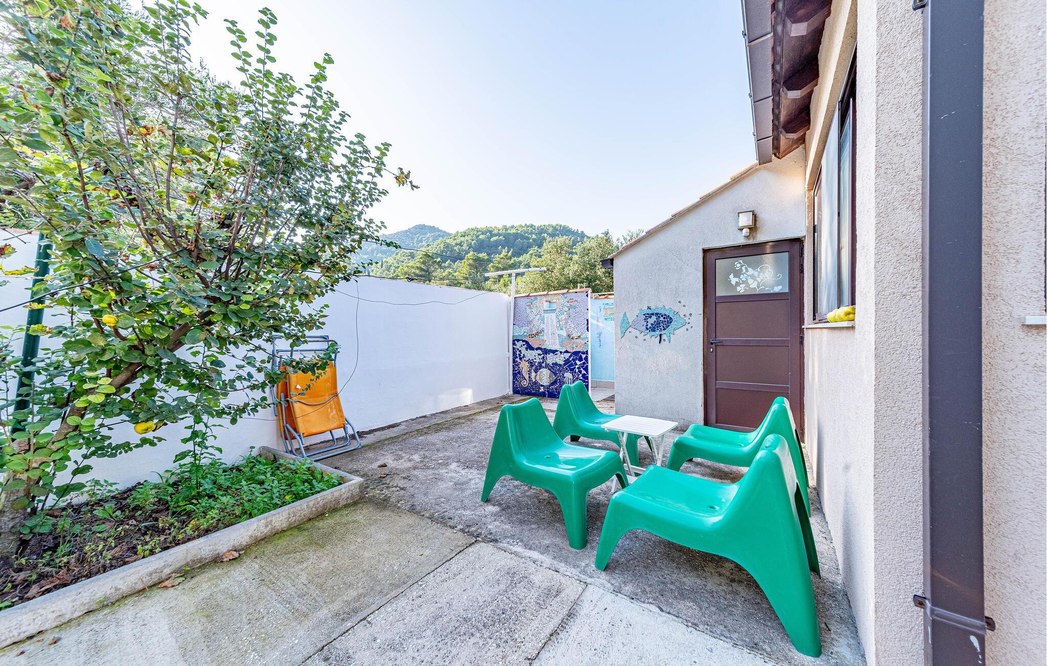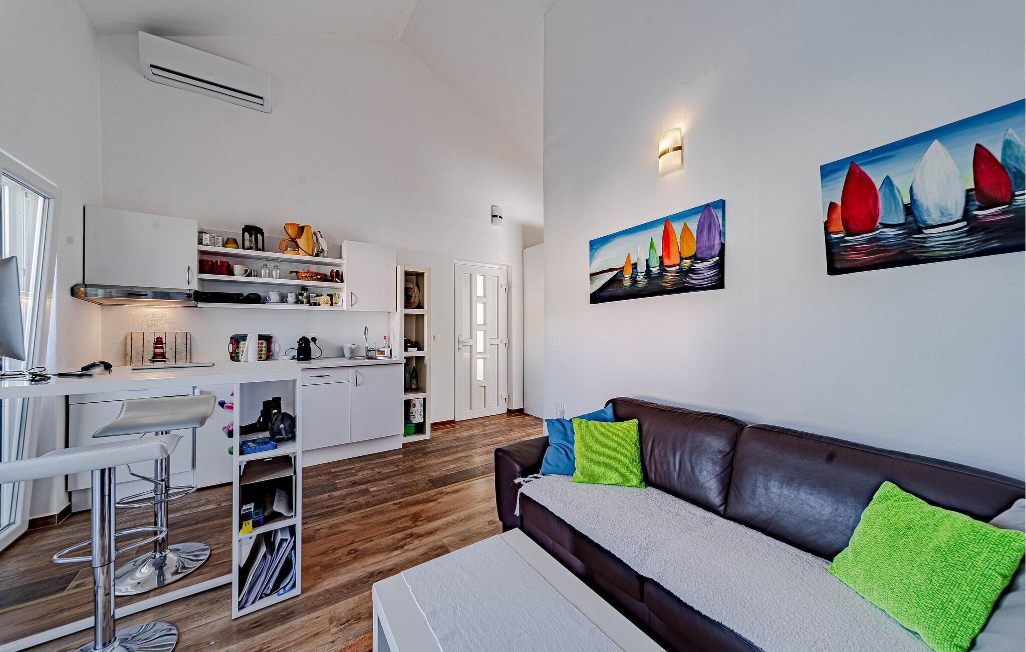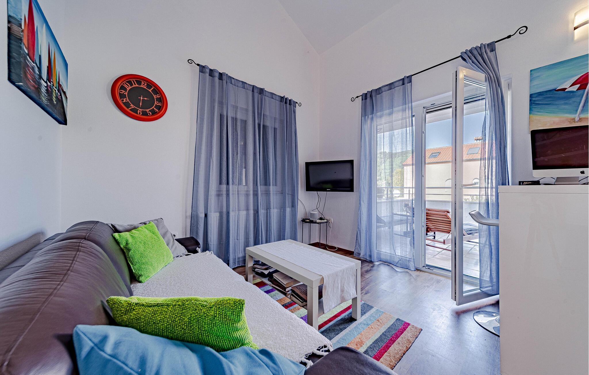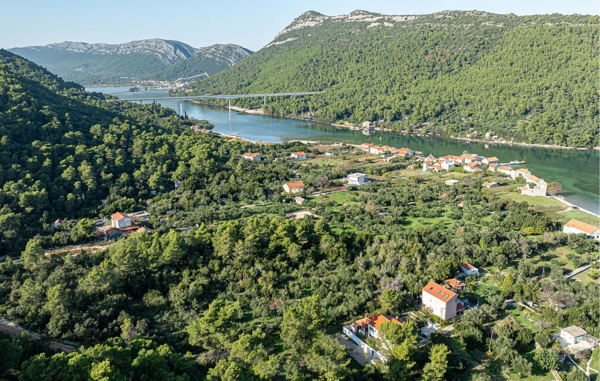 Fühlen Sie sich vom ersten Tag an wie zu Hause in dieser charmanten Ferienwohnung auf der Halbinsel Peljesac in Ston. Es erwartet Sie ein lichtdurchfluteter und gemütlicher Wohnbereich mit komfortablen Sitzmöbeln sowie eine offene, modern ausgestattete Küche. Dank der großen Fenster genießen Sie einen herrlichen Ausblick auf die idyllische, grüne Landschaft.