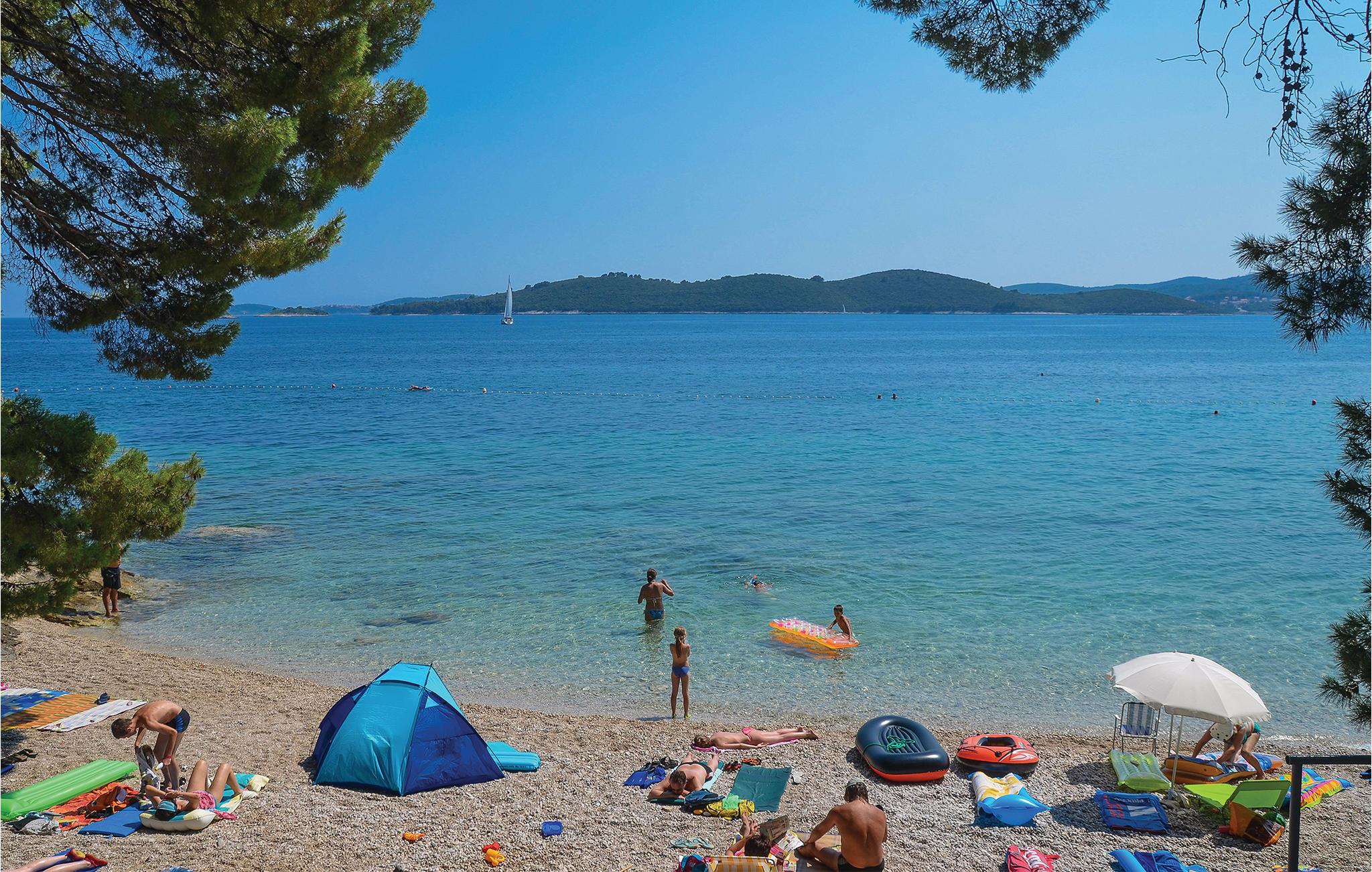 Wohnen Sie in der stilvoll eingerichteten Ferienwohnung, die sich im ersten Stock eines Mehrfamilienhauses befindet. Sie liegt auf einer Anhöhe mit wunderschönen Blick auf das Meer, im Ort Mokalo, der etwa drei Kilometer von der Stadt Orebic entfernt ist. In wenigen Hundert Metern erreichen Sie die attraktiven Sand- und Kiesstrände. Die Ferienwohnung besteht aus zwei Schlafzimmern, einer Küche mit überdachter Terrasse und Treppen, die vom Flur zum Badezimmer im Zwischengeschoss führen. Der Gemeinschaftspool ist etwa 30 Meter weiter entfernt und zum nächsten Restaurant sind es etwa 50 Meter. Abwechslungsreiche Küche und Cafés finden Sie in der nahe gelegenen Stadt Orebic.
