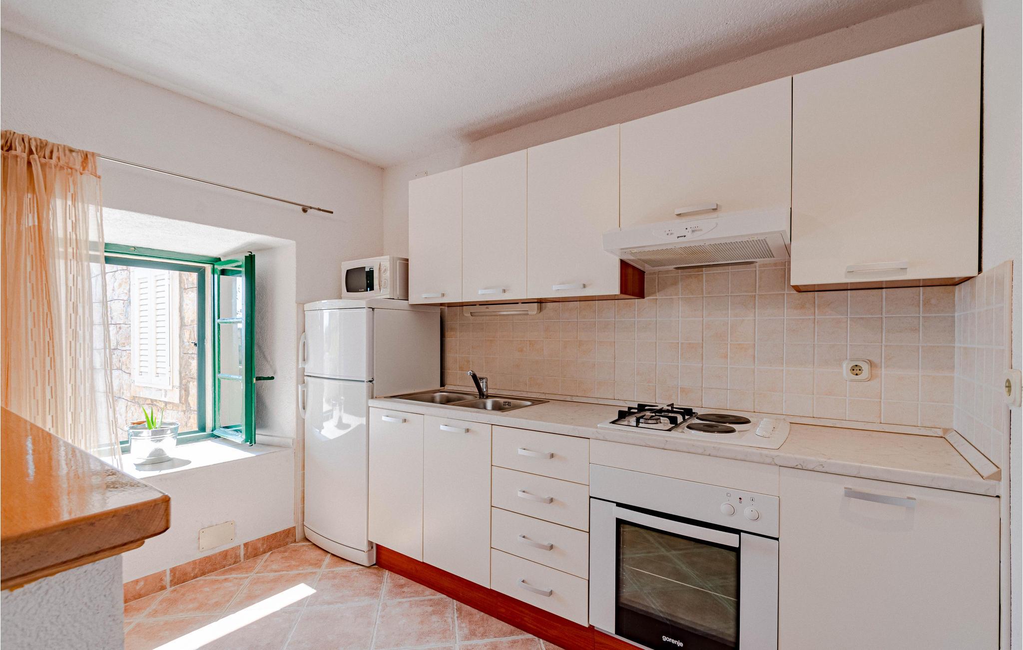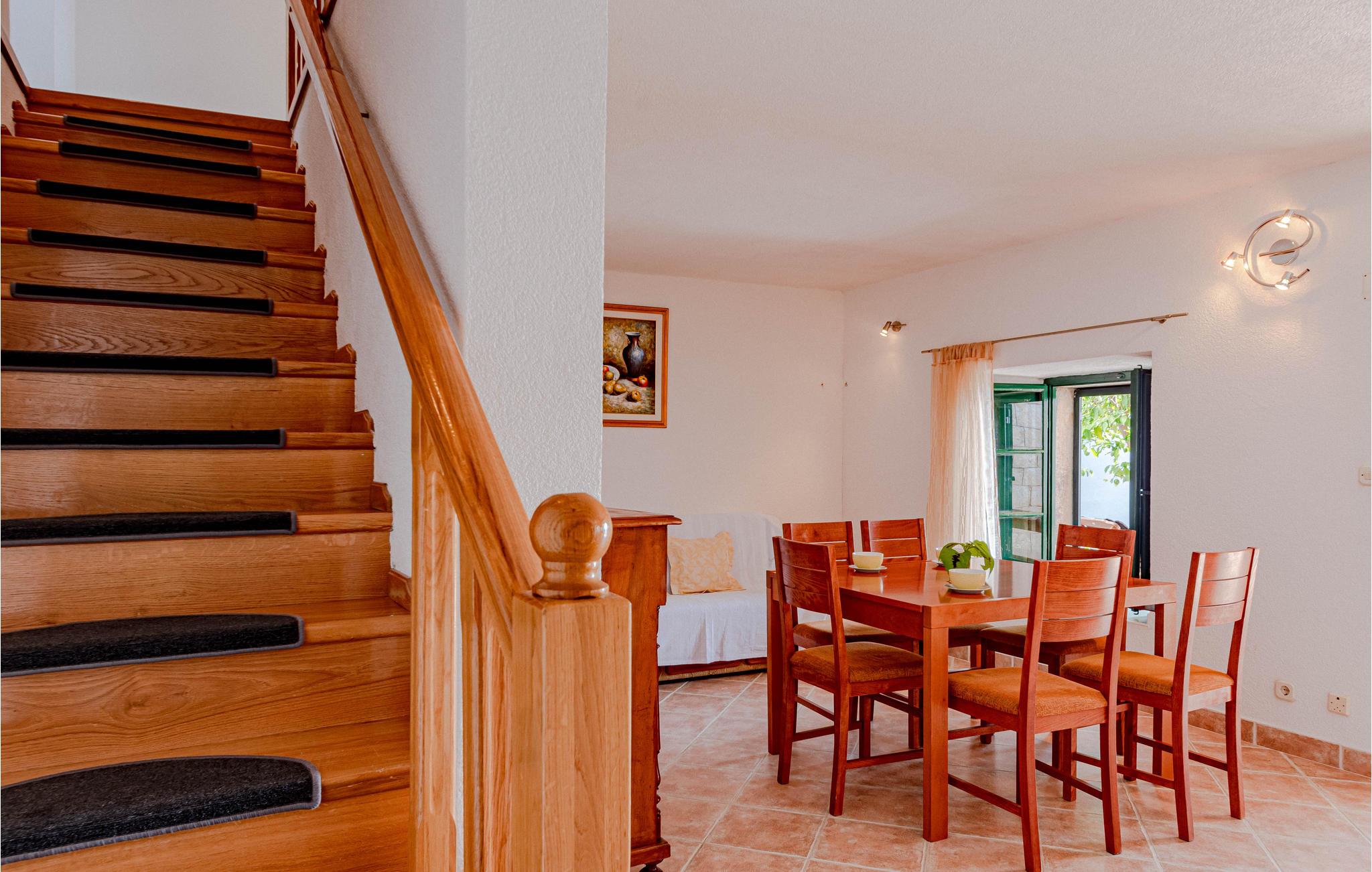 Fernab vom Trubel der Stadt heißt Sie dieses wunderbare Feriendomizil mit Panoramablick auf das Meer willkommen. Es liegt im harmonischen Dörfchen Podobuce, in dem Sie Ihren Urlaub genießen und zu Fuß zum Strand gehen können. Etwa 100 m vom Kiesstrand entfernt, befindet sich dieses ältere aber renovierte Reihenhaus. Die Innenräume sind praktisch und mit bequemen Möbeln eingerichtet. Auf der Terrasse steht Ihnen ein Grill zur Verfügung, auf dem Sie Ihre Lieblingsspeisen im Freien zubereiten oder bei einem guten Buch mit Blick auf das Meer entspannen können. Der für Sie vorgesehen Parkplatz befindet sich in der Nähe des Reihenhauses. Die Halbinsel Pelješac liegt auf halbem Weg zwischen den sehenswerten Städten Split und Dubrovnik und ist die zweitgrößte Halbinsel in Kroatien. Aufgrund des mediterrane Klima wird auf der Halbinsel viel Wein angebaut und so ist Pelješac für seine hervorragenden Weine, wie den Plavac Mali, Dingac und Postup bekannt. Die Halbinsel ist ebenfalls bekannt für seine Salzgärten sowie seine langen steinernen Verteidigungsmauernin der Stadt Ston, wo Sie eine kurze Tour über die Wehrmauer oder längere Tour über den Berg bis nach Mali Ston unternehmen können. Im Ort Orebic gibt es ein Schifffahrtsmuseum, in dem die Geschichte der dortigen maritimen Kapitäne festgehalten wird. Auf dem höchsten Gipfel, heiliger Ilija, können Sie einen wunderschönen Blick auf die ganze Insel genießen. Fahren Sie zum kleinen Dorf Zuljana, wo es ein langen Kiesstrand gibt, an dem Sie viel Badespaß im Meer genießen und sich anschließen unter schattenspendenden Olivenbäumen entspannen können. Unternehmen Sie Spaziergänge entlang der Küste und probieren Sie die frischen Austern und Muscheln, die direkt vor der Küste von Mali Ston gezüchtet werden.