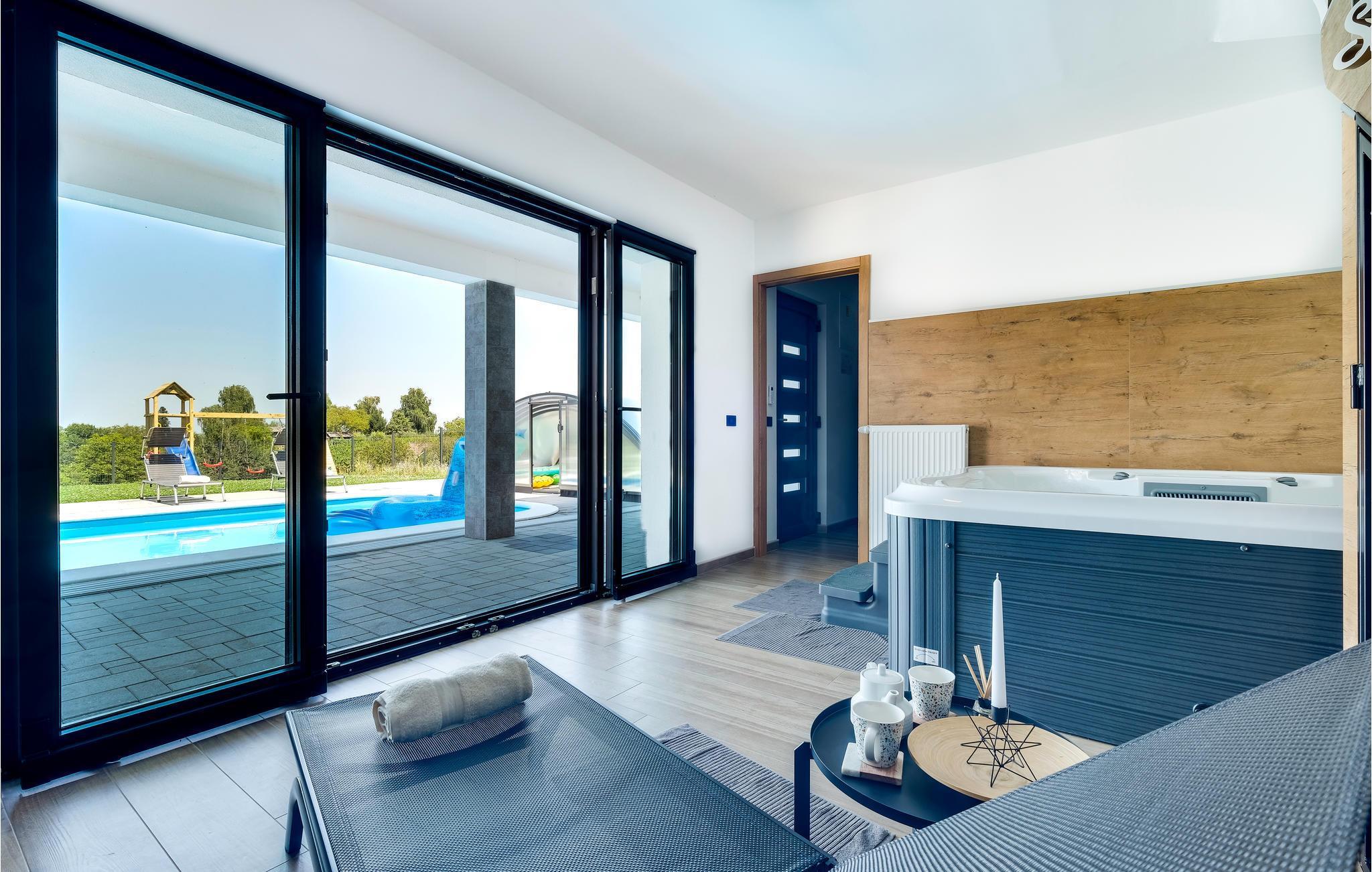 Im idyllisch grünen Sedlarica, gelegen an den schönen Hängen der Bilogora u Virovitica-Podravina Gespanschaft empfängt Sie diese Oase der Ruhe und des Luxus in absoluter Privatsphäre. Das Ferienhaus stellt eine perfekte Kombination aus Natur und Komfort dar und bietet Ihnen die Möglichkeit, sich zu entspannen und dem Alltagsstress zu entfliehen. Im Erdgeschoss finden Sie einen Wellnessbereich mit einer Hydromassagewanne und eine Infrarotsauna. Darüber hinaus gibt es zusätzliche Toilette und Dusche, damit Sie sich völlig entspannt und erholt fühlen.
