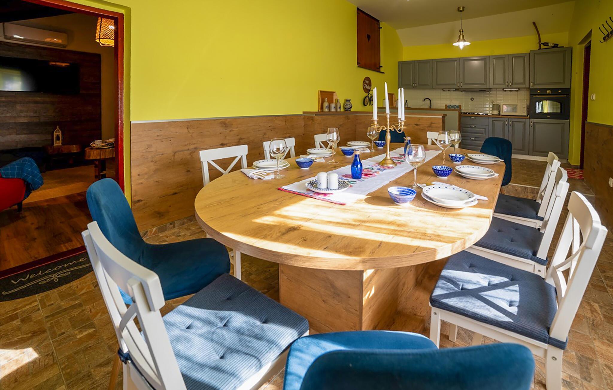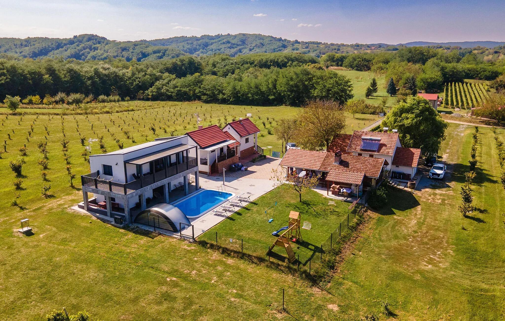 Die große Terrasse bietet einen herrlichen Blick auf die Umgebung, ideal zum Entspannen bei einem Glas Wein. Die Hauptattraktion dieses Anwesens ist der beheizte, überdachte Außenpool, der zu jeder Tageszeit zur Erfrischung einlädt, sowie ein Kinderspielplatz mit Rutsche, Schaukeln, Klettergerüsten, Fußballtoren und Badminton. Sie sind von Hunderten von Haselnussbäumen und Weinstöcken umgeben, die Ihnen ein authentisches Erlebnis des Lebens in der Weinbauregion ArSanj vermitteln. Die Unterkunft bieten Ihnen absolute Privatsphäre auf dem gesamten Grundstück und verspricht somit maximale Erholung.