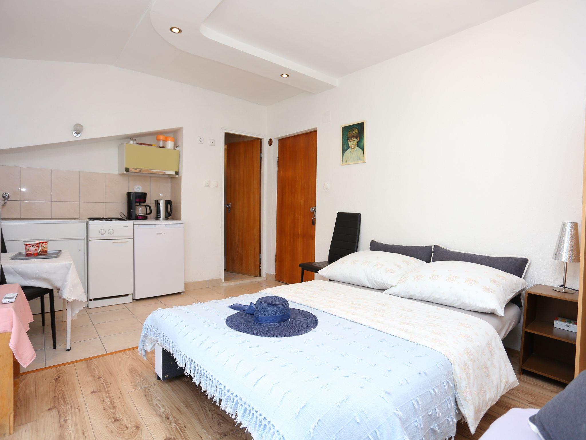Studio bietet Platz für 2 Gäste. Die Betten sind in Schlafzimmern, die es 1 gibt, innerhalb einer Gesamtfläche von 19m2, angeordnet. Die Gäste haben einen eigenen Balkon zur Verfügung, auf der sie in warmen Sommernächten genießen können. IM PREIS INBEGRIFFEN: Kurtaxe, Endreinigung, Klimatisierung, Parkplatz, Internet, Bügeleisen, Bügelbrett, Föhn, 1 Bett für Kinder (im Preis enthalten). VERBINDLICHE ZUSÄTZLICHE KOSTEN: Aufzahlung für Kurzaufenthalte (prozentualer Zuschlag pro Nächtigungsanzahl: 30% - 1, 20% - 2, 10% - 3). Die Verfügbarkeit zusätzlicher Dienstleistungen in Ihrem reservierten Termin und die Preise derselben (falls nicht aufgeführt) müssen im Voraus überprüft werden. Zusätzliche Dienstleistungen die in der Zahlungsaufforderung nicht aufgeführt sind werden direkt beim Vermieter bezahlt, angenommen der Gast nutzt auch diese.