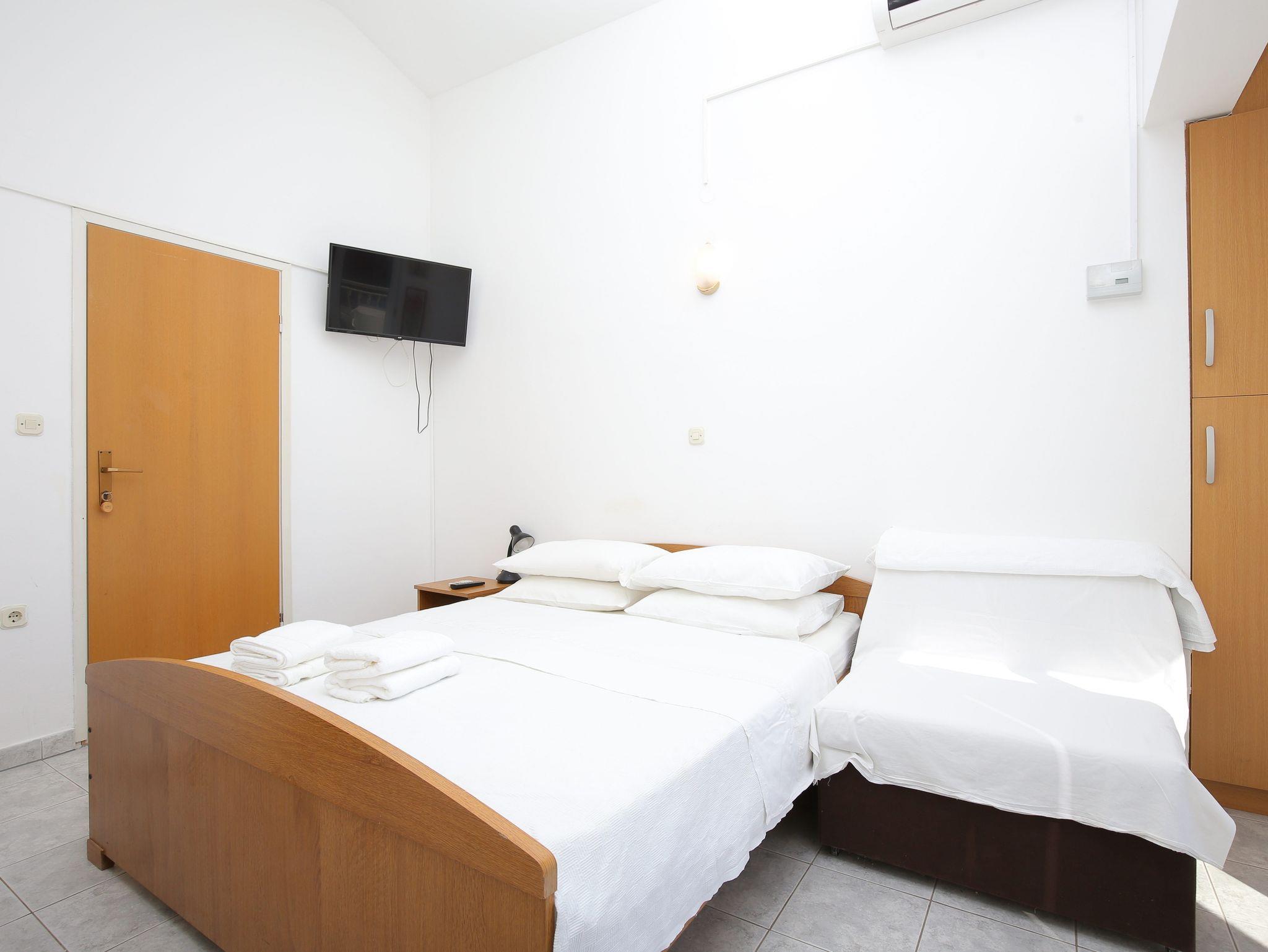 Studio bietet Platz für 2 Gäste. Die Betten sind in Schlafzimmern, die es 1 gibt, innerhalb einer Gesamtfläche von 17m2, angeordnet. Die Gäste haben eine eigene Terrasse zur Verfügung, auf der sie in warmen Sommernächten genießen können. Das Studio-Apartment bietet Meerblick. Es ist erlaubt, Speisen auf dem Gemeinschafts-Grill vorzubereiten. IM PREIS INBEGRIFFEN: Kurtaxe, Endreinigung, Klimatisierung, Parkplatz, Internet, Wäschewaschen, Bügeleisen, Bügelbrett, Föhn, tragbarer Grill, 1 Bett für Kinder (im Preis enthalten). Die Verfügbarkeit zusätzlicher Dienstleistungen in Ihrem reservierten Termin und die Preise derselben (falls nicht aufgeführt) müssen im Voraus überprüft werden. Zusätzliche Dienstleistungen die in der Zahlungsaufforderung nicht aufgeführt sind werden direkt beim Vermieter bezahlt, angenommen der Gast nutzt auch diese. Ermäßigung auf den Grundpreis: Gratistag 14=13 (bei einem Aufenthalt von 14 Tagen oder mehr erhalten Sie einen Gratistag für den Aufenthalt bis 31.12.26).