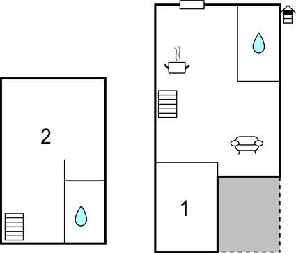 Badezimmer (nr. 1) - WC. Warmes und kaltes Wasser. Dusche