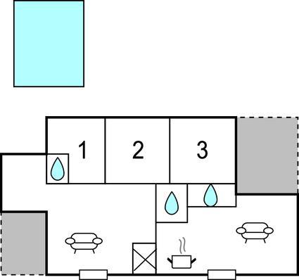 Badezimmer (nr. 3) - WC. Warmes und kaltes Wasser. Dusche