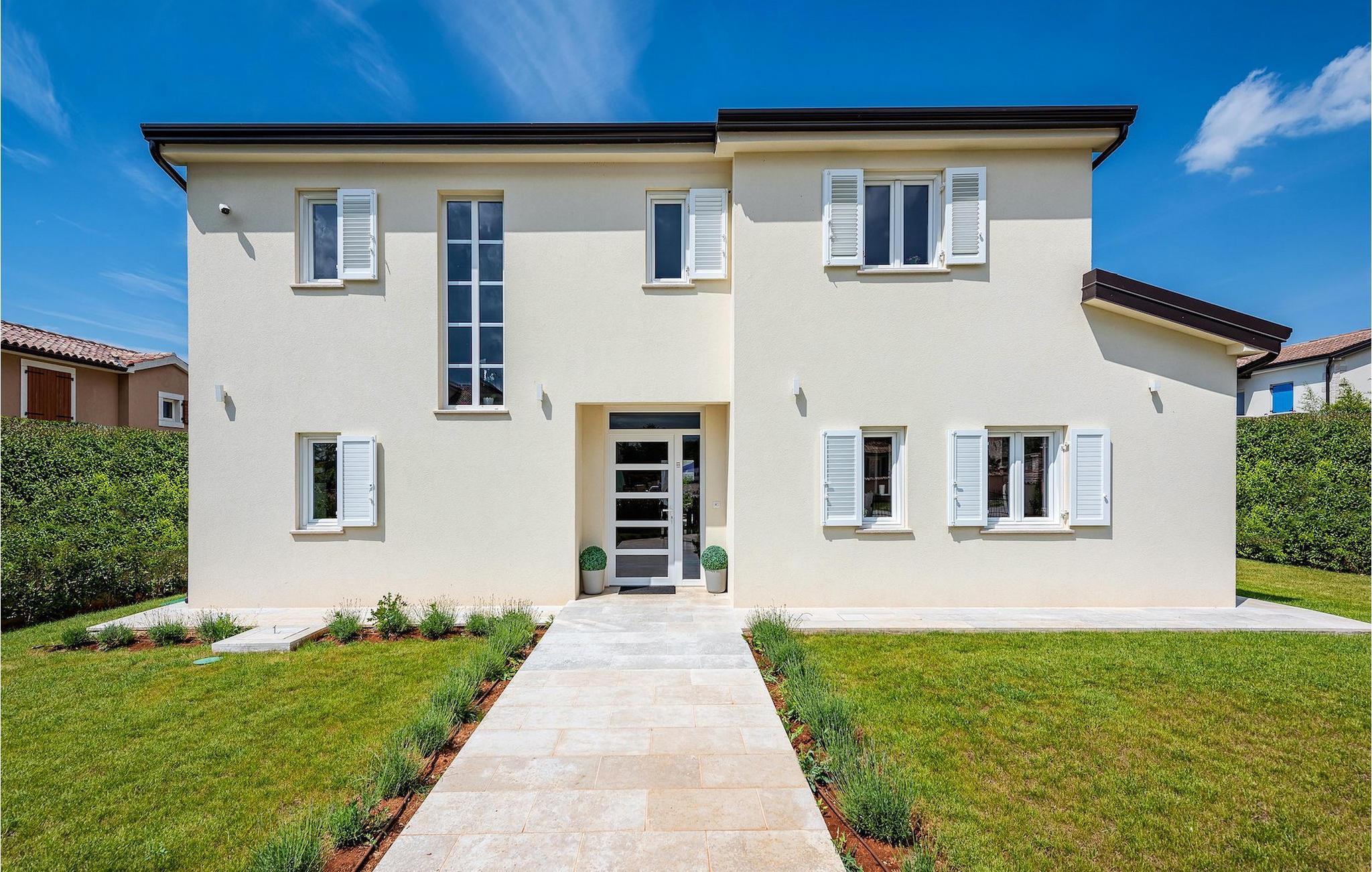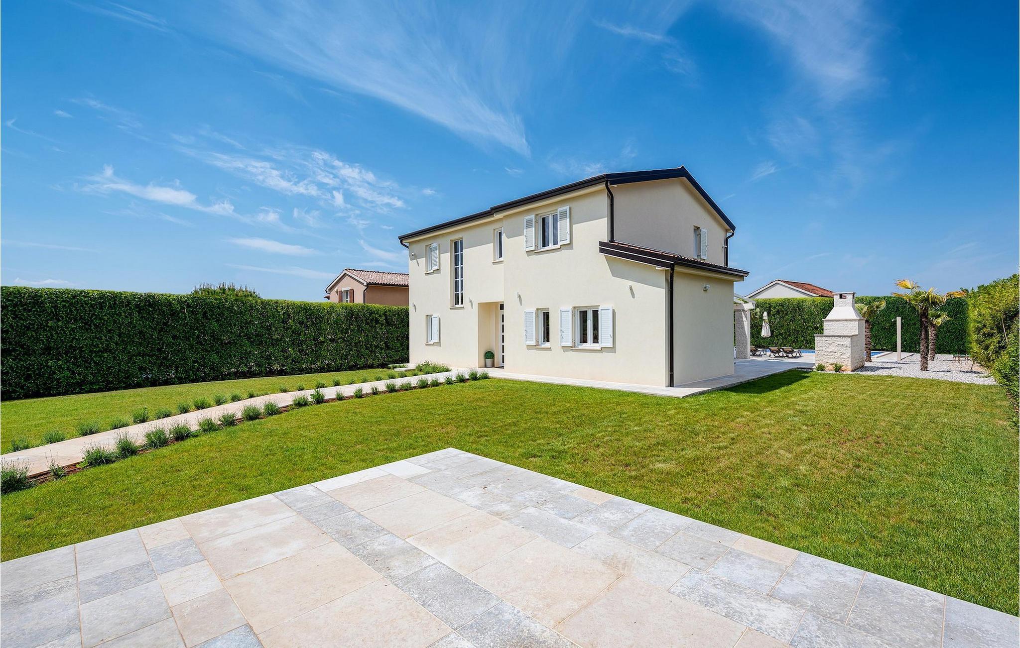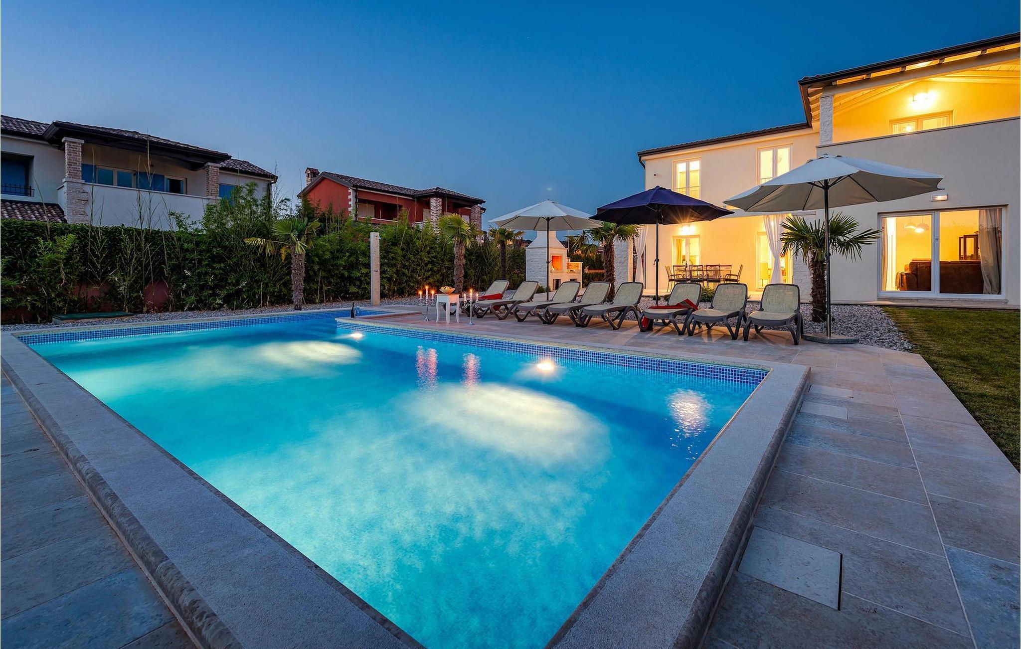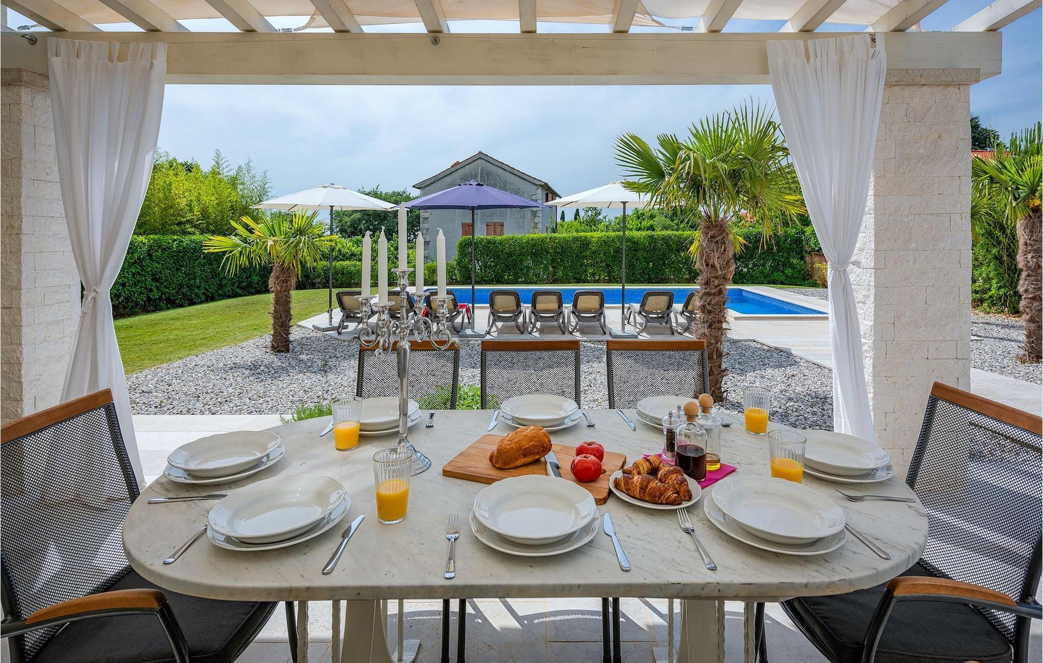 Diese elegante Villa, in der Nähe von Porec gelegen, besteht aus vier Licht-durchflutenden Schlafzimmern mit jeweils Klimaanlage und eigenem Badezimmer und ist die ideale Ferienunterkunft für bis zu 8 Personen. Die Liegestühle neben den geräumigen privaten Pool warten nur darauf, dass Sie sich entspannen und die Sonne einfach genießen. Nur ein paar Schritte vom Pool, befindet sich ein schöner Essbereich im Freien, wo Sie Ihre Grillgerichte genießen können. Der Innenbereich der Villa ist stilvoll eingerichtet, sehr hell und luftig. Das Erdgeschoss besteht aus einem der vier Schlafzimmer, einem separaten Badezimmer und einem offen gestalteten Raum, der in eine völlig ausgestattete Küche und den Ess- und Wohnbereich unterteilt ist. Die restlichen drei Schlafzimmer befinden sich auf der oberen Etage, wo Sie auch einen gemütlichen Balkon finden - den perfekten Ort, um einen Morgenkaffee zu genießen und dabei den von Palmen umgebenen Pool zu betrachten.Die Lage der Villa Cvita Domenica ist perfekt, denn sie ist nur einen kurzen Spaziergang vom nächsten Restaurant, Bar und Supermarkt entfernt, und ein paar Kilometer von der Altstadt von Porec, entfernt - dem touristischen Hotspot der Umgebung mit all seinen Sportmöglichkeiten und gastronomischen und Entertainment- Annehmlichkeiten. Die atemberaubende Euphrasius-Basilika ist das Symbol dieser Küstenstadt. Auch Sonnenuntergänge in Porec sind sehenswert. Der nächste Strand ist ca. 10 km von der Villa entfernt. Da die Küste leicht mit dem Auto erreichbar ist, haben Sie viele verschiedene Strände zu entdecken. Das Inland dieses Teils von Istrien bietet viele Wander- und Radwege sowie viele Möglichkeiten, die kleinen Städte Istriens und ihre kulturellen und gastronomischen Besonderheiten zu entdecken.
