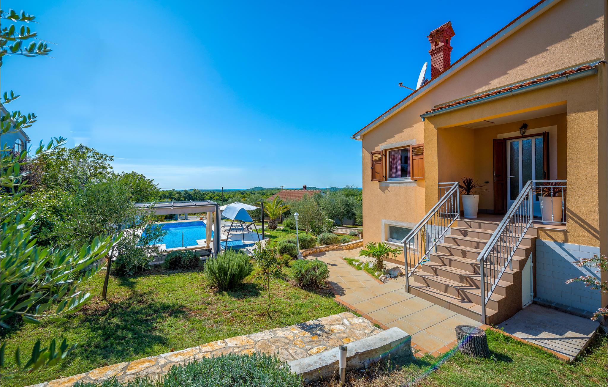 An klaren, sonnigen Tagen können Sie von der Terrasse aus das Meer erspähen. Genießen Sie auch den Swimminpool, der Jung und Alt begeistert und an heißen Tagen abkühlung bietet. Das Haus ist geschmackvoll eingerichtet und Ihren Bedürfnissen für einen angenehmen Urlaub angepasst. Unternehmen Sie Radtouren und erforschen Sie die schöne Natur. Lernen Sie auch das hervorragende gastronomische Angebot Istriens kennen. Die Städet der Umgebung bieten Ihnen eine Vielzahl von Unterhaltungsmöglichkeiten in den Sommermonaten.