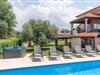 Nur wenige Kilometer von Porec entfernt liegt dieses Ferienhaus. Es ist komfortabel und ermöglicht Ihnen einen sehr angenehmen Aufenthalt. Im Erdgeschoss befinden sich die Küche und die überdachte Sommerküche, die zum beheizten Pool führt. Im ersten Stockwerk gibt es ein Schlaf- und Wohnzimmer mit einer Terrasse zum Entspannen, während im zweiten Stock drei Schlafzimmer und die Badezimmer liegen. Das Haus verfügt über einen großen Hof, der komplett von einer hohen Wand umgeben ist und Ihre Privatsphäre garantiert. Der Hof ist geeignet für Kinder, die ungestört spielen können. Entspannen Sie sich im Whirlpool auf der oberen Terrasse.