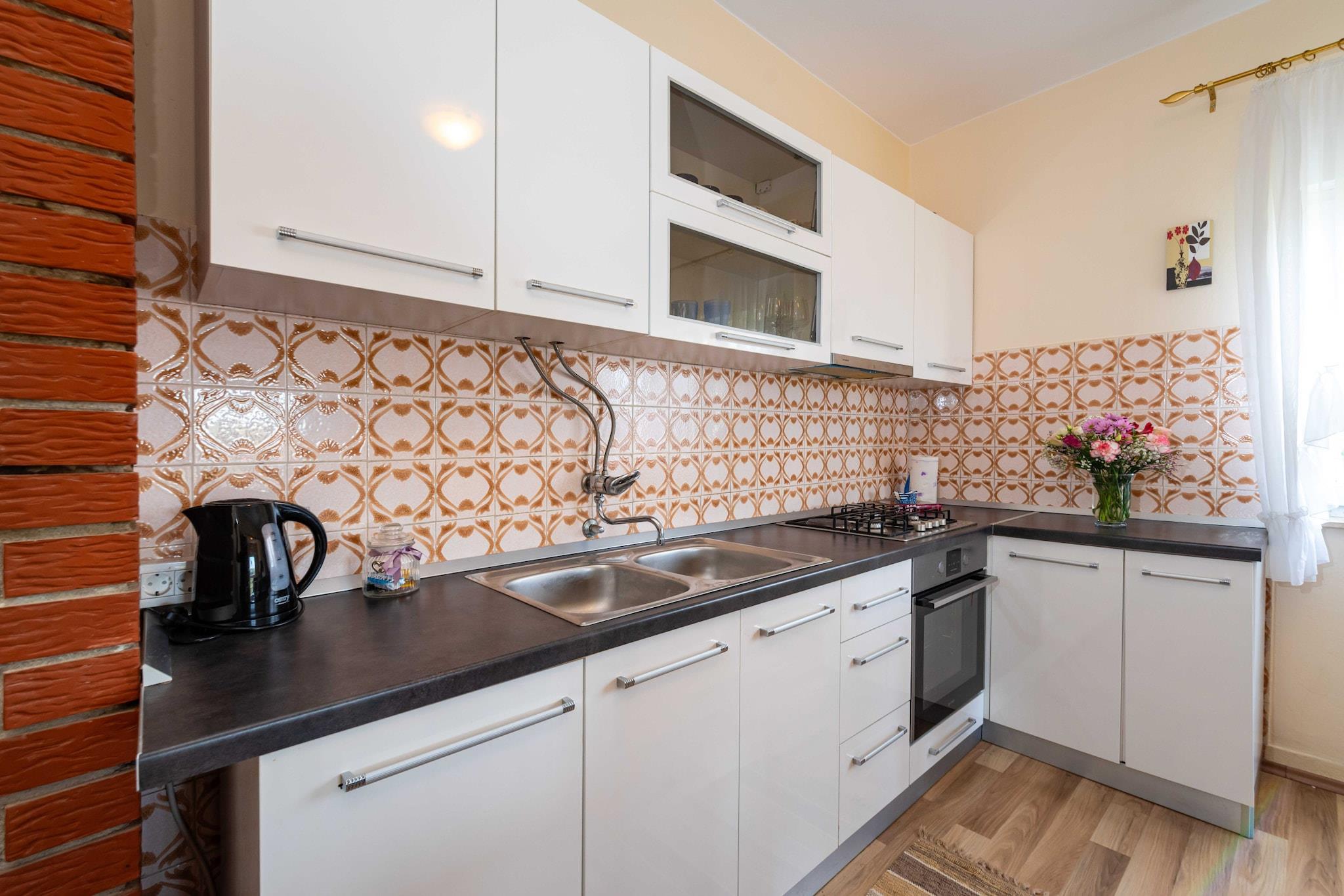 Die Wohnung Nika ist eine reizende Unterkunft im ersten Stock, die sich nur 400 Meter vom nächsten Strand entfernt befindet. Sie befindet sich in einer ruhigen Wohngegend und bietet einen komfortablen Aufenthalt für 2 Familien oder eine Gruppe von bis zu 8 Personen. Ihre geräumige 120 m2 große Wohnung besteht aus einem hellen Wohn-/Esszimmer, einer offenen Küche, einem wunderschönen Balkon mit Meerblick, 4 Schlafzimmern, einem Badezimmer und einer zusätzlichen Toilette. Für die Gäste stehen auch ein umzäunter privater Parkplatz und eine schnelle WLAN-Verbindung zur Verfügung. Die Wohnung Nika befindet sich in einer ausgezeichneten Lage, da der nächste Strand in nur 10 Minuten zu Fuß erreichbar ist und in der Nähe ein Supermarkt, ein Restaurant, ein Café, eine Bäckerei, eine Apotheke und eine Bushaltestelle zu finden sind. Zadar mit seiner berühmten Altstadt ist 20 Autominuten entfernt, und Aktivitäten wie Rafting auf dem Zrmanja-Fluss oder Klettern im Nationalpark Paklenica sind in weniger als einer halben Stunde zu erreichen. Dies macht die Wohnung Nika zu einer perfekten Basis, um den Rest dieser erstaunlichen Region zu erkunden.