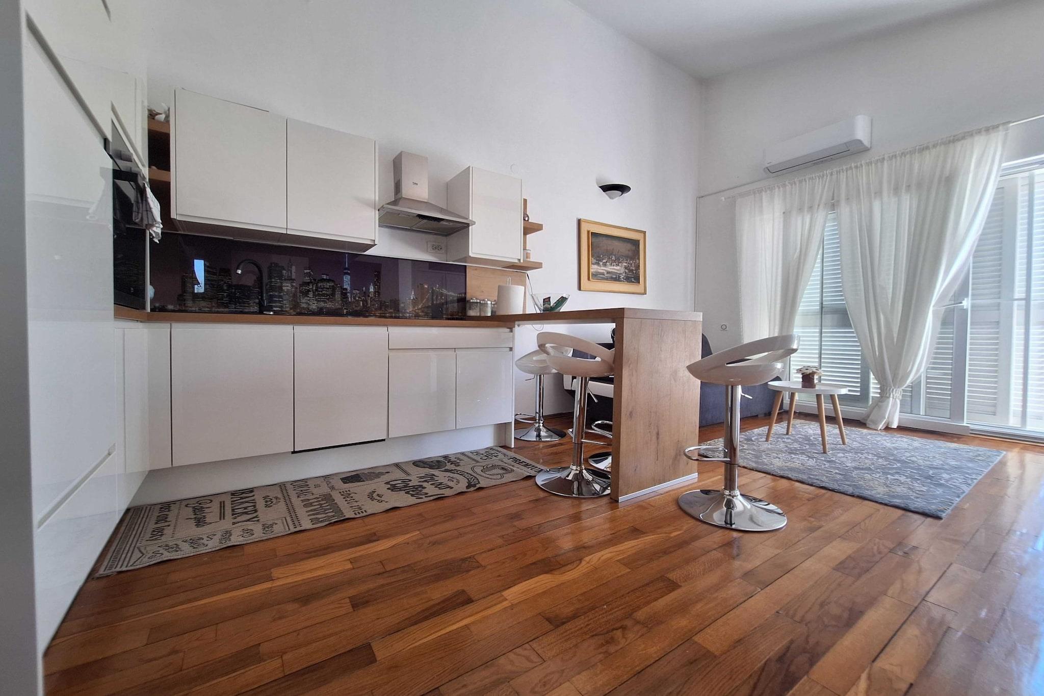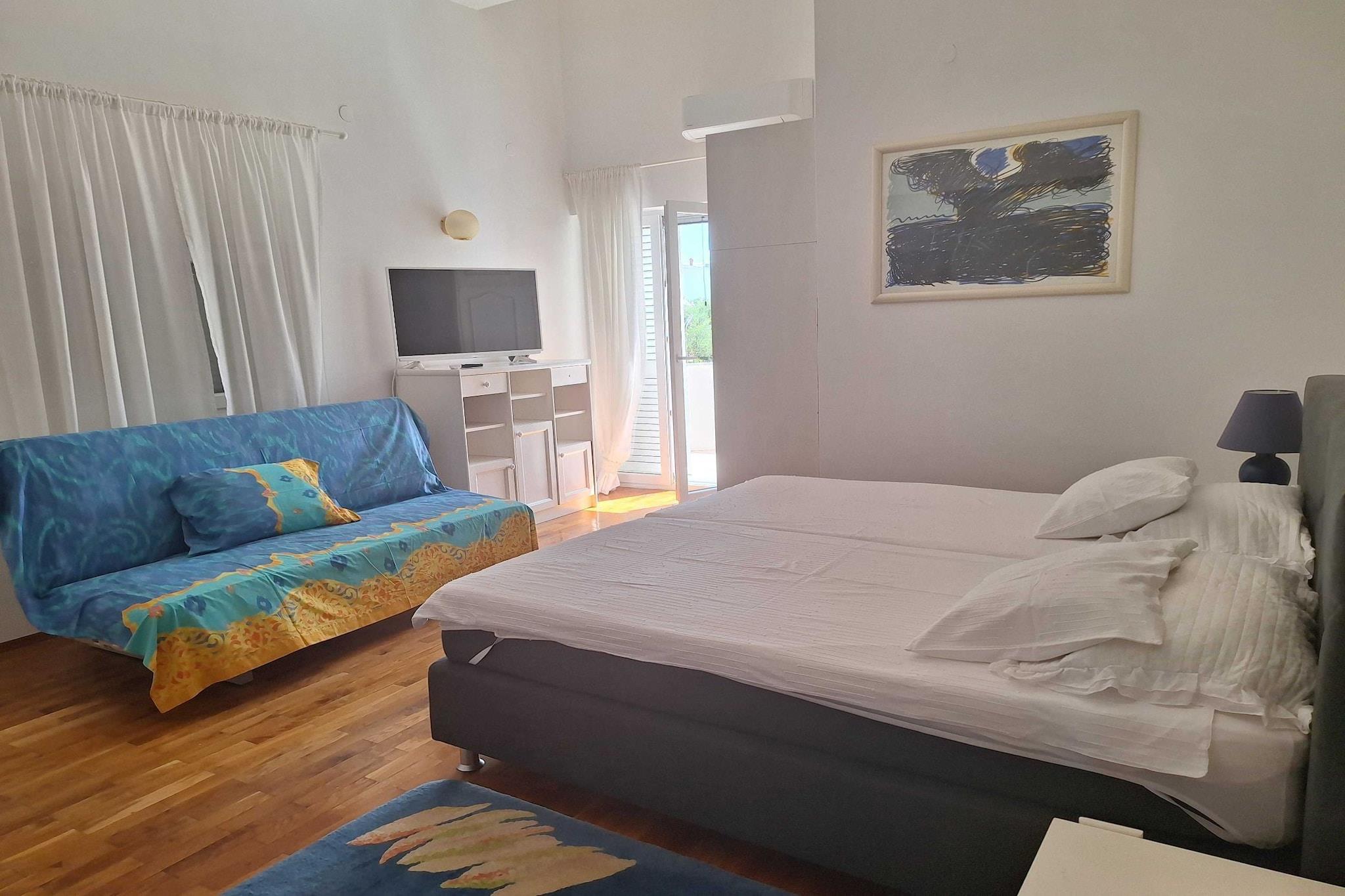 Escape to tranquility in Povljana. This charming retreat offers a terrace for picnics and a private garden. Enjoy sea views from the balcony, perfect for morning coffee or evening wine. Inside, the cozy living room flows into a well-equipped kitchen and dining area. Rest peacefully in the serene bedroom with a large double bed and refresh in the modern private bathroom. With air conditioning, free parking, and WiFi, your comfort is assured. Book now to experience this coastal haven. Note: Pets are not allowed. Private parking, reservation is not required. Wi-Fi is available throughout the property. Baby cot is available on request. This one -bedroom can accommodate up to five guests. It features a Flat screen TV and is combined with a living room and kitchen. The private bathroom is equipped with a shower and toilet. Thanks to its excellent location, everything you'll need for your vacation is just a short walk away from the property. The airport is 50 km away from the property.