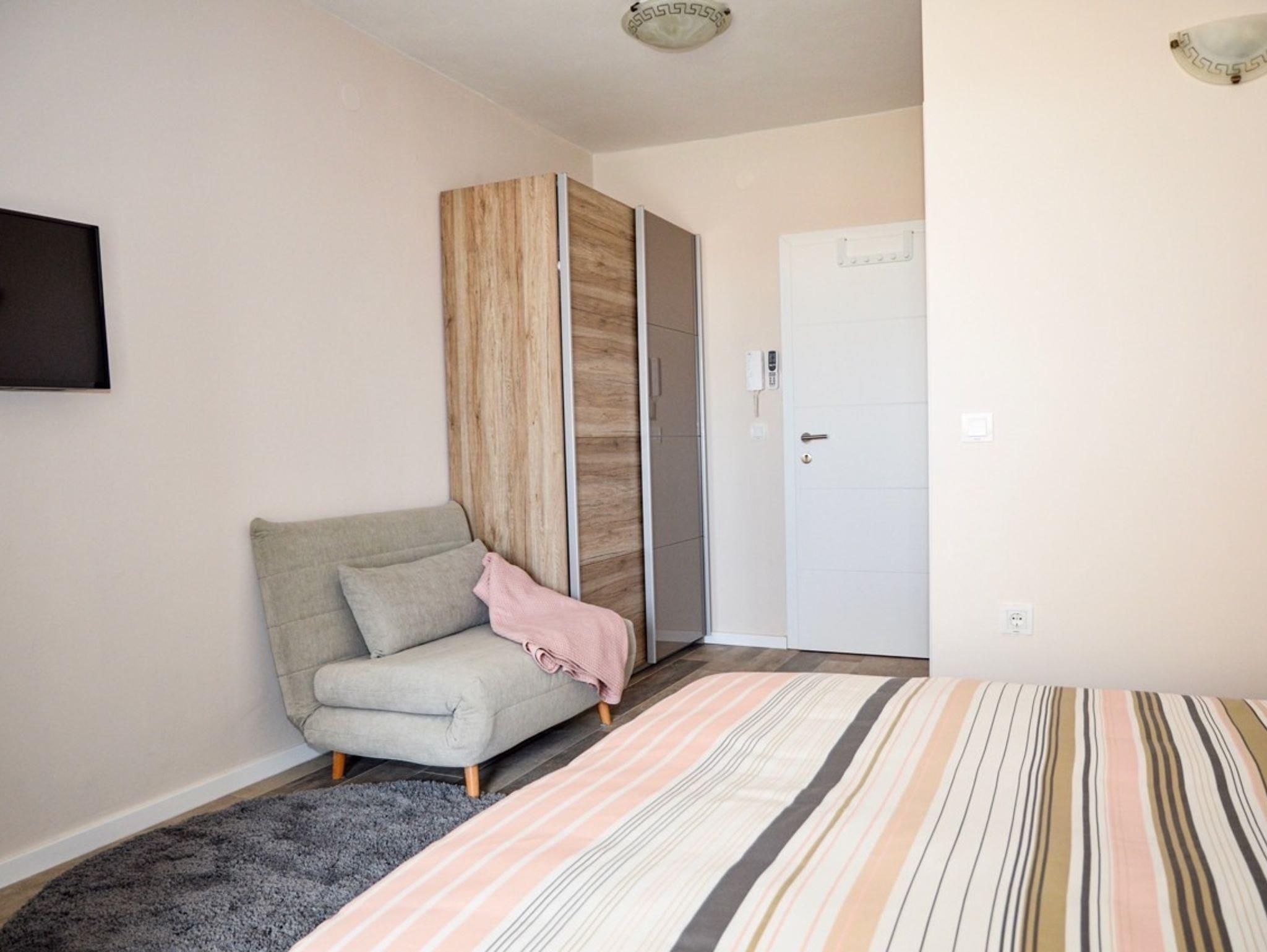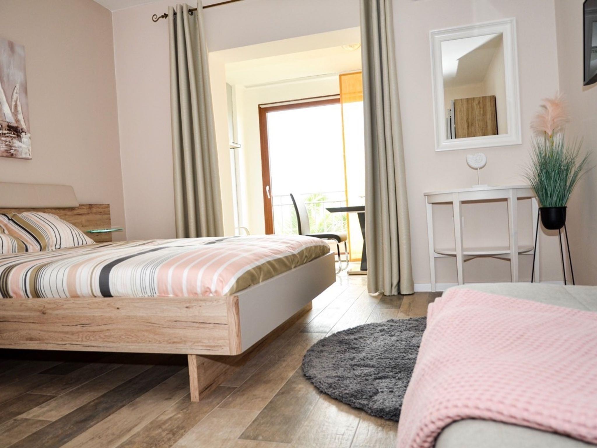 Studio bietet Platz für 2 Gäste. Die Betten sind in Schlafzimmern, die es 1 gibt, innerhalb einer Gesamtfläche von 28m2, angeordnet. Das Studio-Apartment bietet Meerblick. Es ist erlaubt, Speisen auf dem Gemeinschafts-Grill vorzubereiten. Während ihres Aufenthalts können Gäste das gemeinsam zur Nutzung stehende Schwimmbad benutzen. In der Unterkunftseinheit besteht die Möglichkeit des Mitbringens von Haustieren gegen Aufpreis. Die reservierte Unterkunftseinheit hat keinen Balkon und keine Terrasse. IM PREIS INBEGRIFFEN: Kurtaxe, Endreinigung, Klimatisierung, Pool, Parkplatz, Internet, Wäschewaschen, Bootsanlegeplatz, Kinderbett, Bügeleisen, Bügelbrett, Föhn, Sonnenschirm. VERBINDLICHE ZUSÄTZLICHE KOSTEN: Aufzahlung für Kurzaufenthalte (prozentualer Zuschlag pro Nächtigungsanzahl: 30% - 1, 20% - 2, 10% - 3). UNVERBINDLICHE ZUSÄTZLICHE KOSTEN: Haustiere (10,00 € pro Nacht). Die Verfügbarkeit zusätzlicher Dienstleistungen in Ihrem reservierten Termin und die Preise derselben (falls nicht aufgeführt) müssen im Voraus überprüft werden. Zusätzliche Dienstleistungen die in der Zahlungsaufforderung nicht aufgeführt sind werden direkt beim Vermieter bezahlt, angenommen der Gast nutzt auch diese. Ermäßigung auf den Grundpreis: Gratistag 14=13 (bei einem Aufenthalt von 14 Tagen oder mehr erhalten Sie einen Gratistag für den Aufenthalt bis 31.12.26).