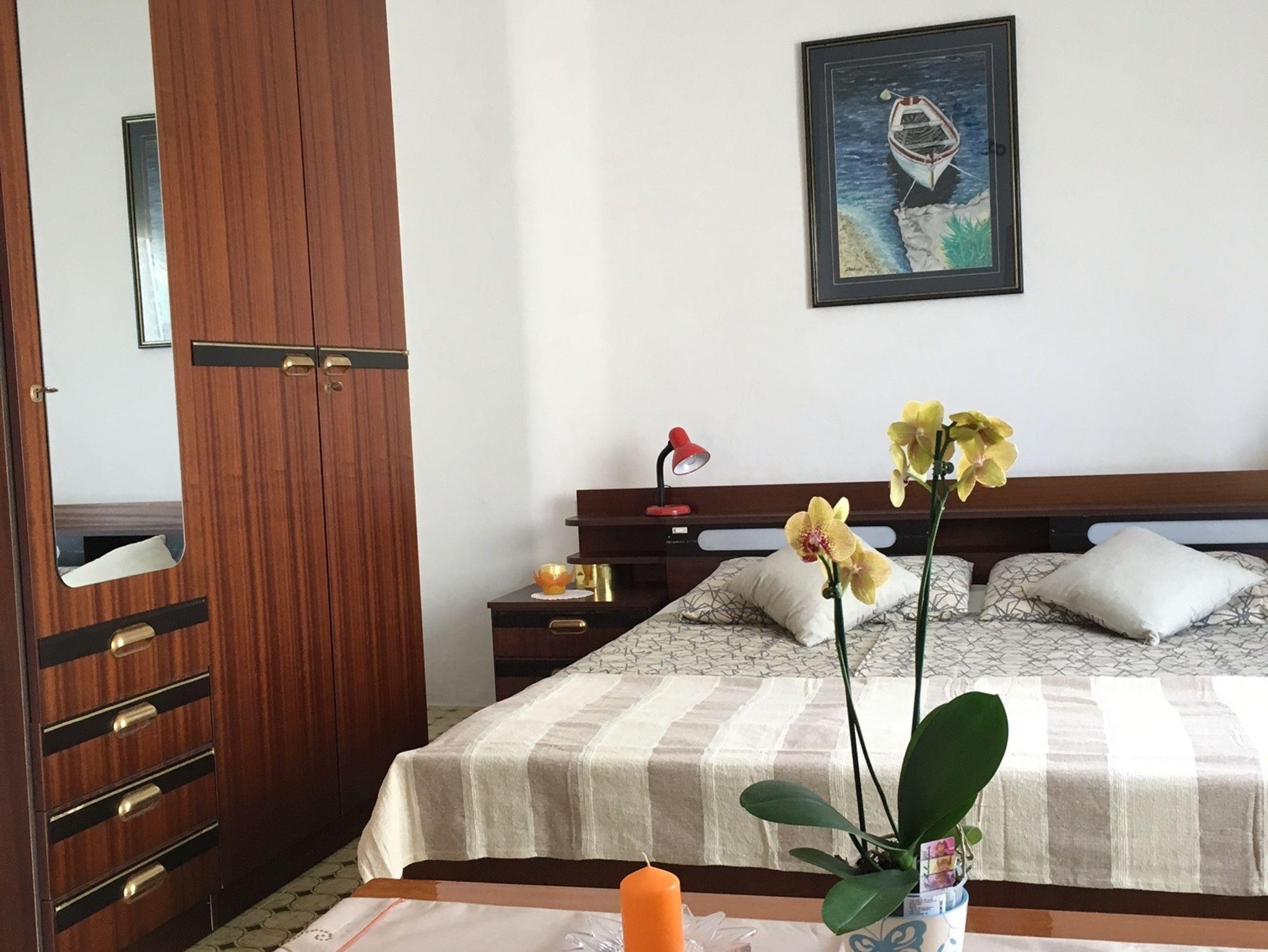 Ferienwohnung bietet Platz für 8 Gäste. Die Betten sind in Schlafzimmern, die es 3 gibt, innerhalb einer Gesamtfläche von 84m2, angeordnet. Die Gäste haben eine eigene Terrasse zur Verfügung, auf der sie in warmen Sommernächten genießen können. Es ist erlaubt, Speisen auf dem Gemeinschafts-Grill vorzubereiten. IM PREIS INBEGRIFFEN: Kurtaxe, Endreinigung, Parkplatz, Internet. VERBINDLICHE ZUSÄTZLICHE KOSTEN: Aufzahlung für Kurzaufenthalte (prozentualer Zuschlag pro Nächtigungsanzahl: 30% - 1, 20% - 2, 10% - 3). UNVERBINDLICHE ZUSÄTZLICHE KOSTEN: Klimatisierung (10,00 € pro Nacht). Die Verfügbarkeit zusätzlicher Dienstleistungen in Ihrem reservierten Termin und die Preise derselben (falls nicht aufgeführt) müssen im Voraus überprüft werden. Zusätzliche Dienstleistungen die in der Zahlungsaufforderung nicht aufgeführt sind werden direkt beim Vermieter bezahlt, angenommen der Gast nutzt auch diese.