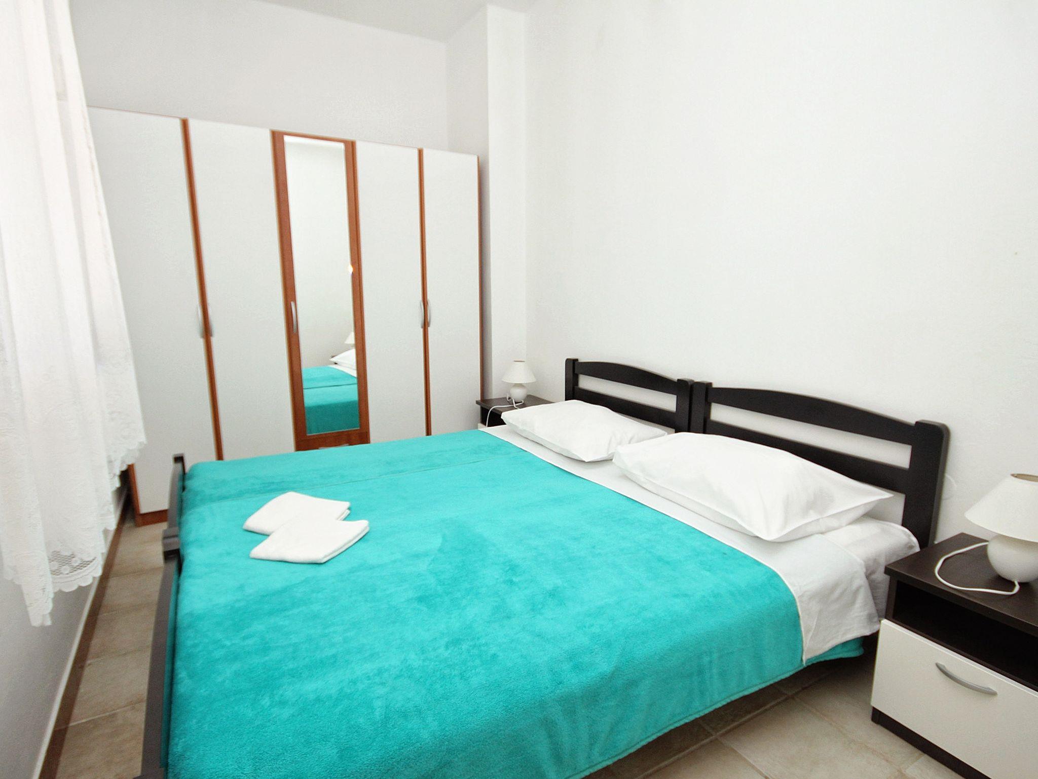 Ferienwohnung bietet Platz für 6 Gäste. Die Betten sind in Schlafzimmern, die es 3 gibt, innerhalb einer Gesamtfläche von 70m2, angeordnet. Die Gäste haben eine eigene Terrasse zur Verfügung, auf der sie in warmen Sommernächten genießen können. Das Apartment bietet Meerblick. Es ist erlaubt, Speisen auf dem Gemeinschafts-Grill vorzubereiten. IM PREIS INBEGRIFFEN: Kurtaxe, Endreinigung, Parkplatz, Internet, Bügeleisen. VERBINDLICHE ZUSÄTZLICHE KOSTEN: Aufzahlung für Kurzaufenthalte (prozentualer Zuschlag pro Nächtigungsanzahl: 30% - 1, 20% - 2, 10% - 3). UNVERBINDLICHE ZUSÄTZLICHE KOSTEN: Klimatisierung (10,00 € pro Nacht), Zusatzbett (10,00 € pro Nacht). Die Verfügbarkeit zusätzlicher Dienstleistungen in Ihrem reservierten Termin und die Preise derselben (falls nicht aufgeführt) müssen im Voraus überprüft werden. Zusätzliche Dienstleistungen die in der Zahlungsaufforderung nicht aufgeführt sind werden direkt beim Vermieter bezahlt, angenommen der Gast nutzt auch diese.