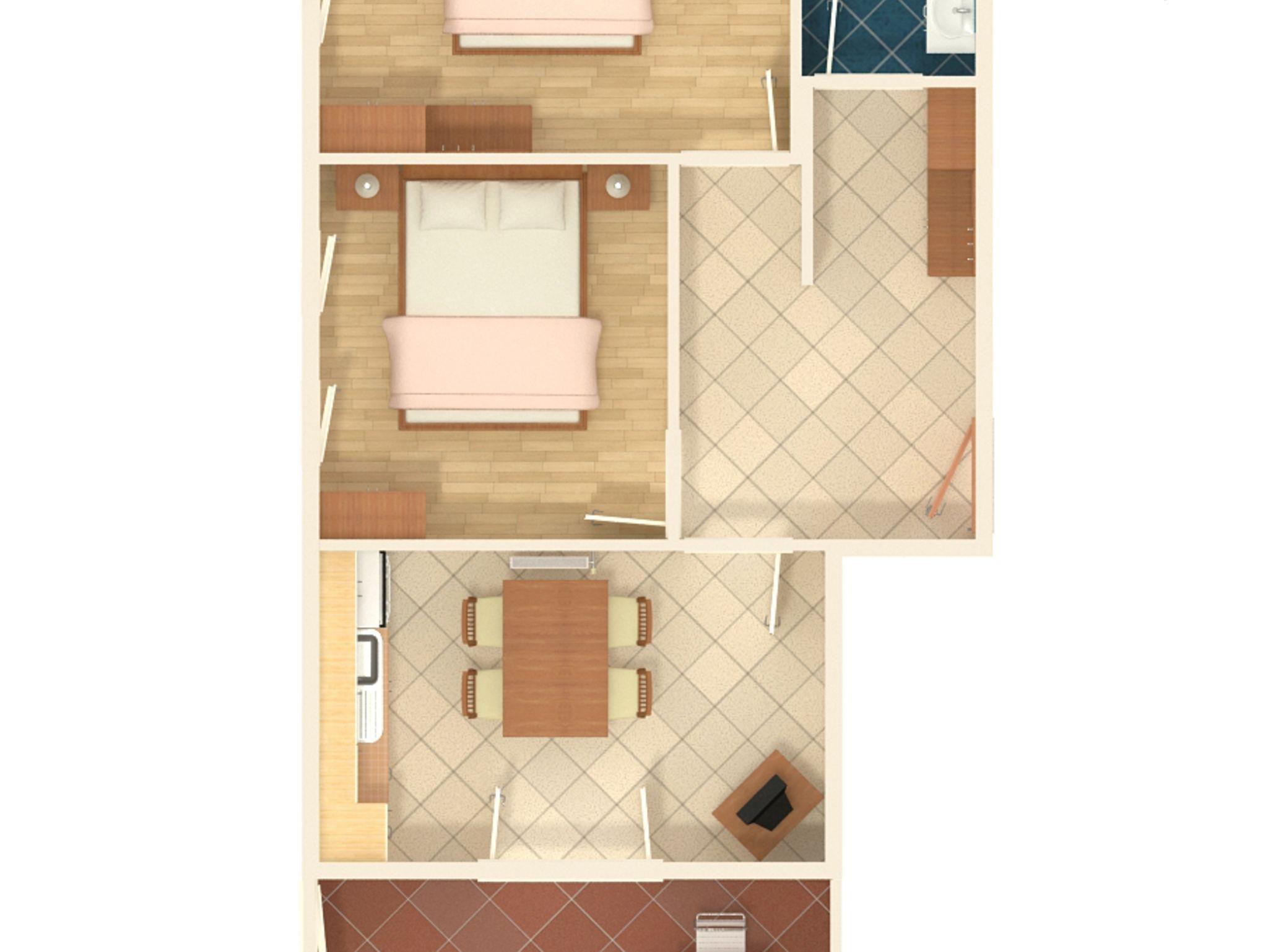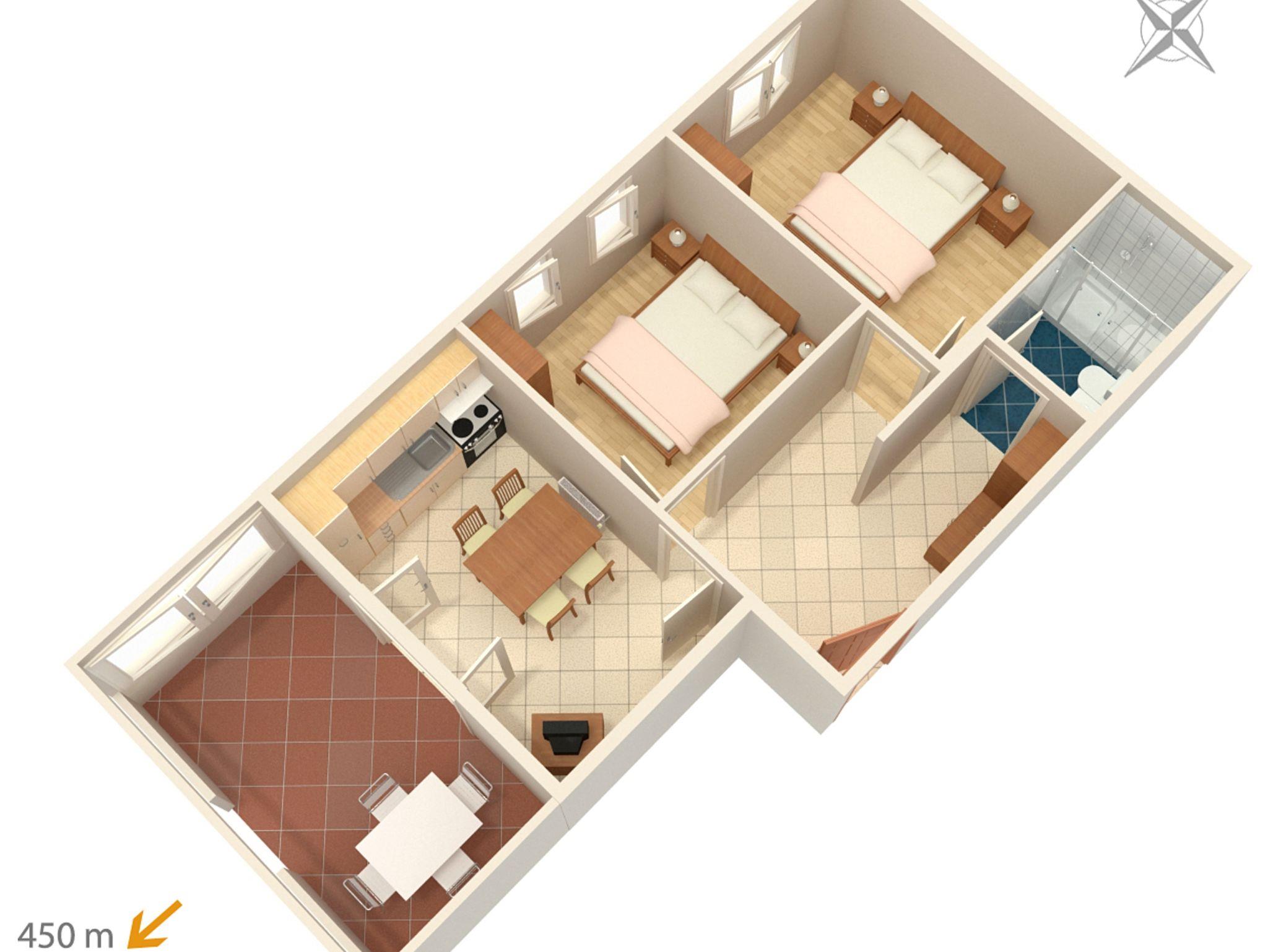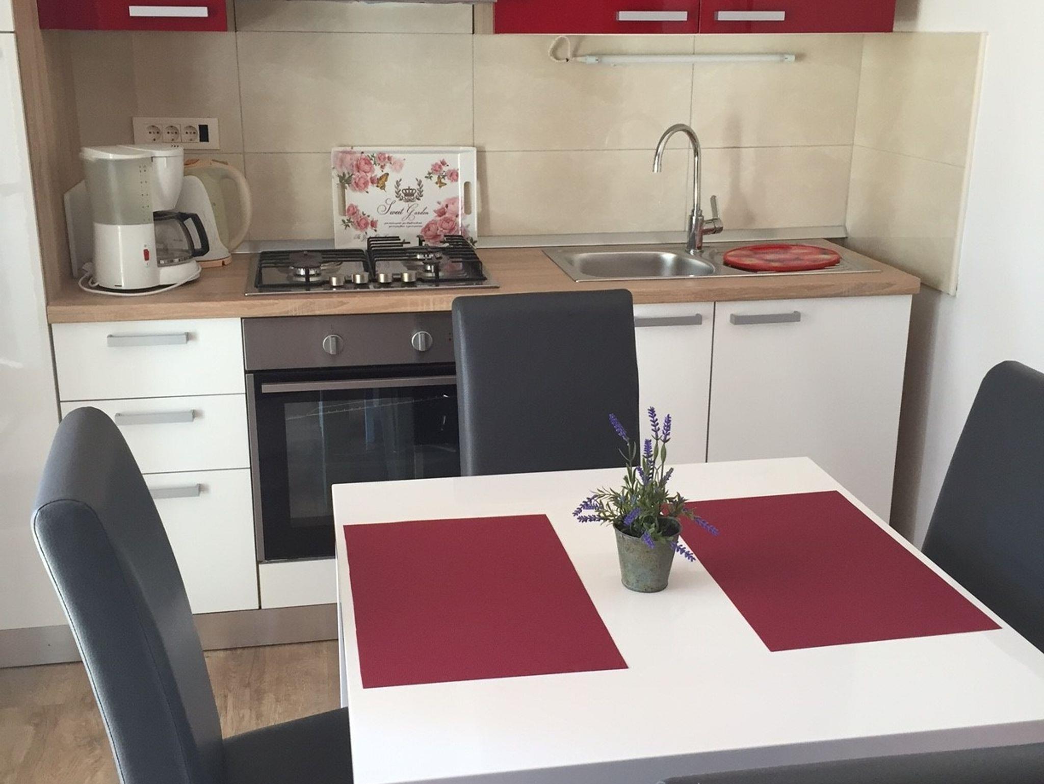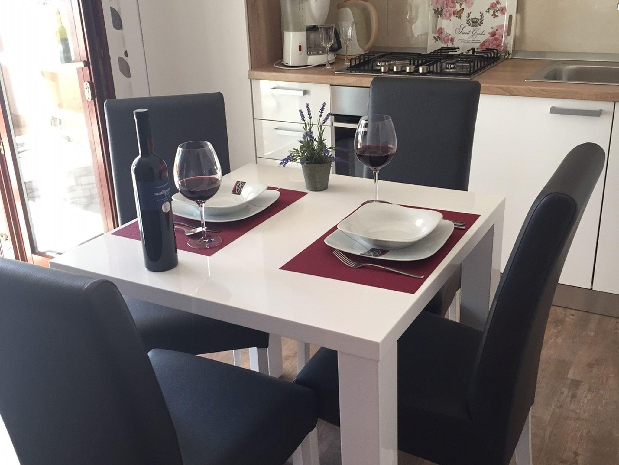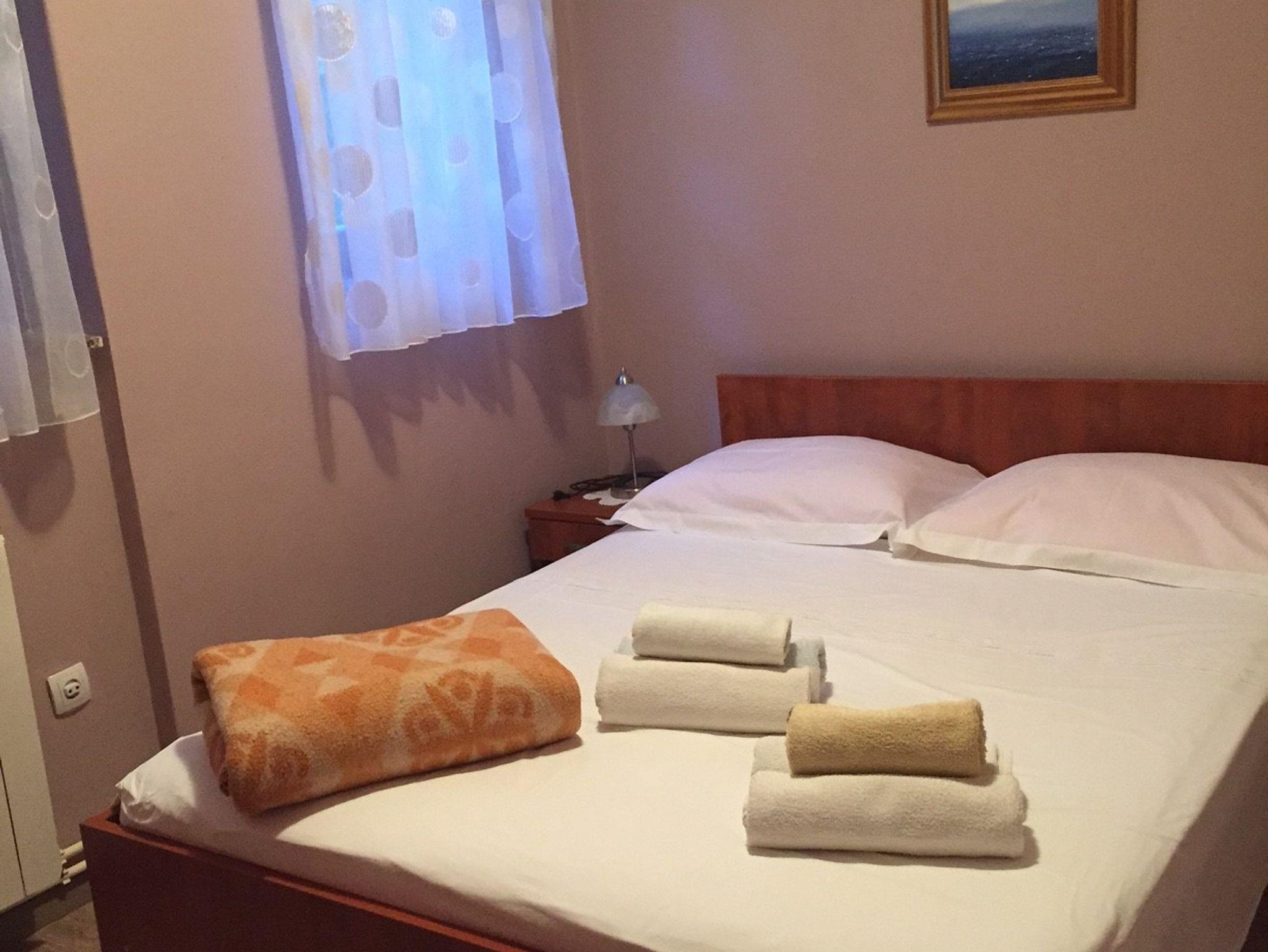 Ferienwohnung bietet Platz für 4 Gäste. Die Betten sind in Schlafzimmern, die es 2 gibt, innerhalb einer Gesamtfläche von 44m2, angeordnet. Die Gäste haben eine eigene Terrasse zur Verfügung, auf der sie in warmen Sommernächten genießen können. Es ist erlaubt, Speisen auf dem Gemeinschafts-Grill vorzubereiten. Während ihres Aufenthalts können Gäste das gemeinsam zur Nutzung stehende Schwimmbad benutzen. In der Unterkunftseinheit besteht die Möglichkeit des Mitbringens von Haustieren gegen Aufpreis. IM PREIS INBEGRIFFEN: Kurtaxe, Endreinigung, Klimatisierung, Zentralheizung, Pool, Parkplatz, Internet, Wäschewaschen, Bootsanlegeplatz, Kinderbett, Bügeleisen, Bügelbrett, Föhn, Sonnenschirm. VERBINDLICHE ZUSÄTZLICHE KOSTEN: Aufzahlung für Kurzaufenthalte (prozentualer Zuschlag pro Nächtigungsanzahl: 30% - 1, 20% - 2, 10% - 3). UNVERBINDLICHE ZUSÄTZLICHE KOSTEN: Haustiere (10,00 € pro Nacht). Die Verfügbarkeit zusätzlicher Dienstleistungen in Ihrem reservierten Termin und die Preise derselben (falls nicht aufgeführt) müssen im Voraus überprüft werden. Zusätzliche Dienstleistungen die in der Zahlungsaufforderung nicht aufgeführt sind werden direkt beim Vermieter bezahlt, angenommen der Gast nutzt auch diese. Ermäßigung auf den Grundpreis: Gratistag 14=13 (bei einem Aufenthalt von 14 Tagen oder mehr erhalten Sie einen Gratistag für den Aufenthalt bis 31.12.26).