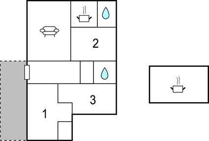 Badezimmer (nr. 2) - WC. Warmes und kaltes Wasser. Dusche